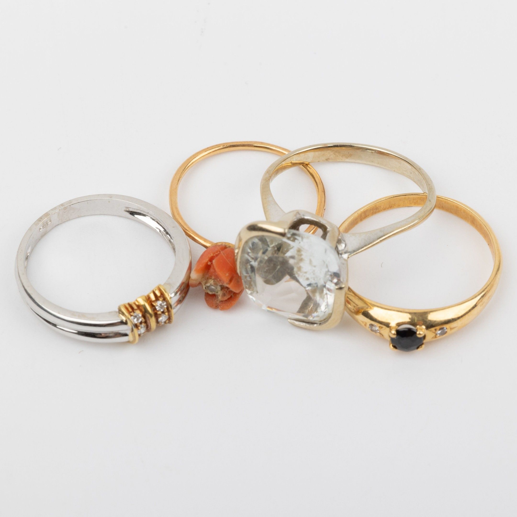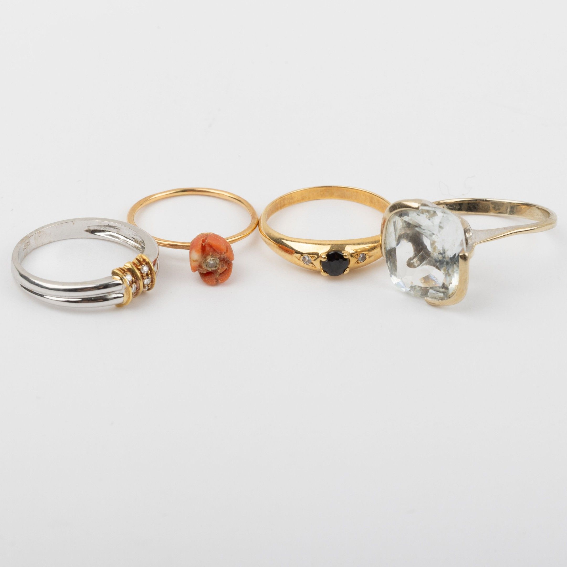 Four rings set in 18K gold and stones
