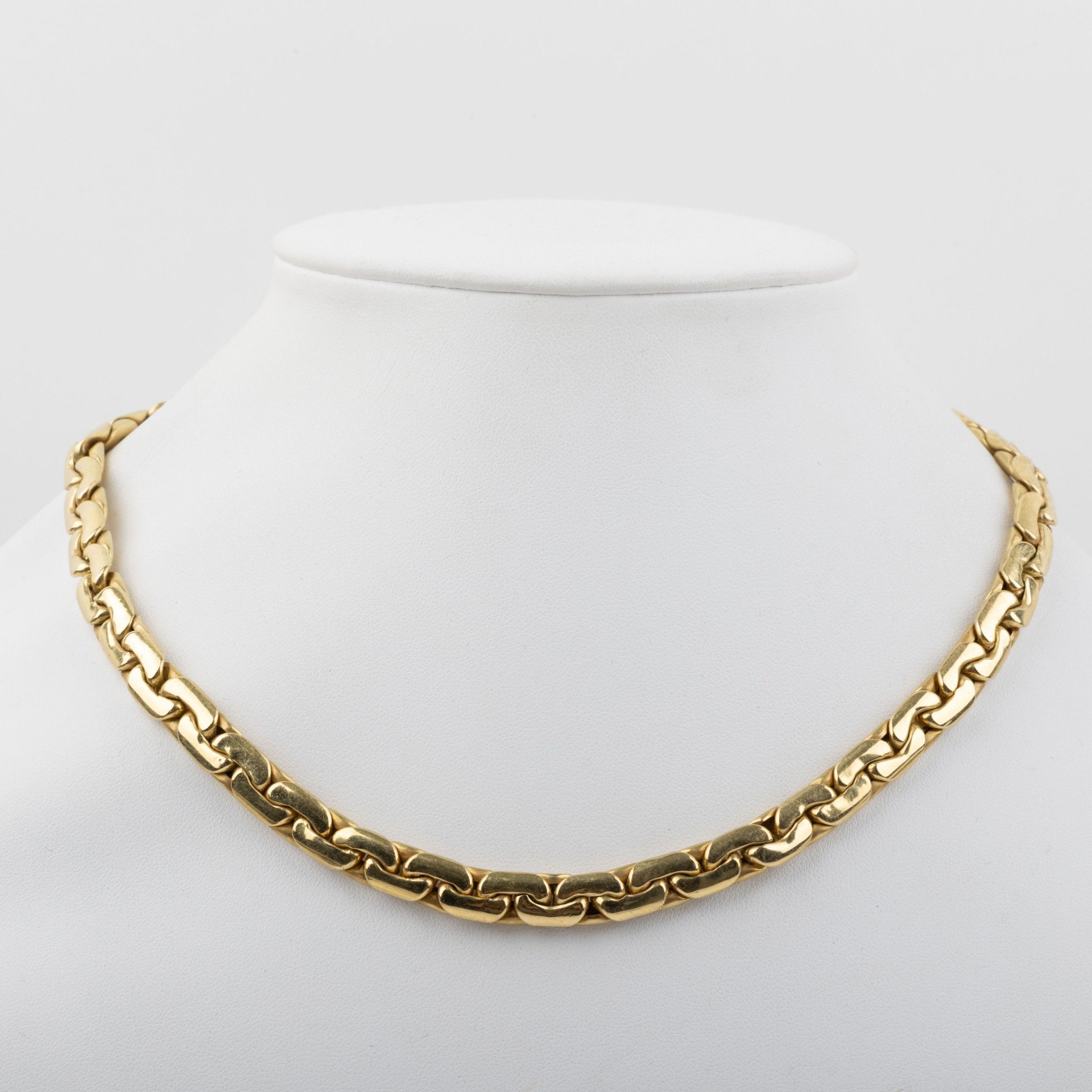 Choker necklace, flat plaited mesh in 18K gold, cabochon sap…