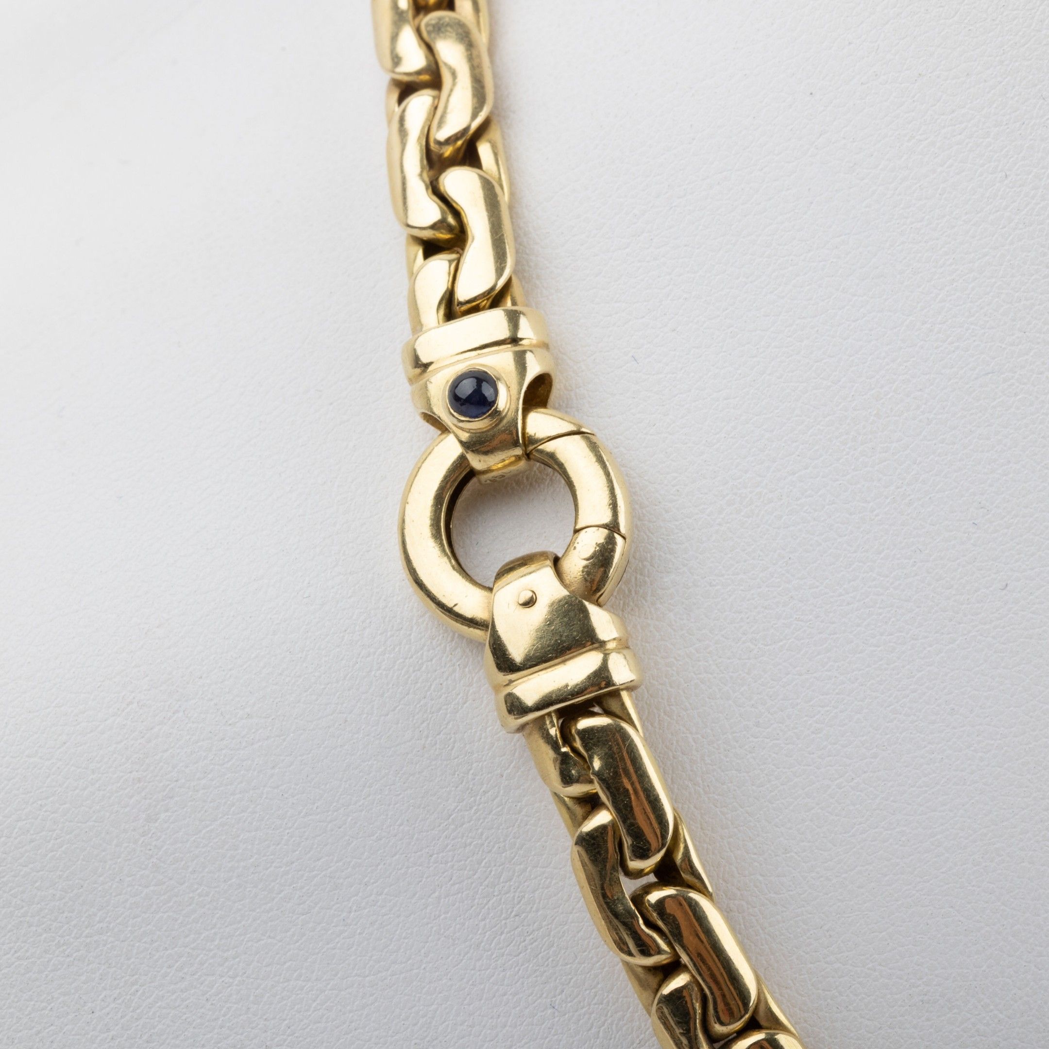 Choker necklace, flat plaited mesh in 18K gold, cabochon sapphire clasp
