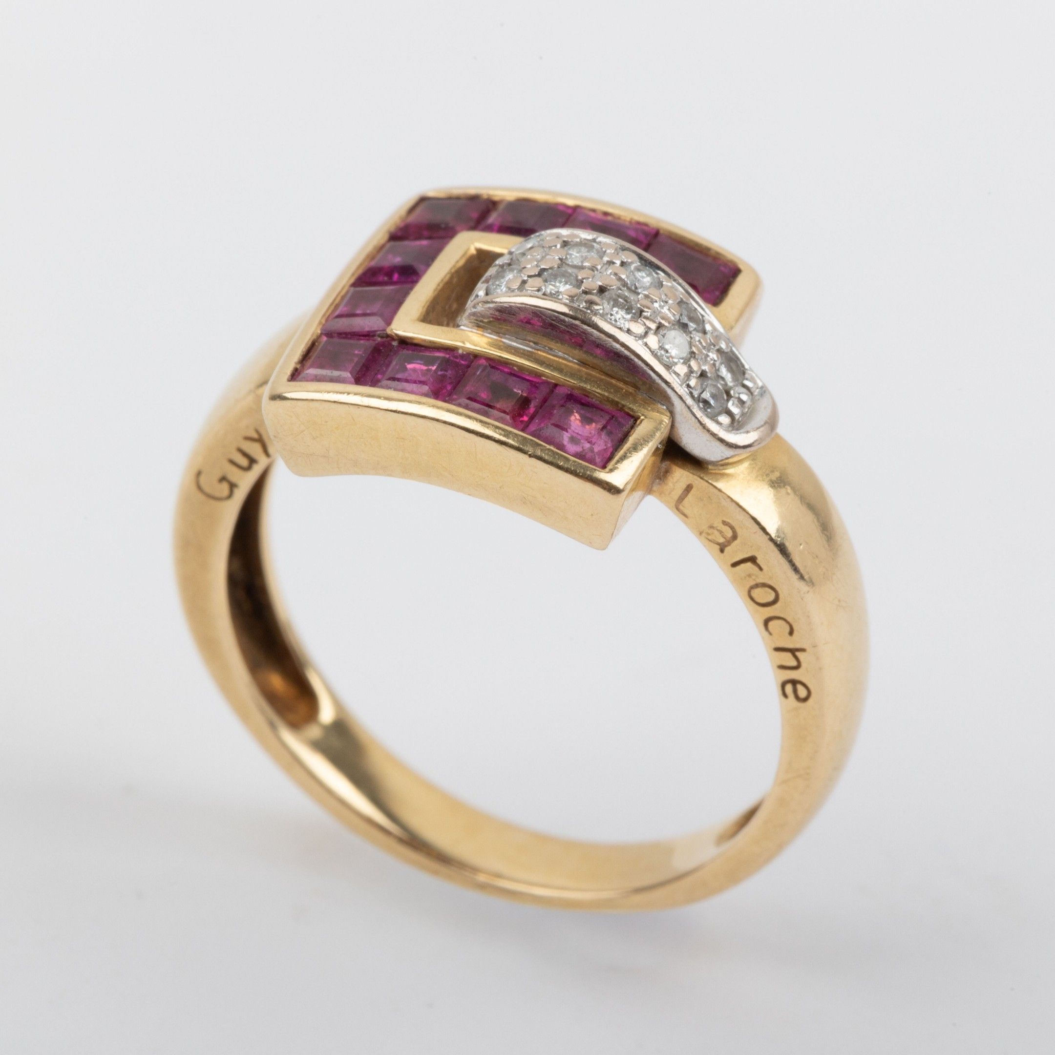 Guy LAROCHE Ring with calibrated red stones and brilliant-cu…
