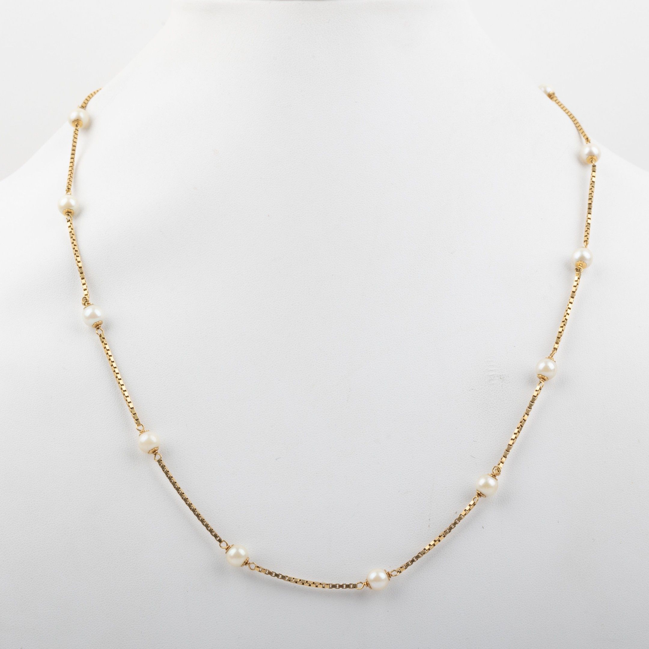 18K gold necklace, Venetian mesh, punctuated with cultured p…
