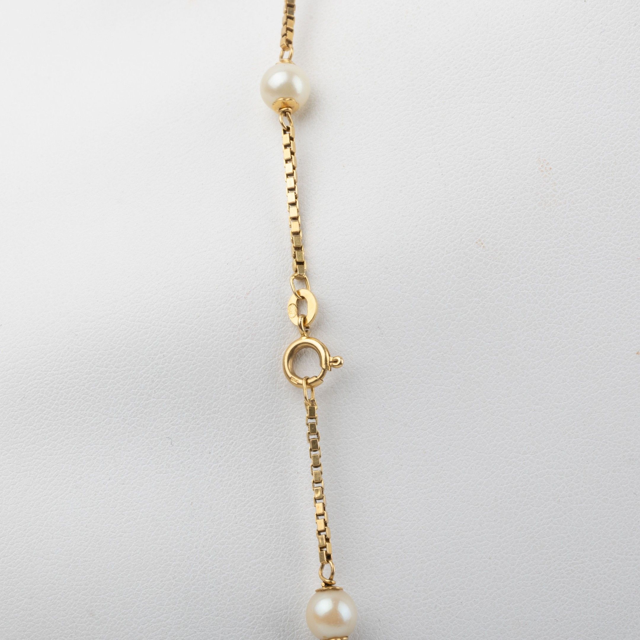 18K gold necklace, Venetian mesh, punctuated with cultured pearls diam: 6.5 mm