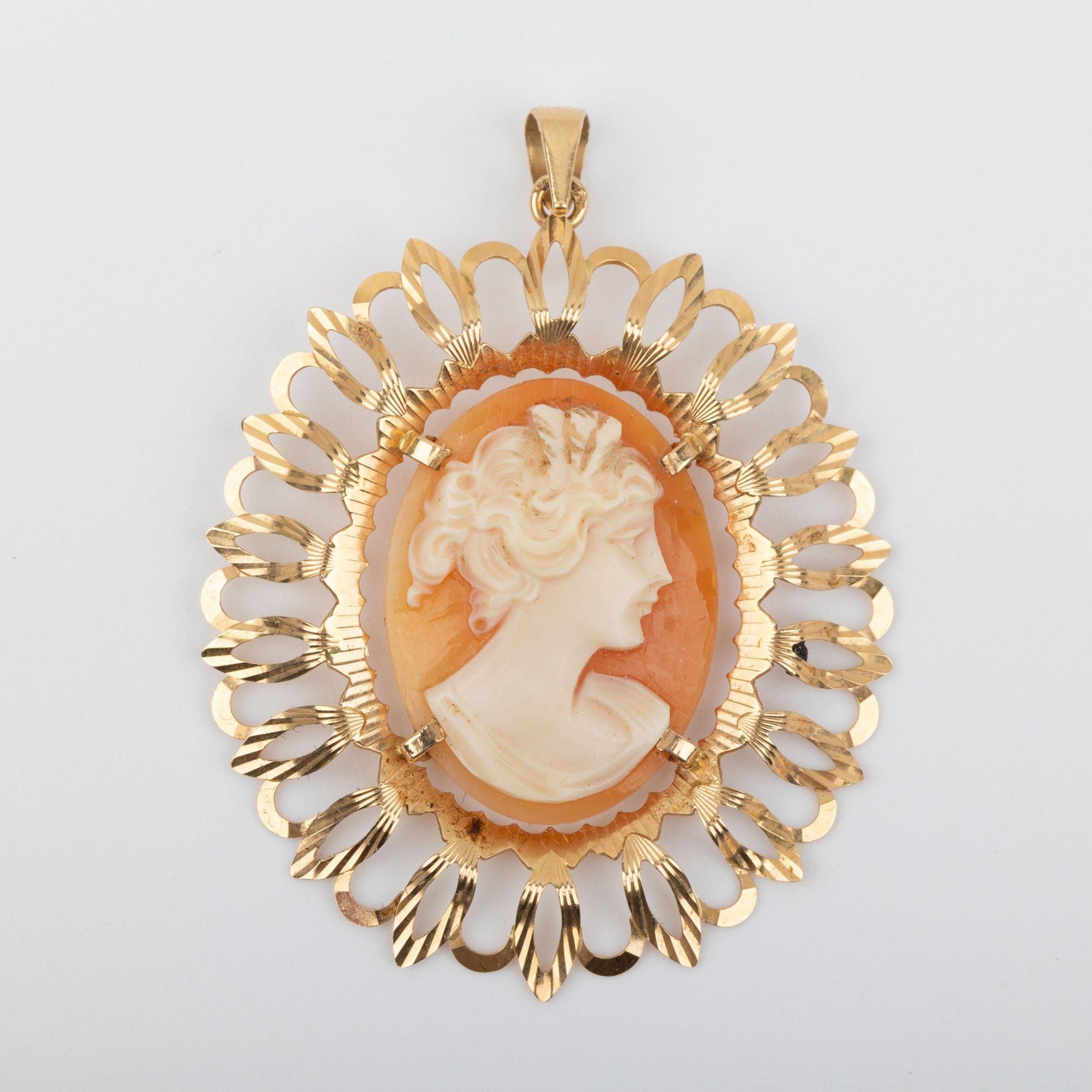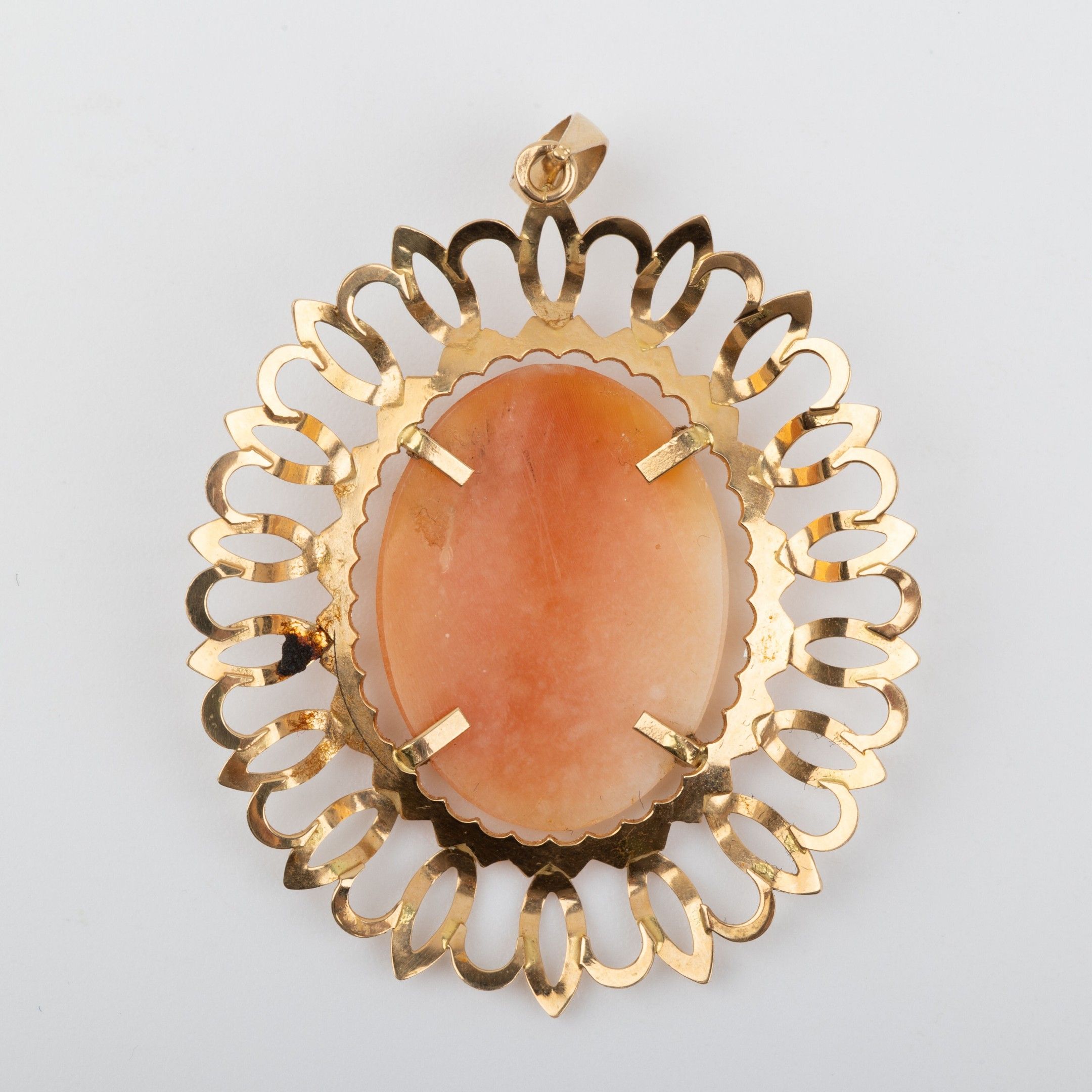 Pendant with cameo engraving of a young woman on a shell, mounted in 18K openwork gold