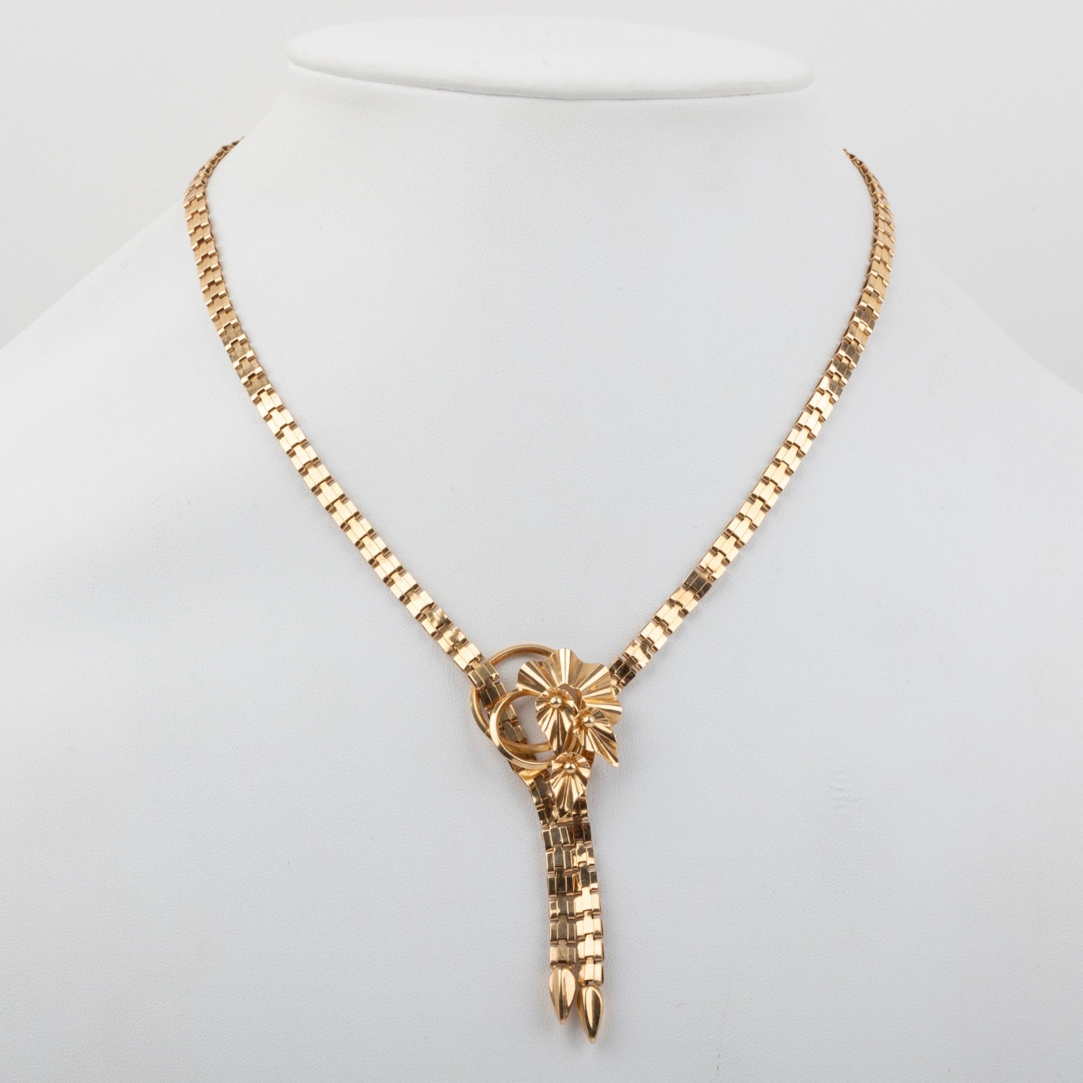 Choker necklace, finished with tassels, in 18K gold with 18K fancy stitching