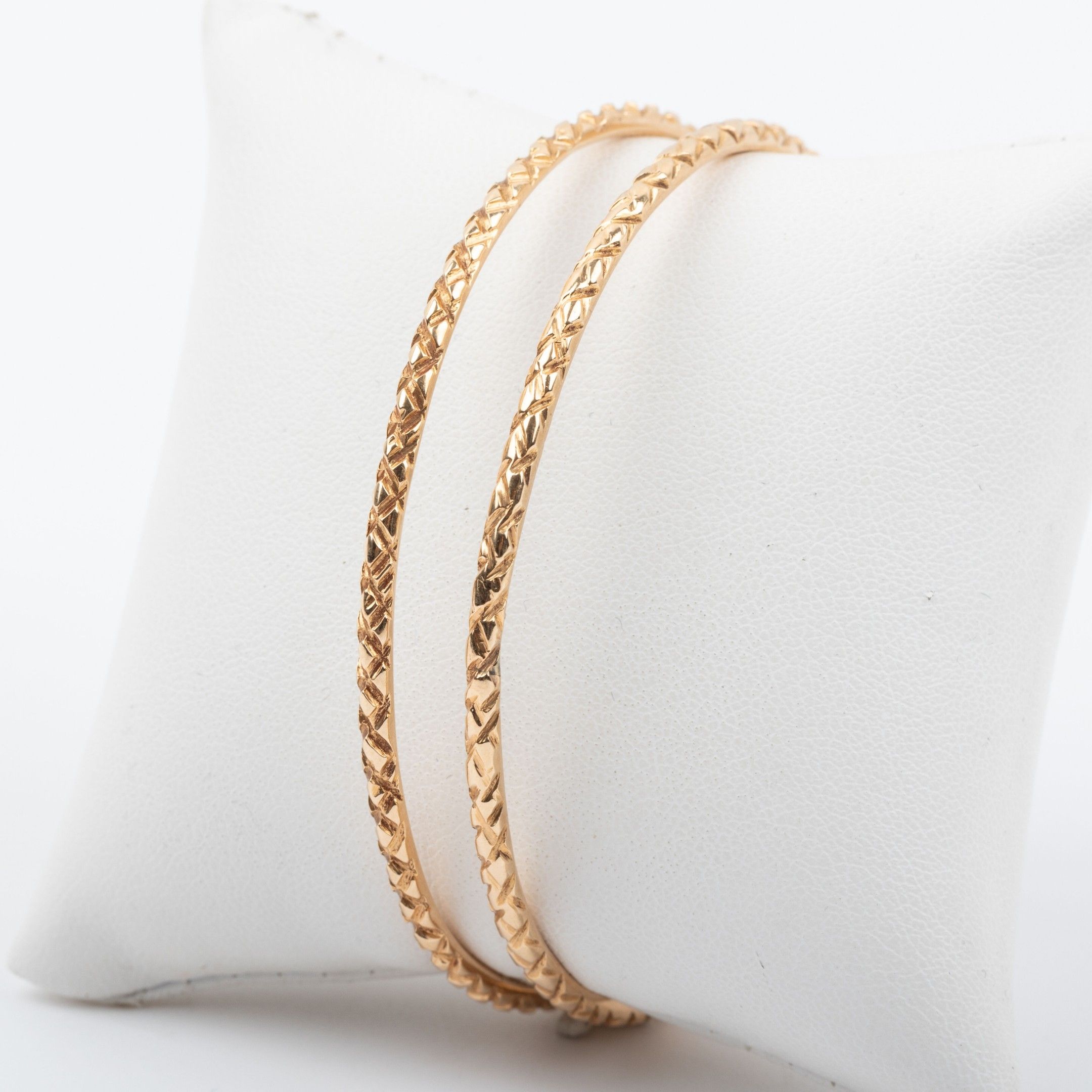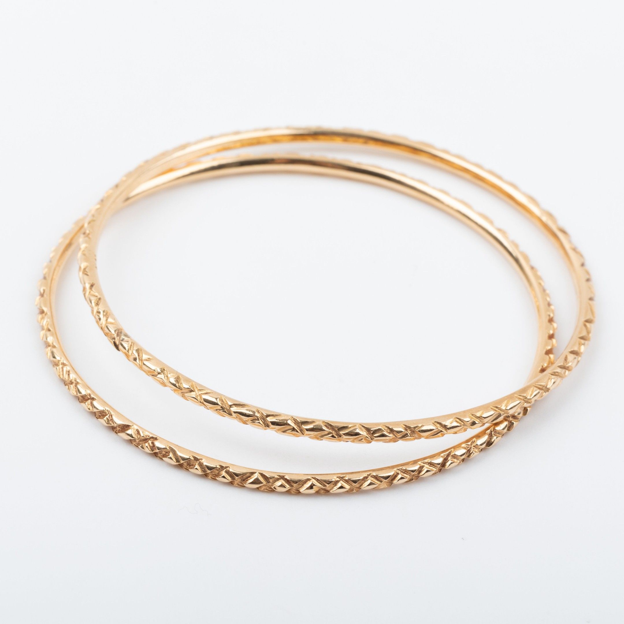 Two half-jewelled bracelets in engraved 18K gold, with geometric decoration