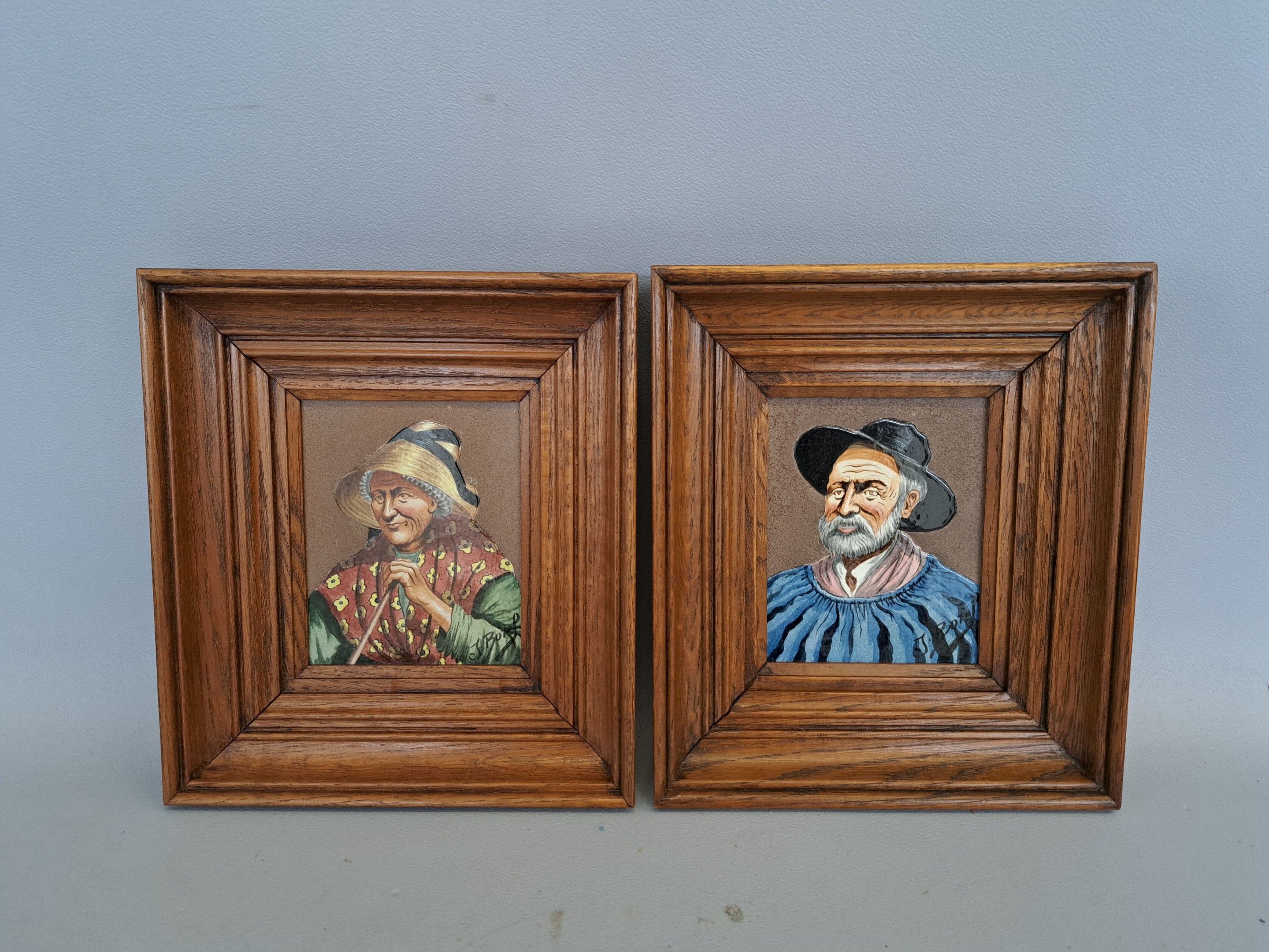 Jean BOREL, Couple d'Auvergnats, two enamels on lava stone.
