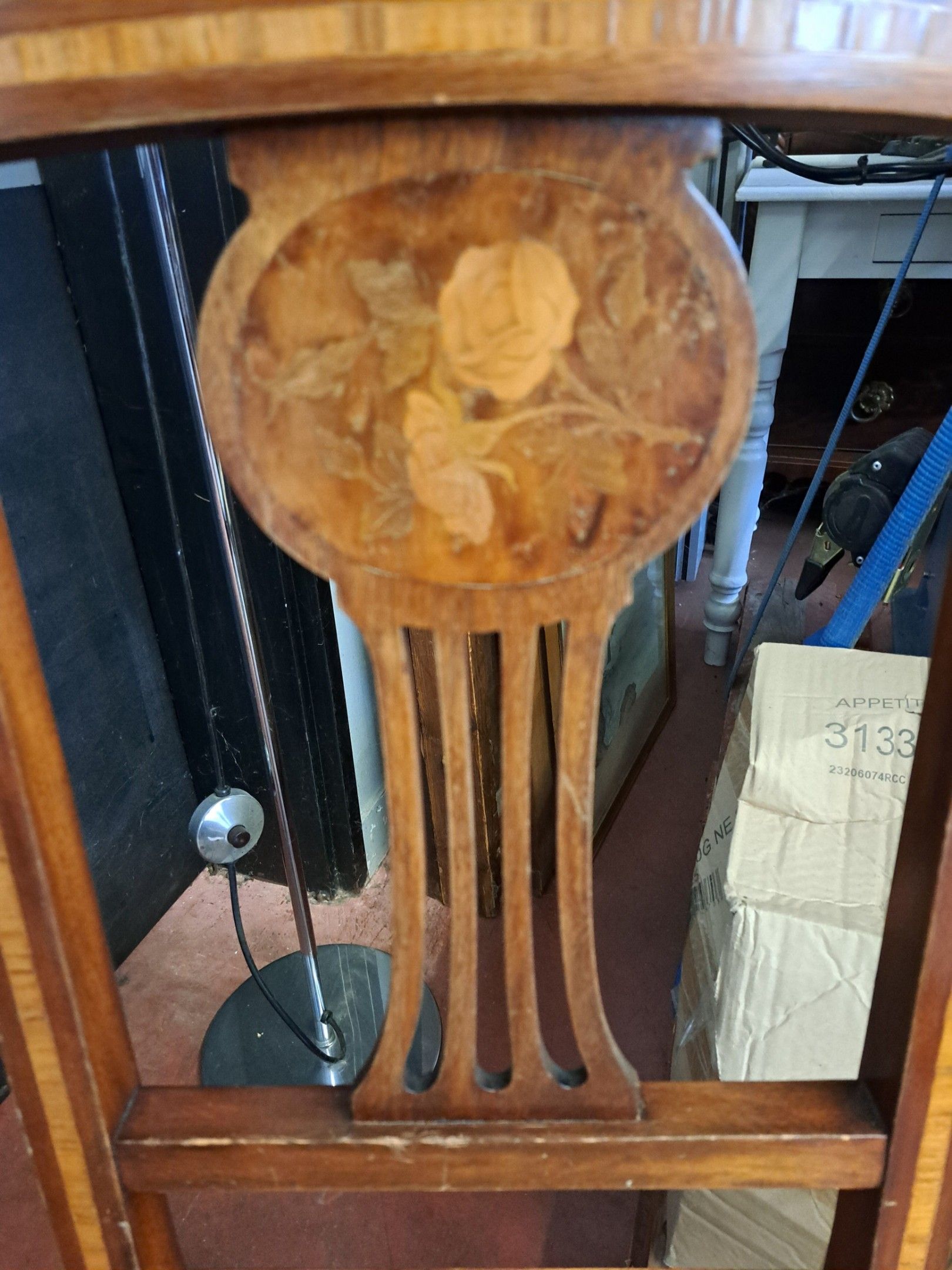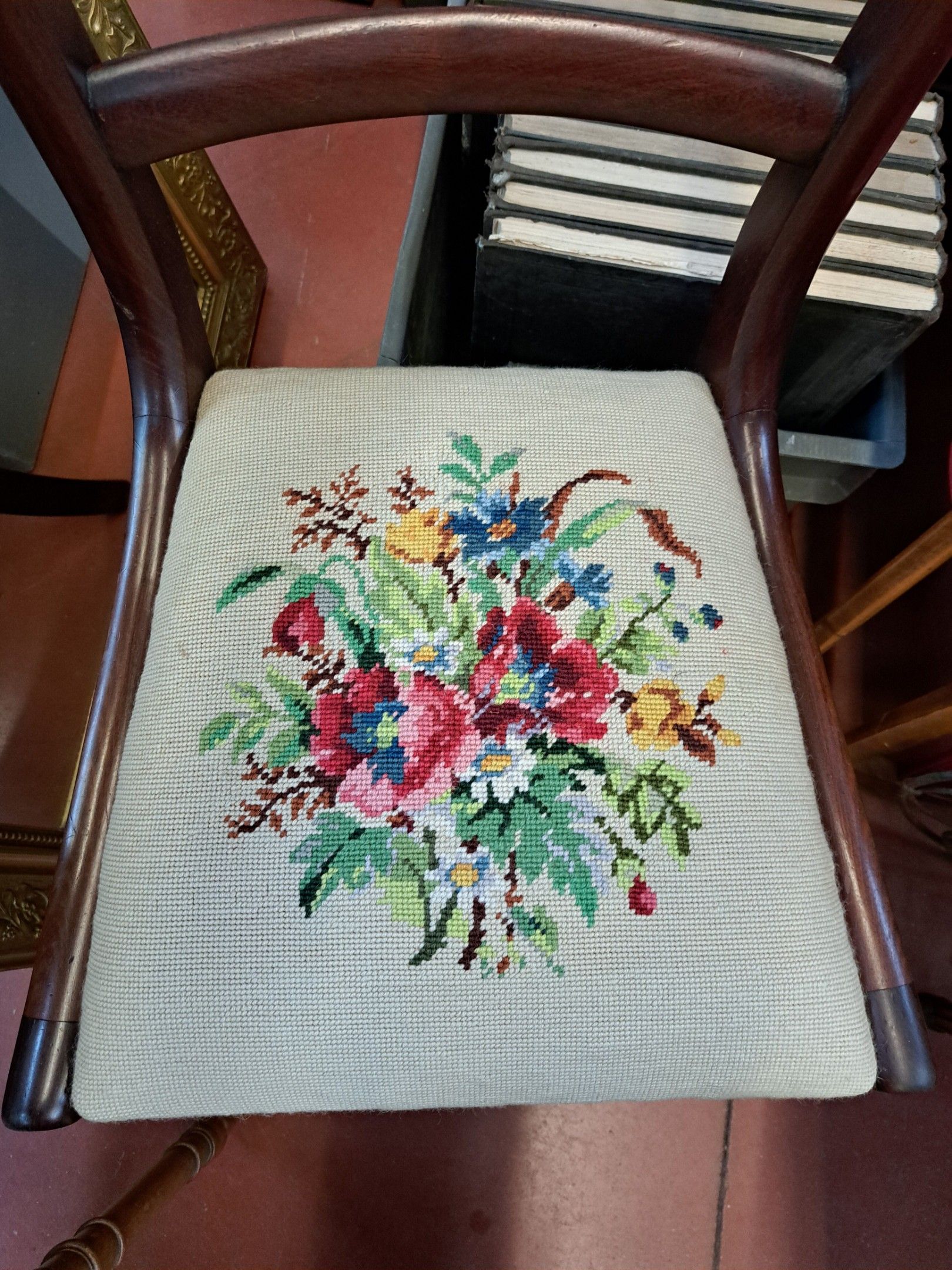 A mahogany banded back chair with a floral tapestry. 19th century.
