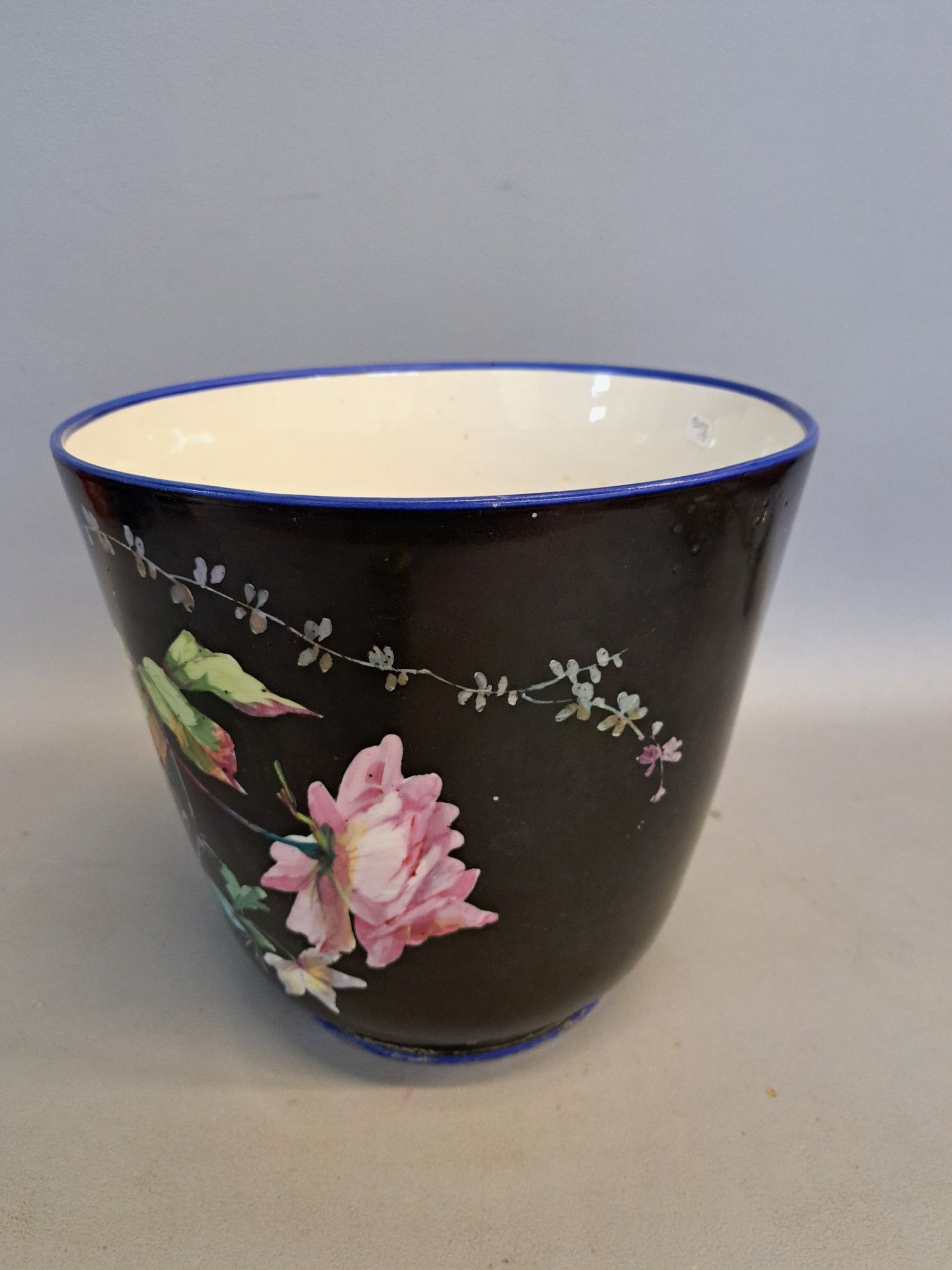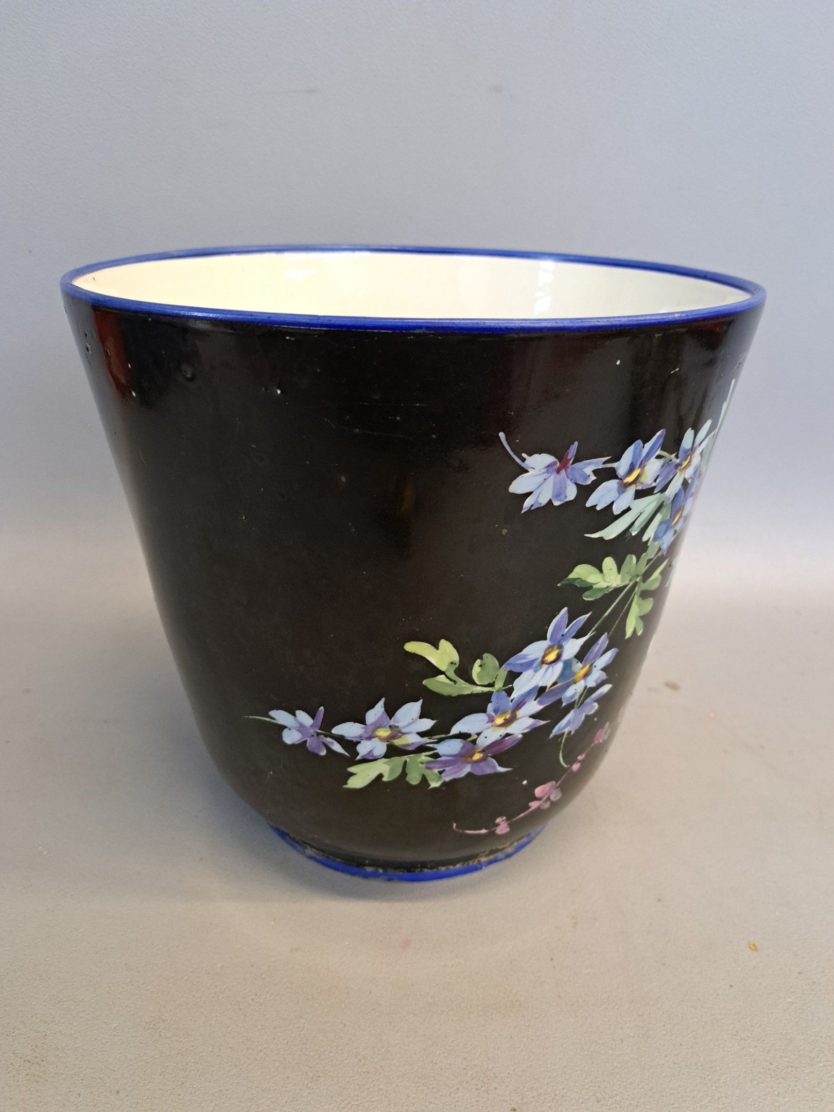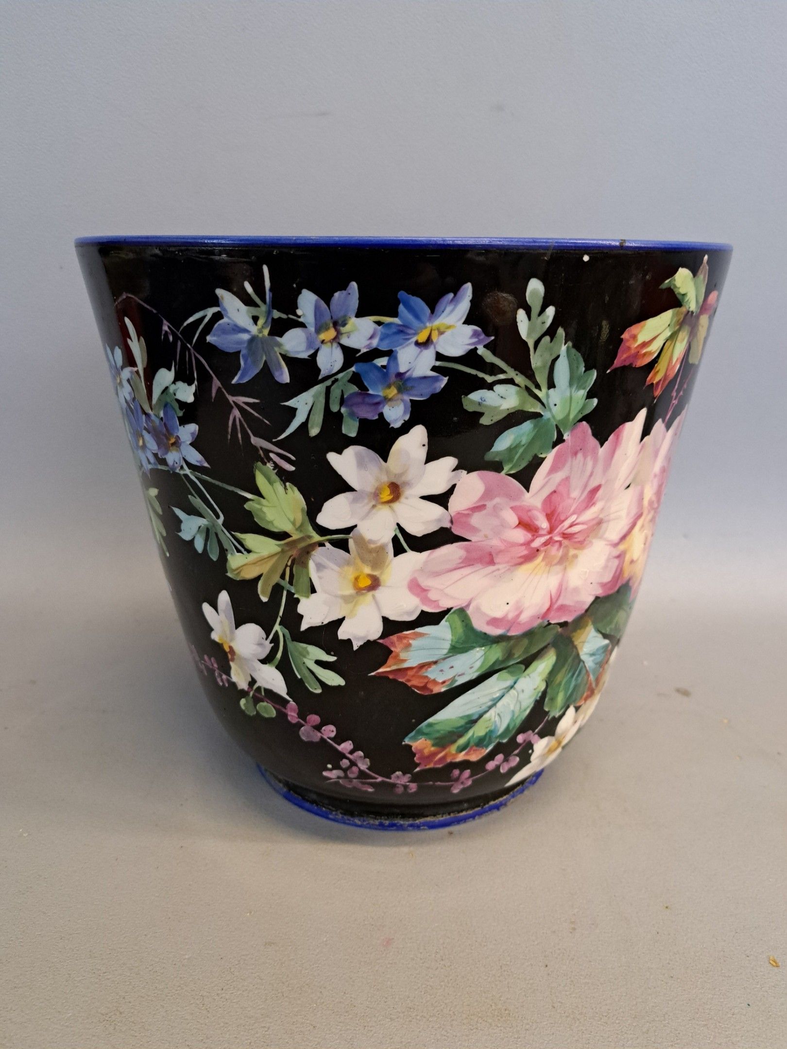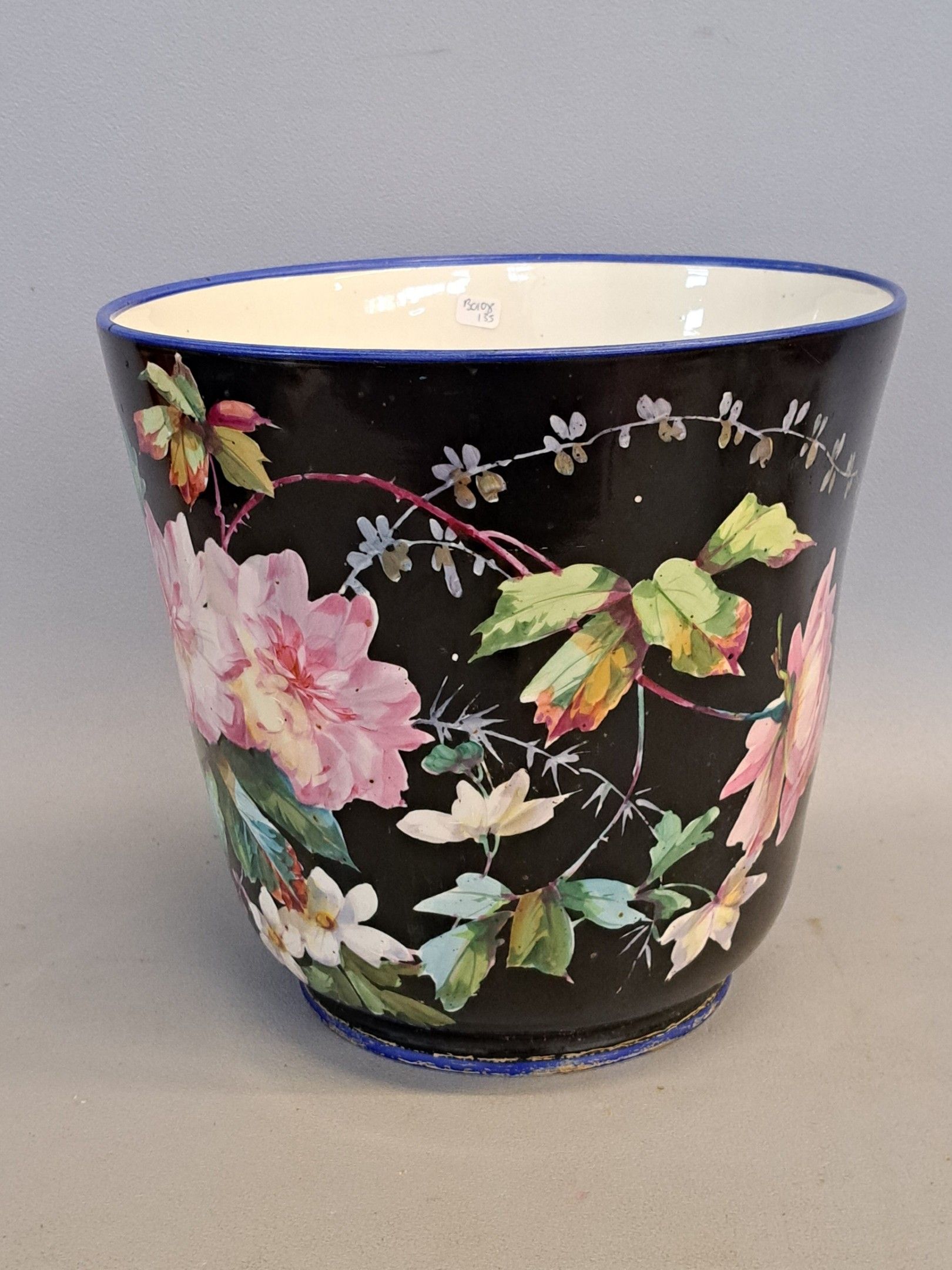 Large Paris porcelain pot-holder with rich floral decoration on a black background, H. 26 cm.