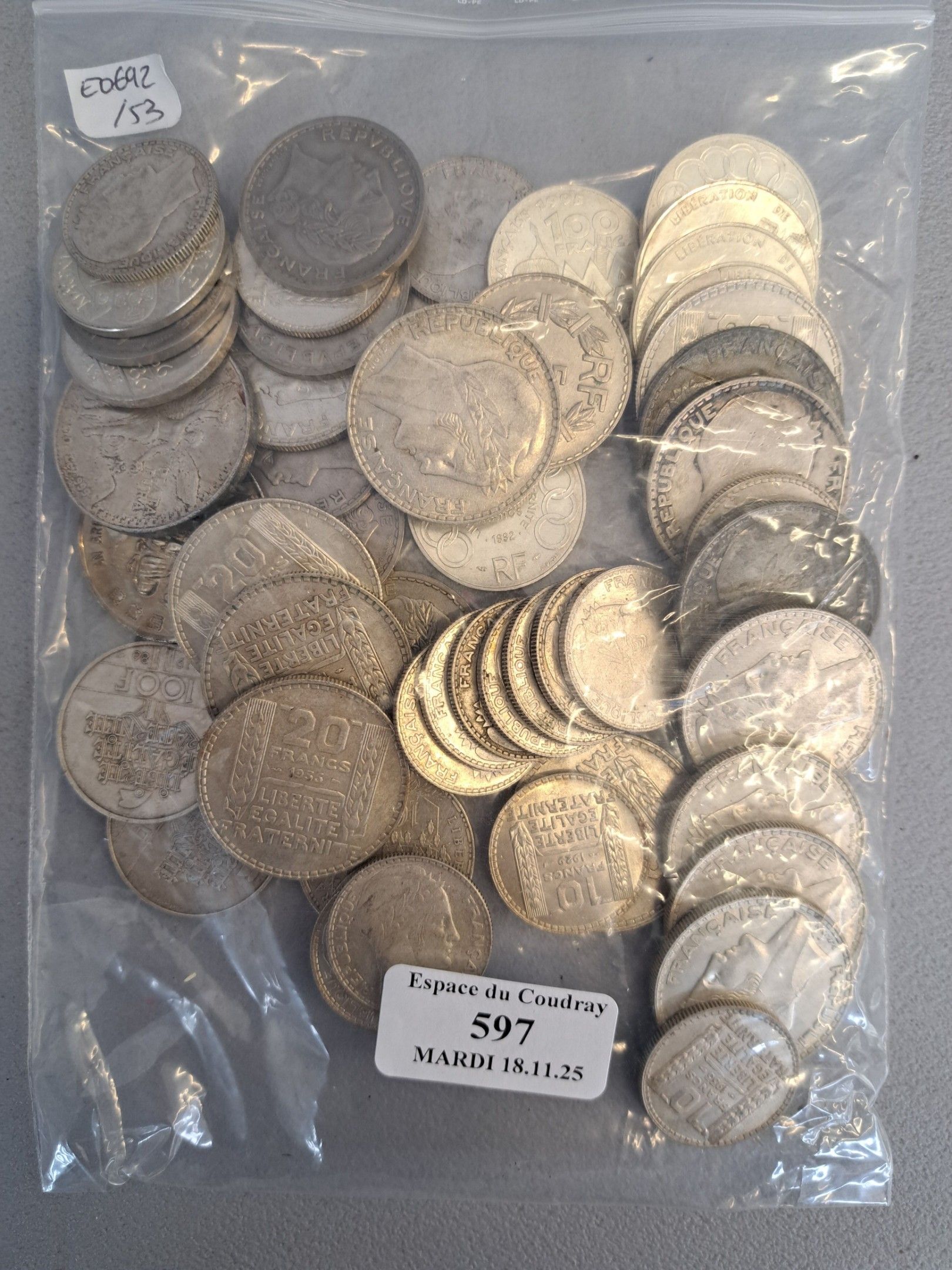 Set of silver coins. France 20th century including 10 francs and 20 francs Turin.