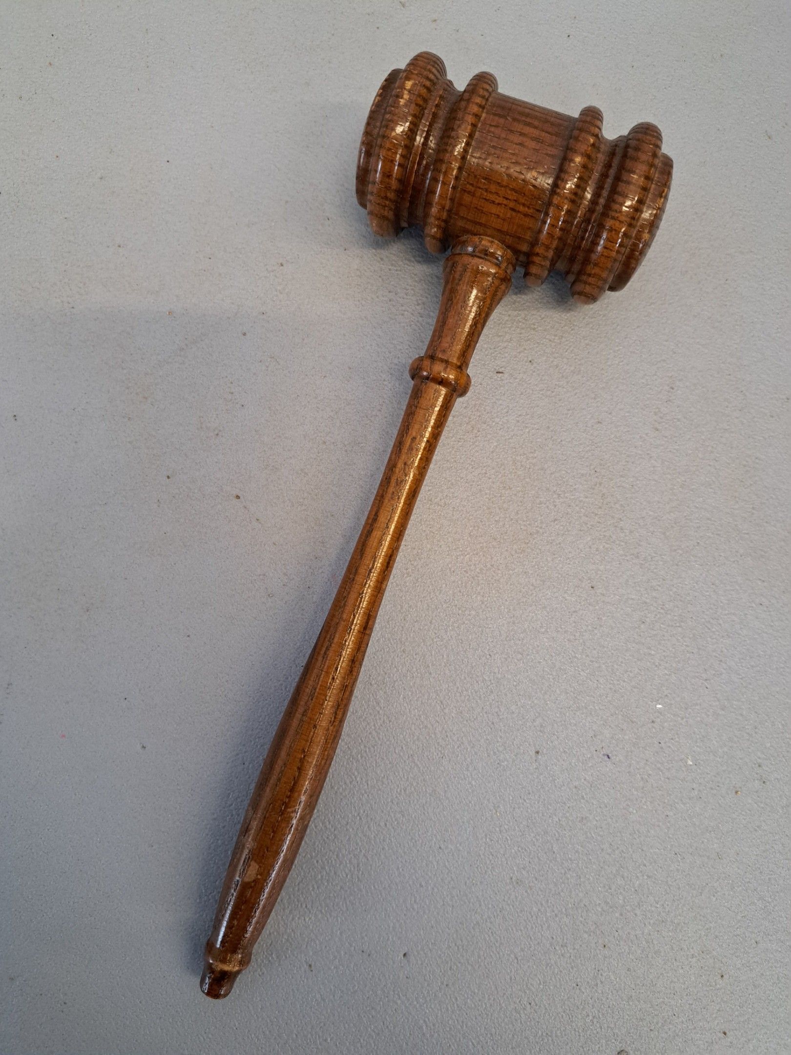 Turned and varnished oak hammer, L.
