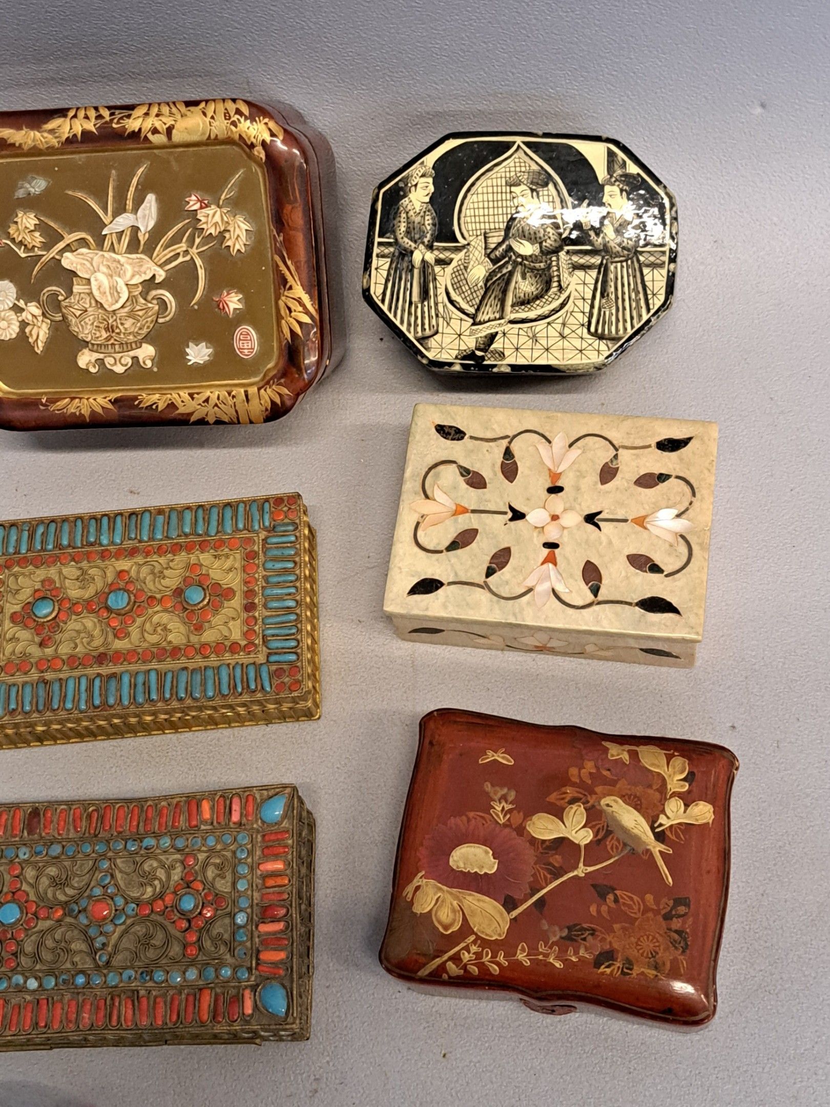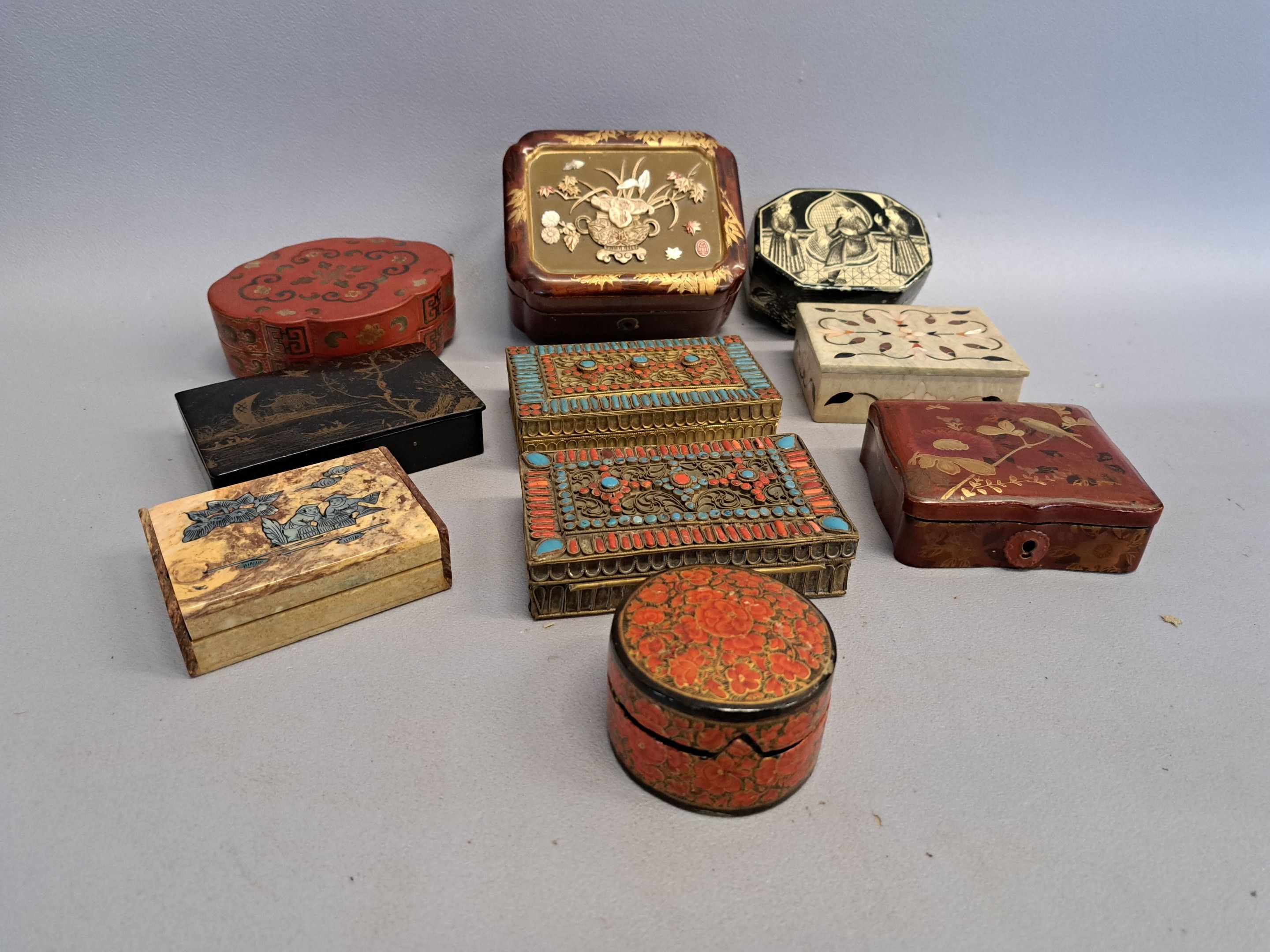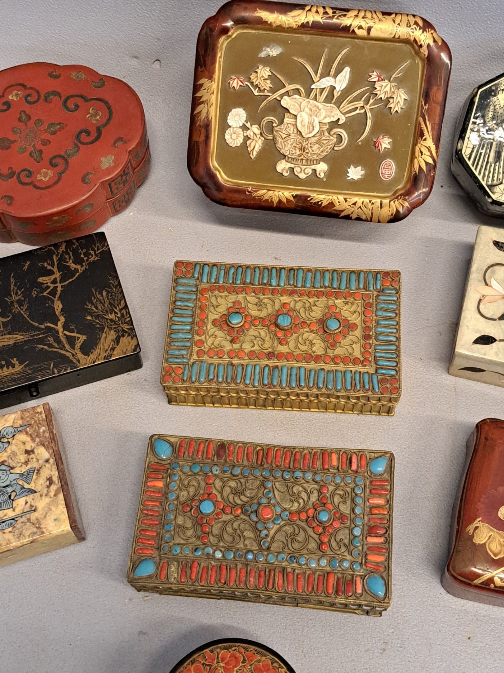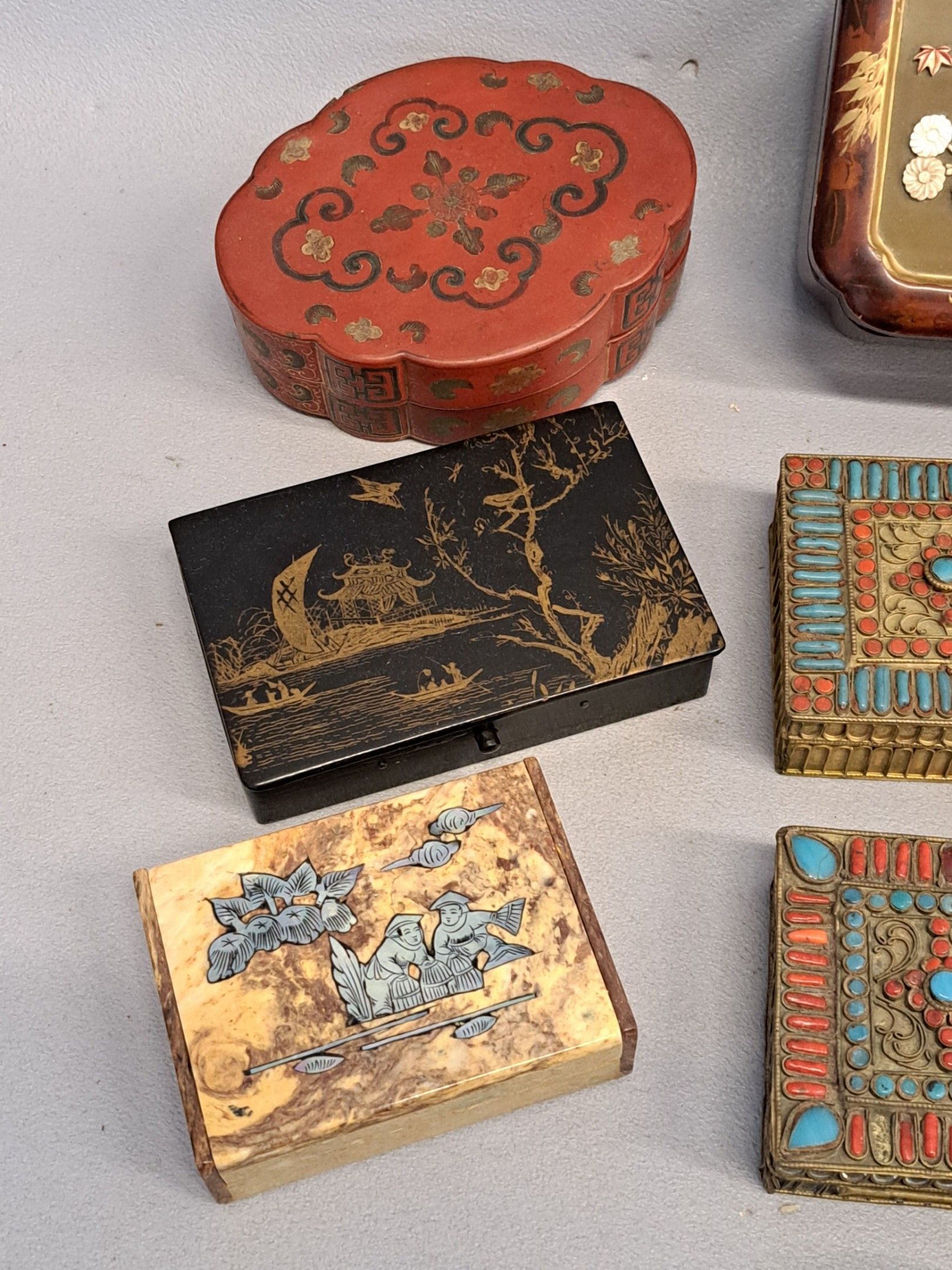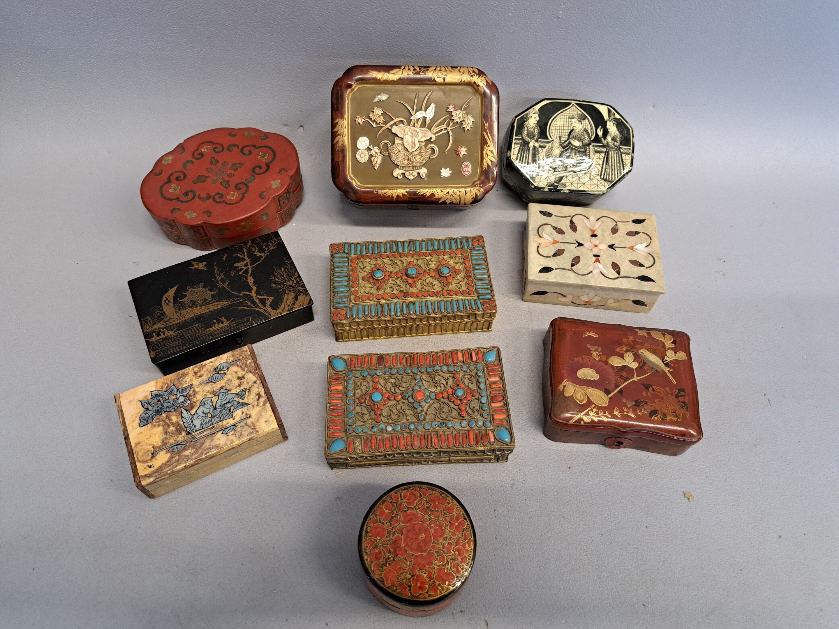 10 lacquer, hardstone or metal boxes decorated with cabochons (minor wear).