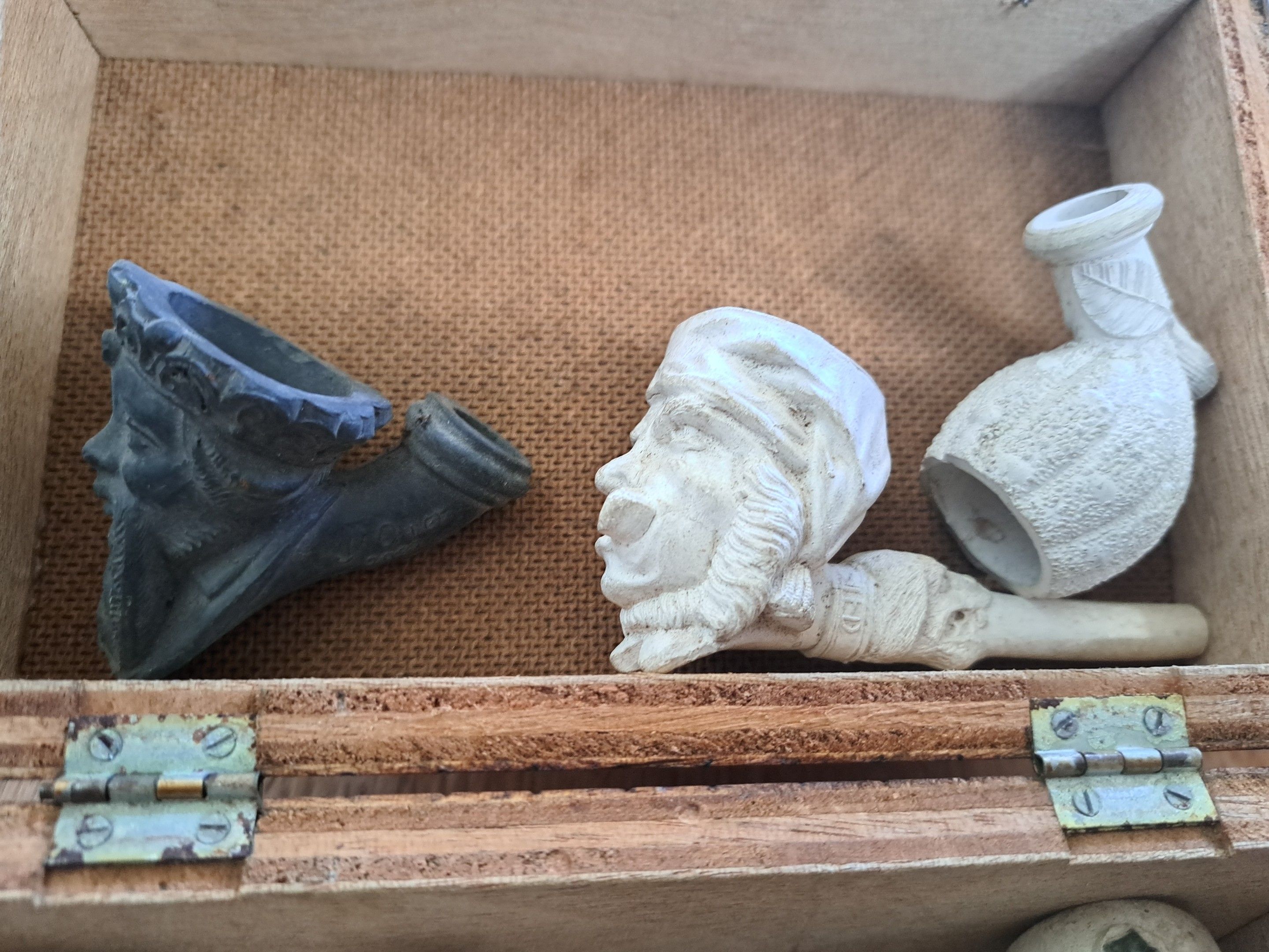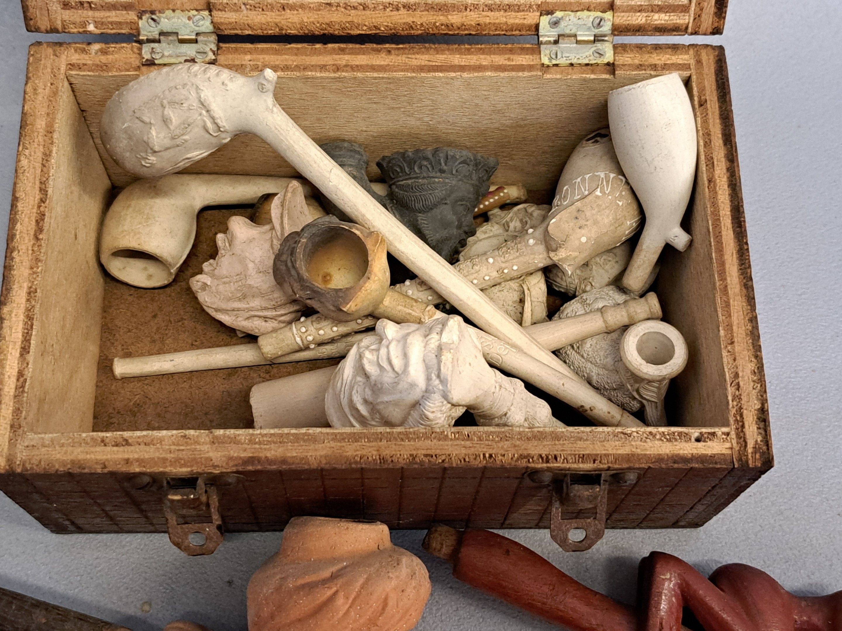 Tobacco, 4 pipes and a dozen stoves in carved wood or briar clay (minor wear).