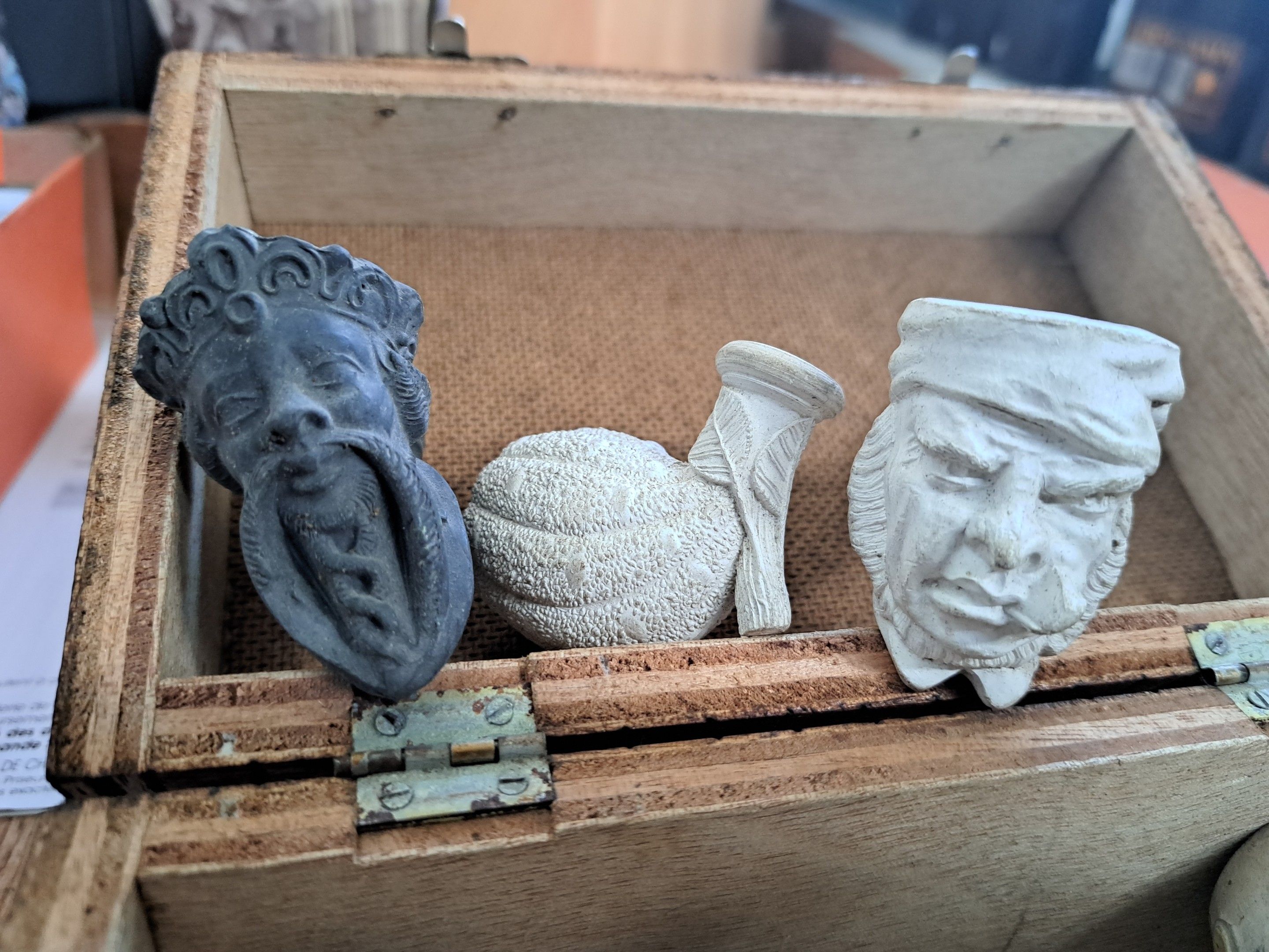 Tobacco, 4 pipes and a dozen stoves in carved wood or briar …