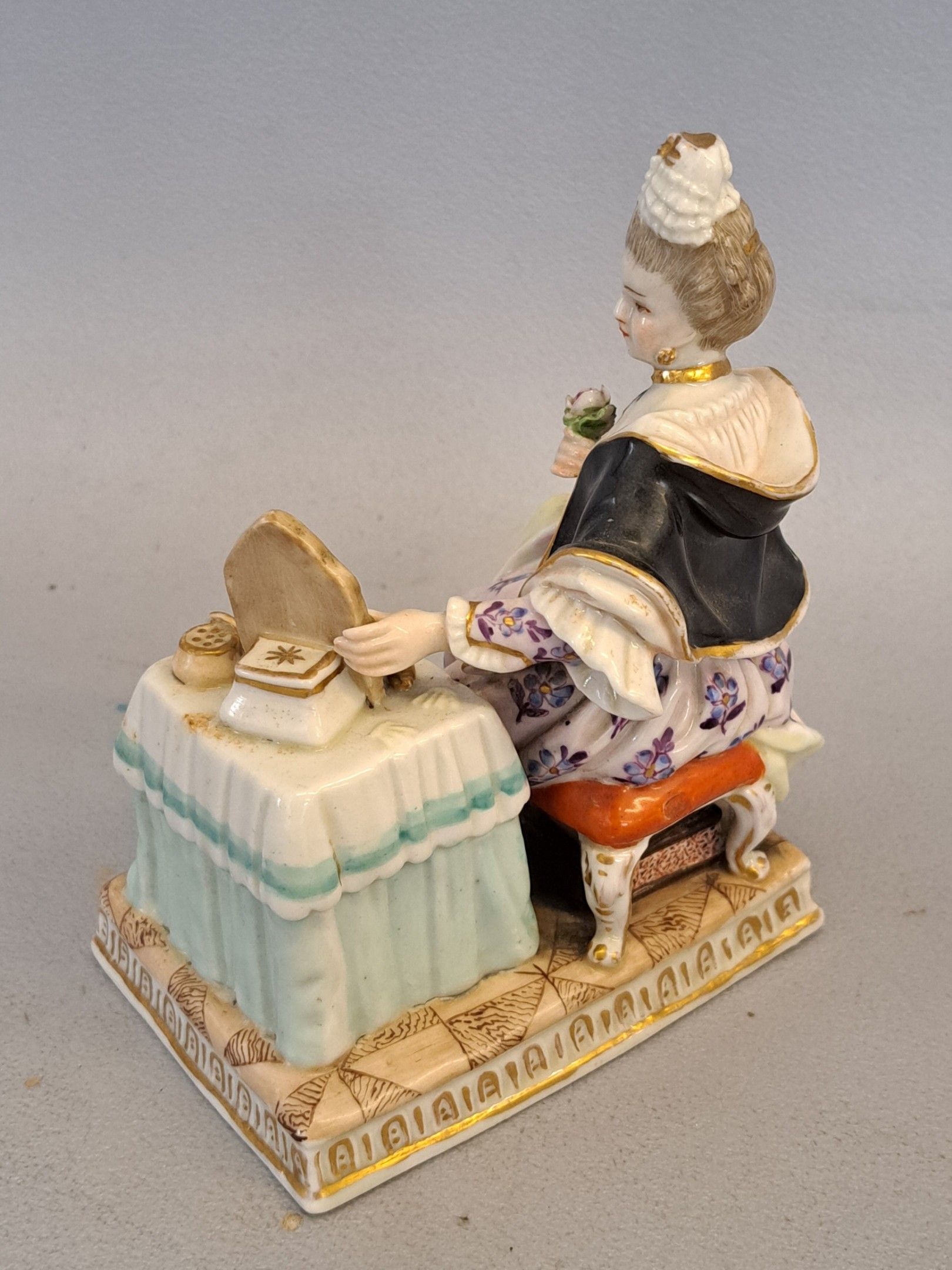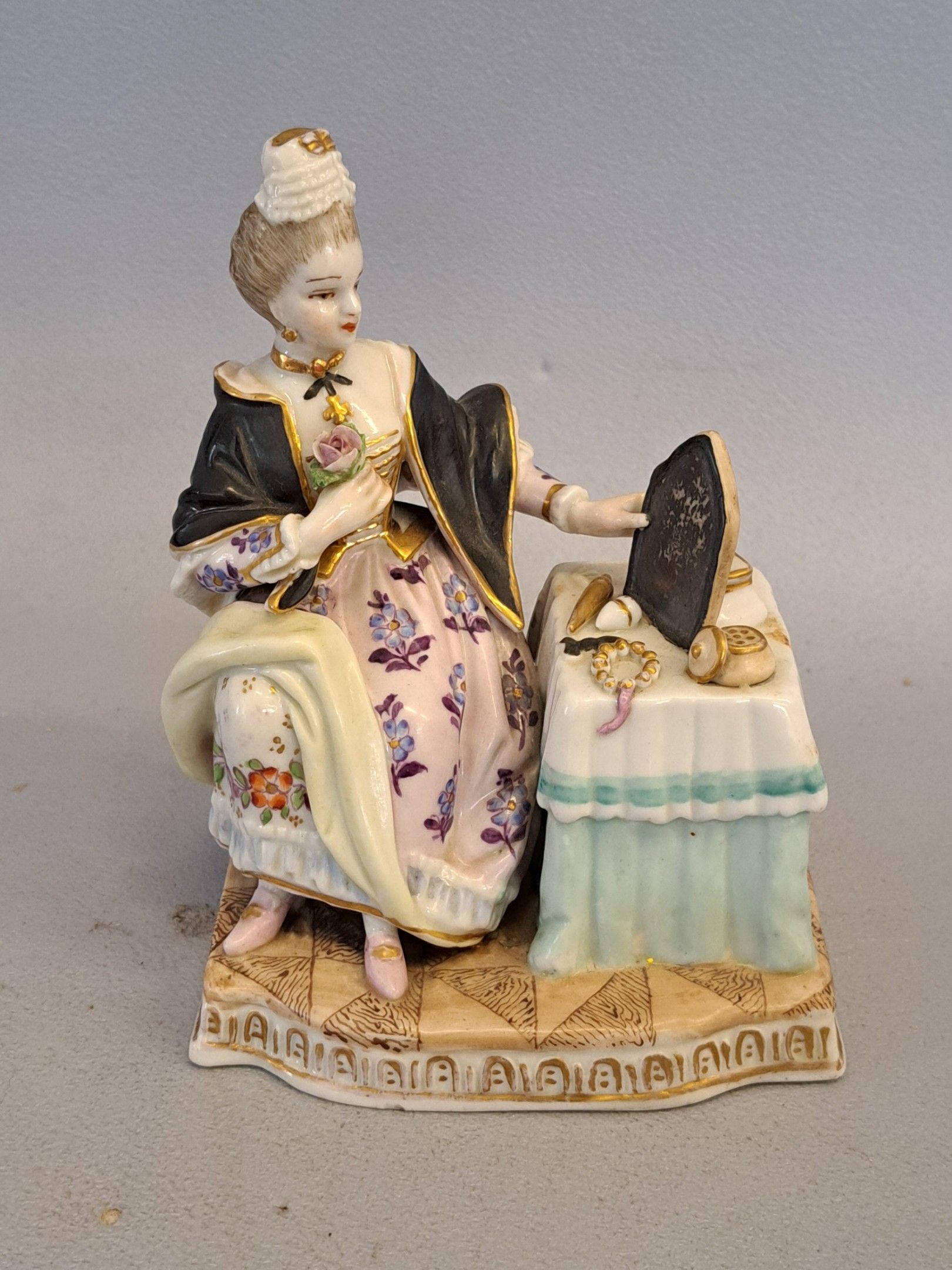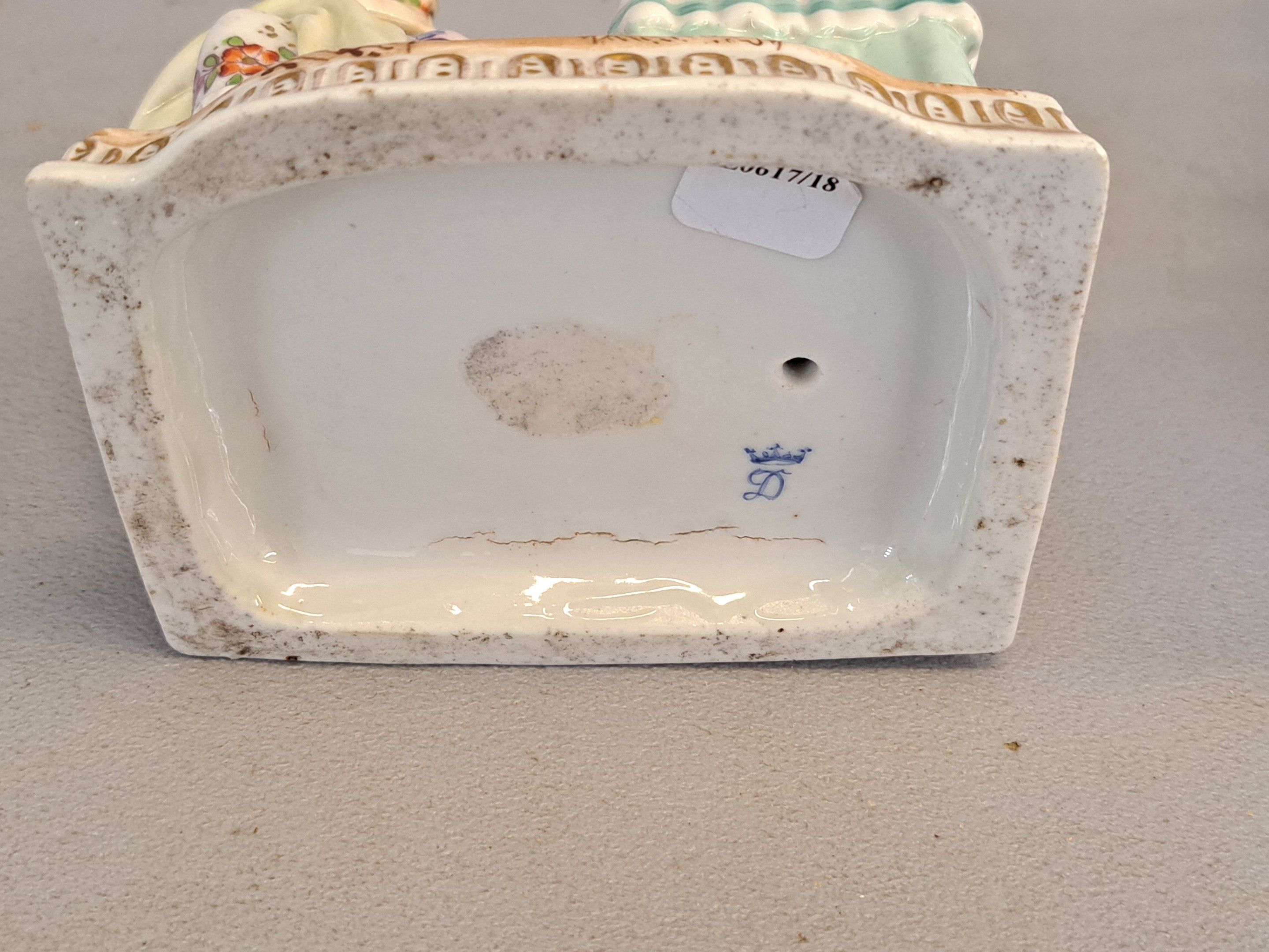 subject in polychrome and gilded porcelain, marked in blue with a crowned "D". Late 19th-early 20th century. 14 cm.