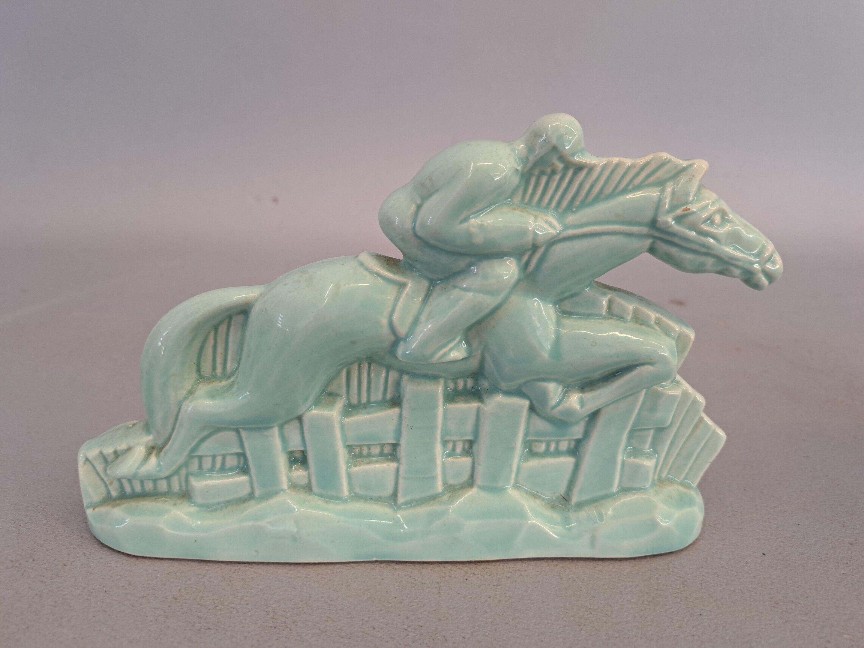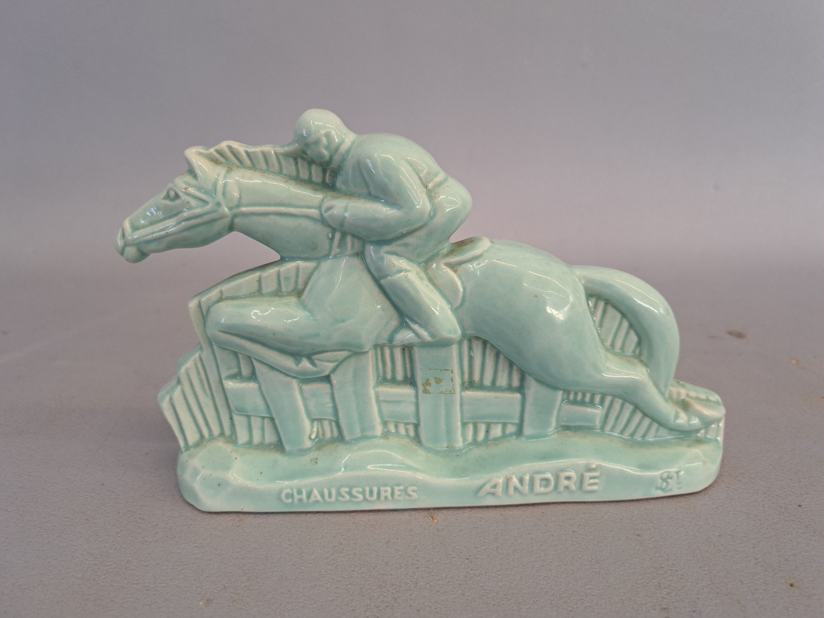 Saint Clément, ANDRE shoes, advertising subject in green glazed earthenware, L. 20 cm.