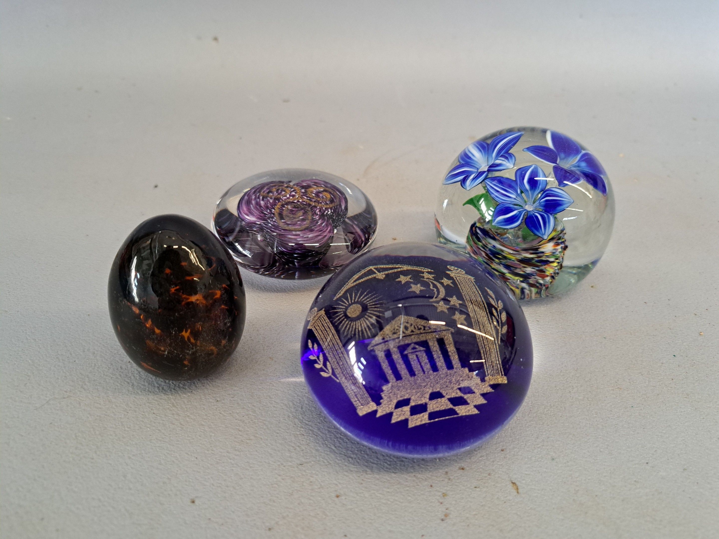 one egg-shaped, the other three round, decorated with flowers or Masonic symbols.