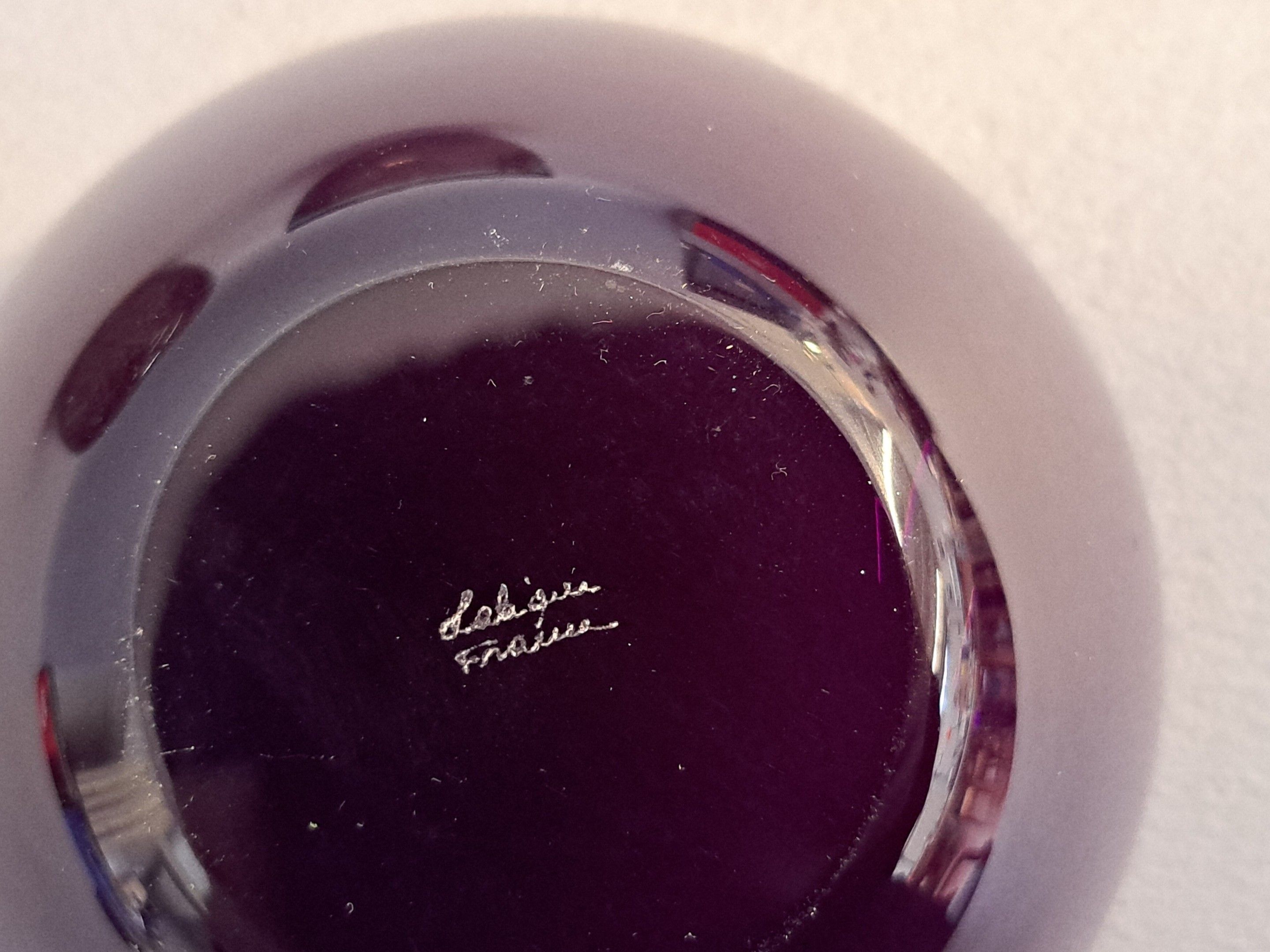 LALIQUE France Small amethyst crystal bowl. Diam. 10 cm.
