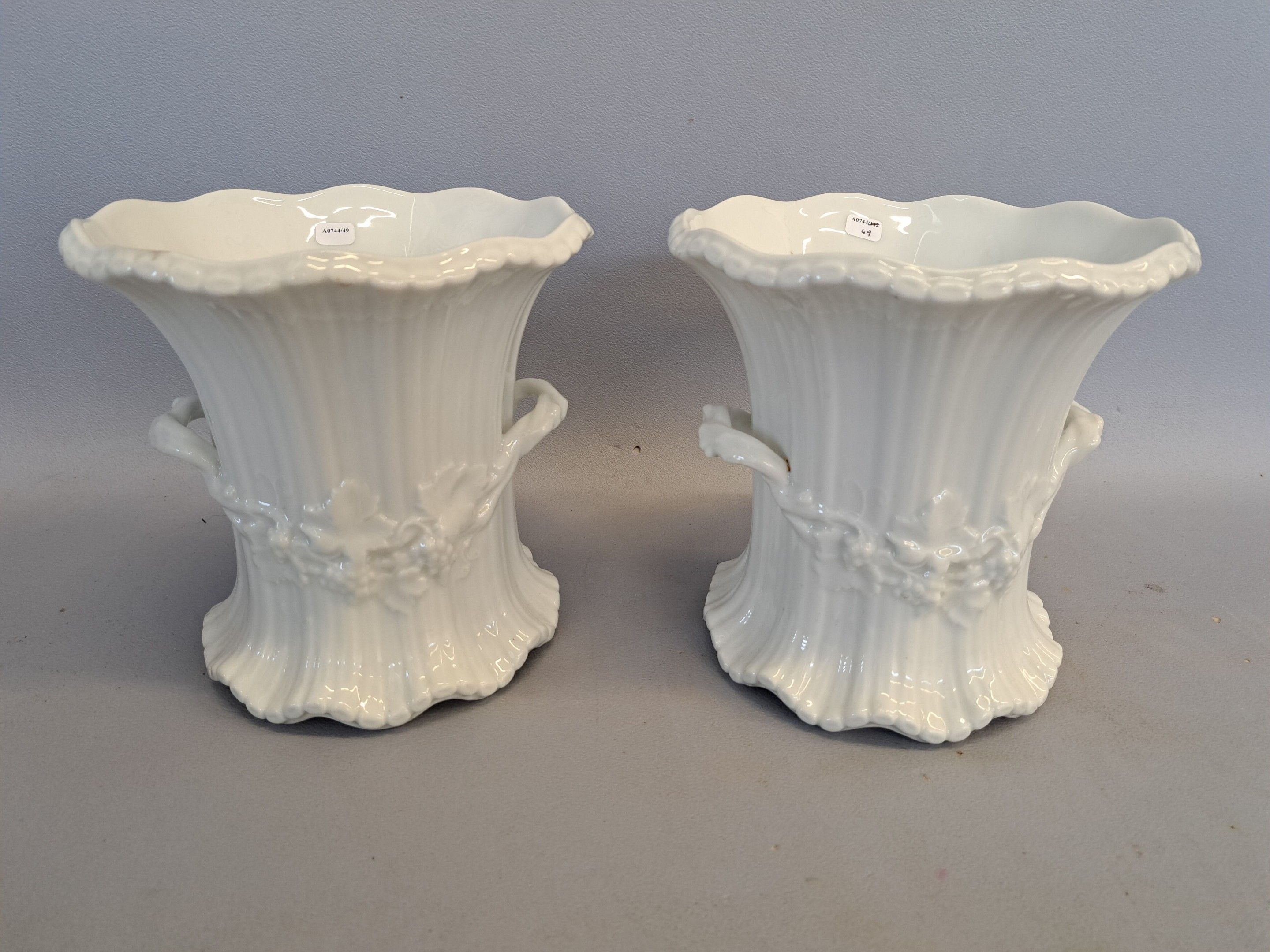 Pair of white porcelain planters. Height 20 cm. Diam. 20 cm.