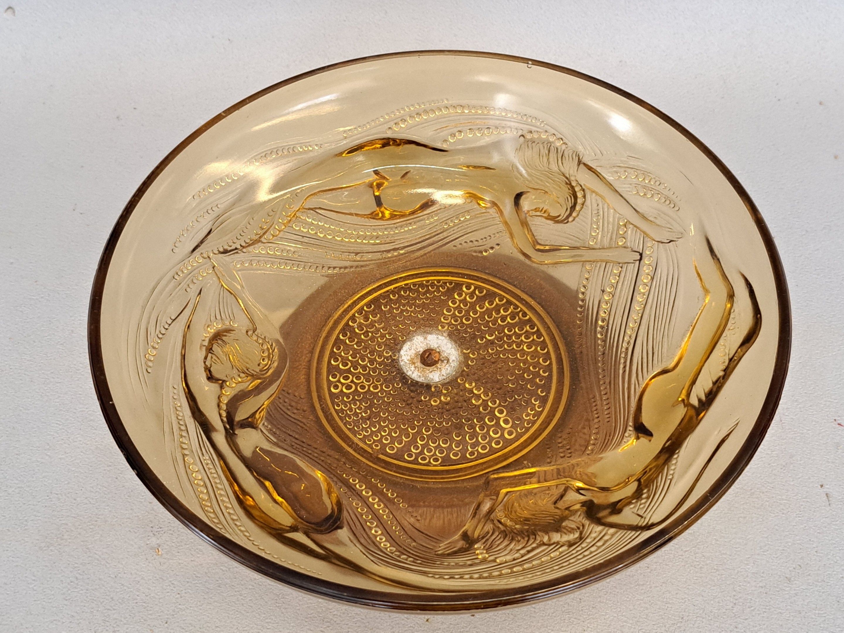 Yellow moulded glass bowl decorated with Naiads, pierced and…