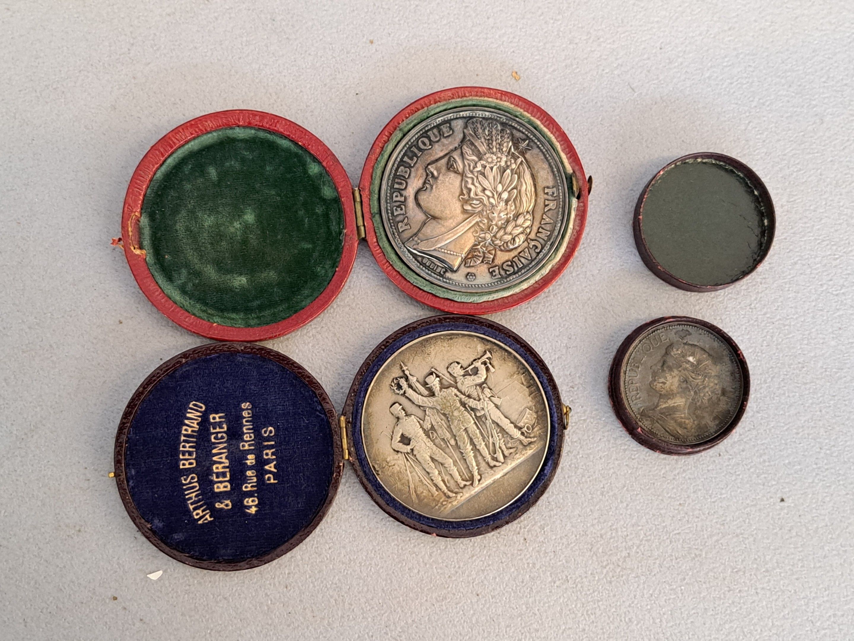 Caisse des écoles and Ministère de l'agriculture et du commerce, weight 140 g, in a case.