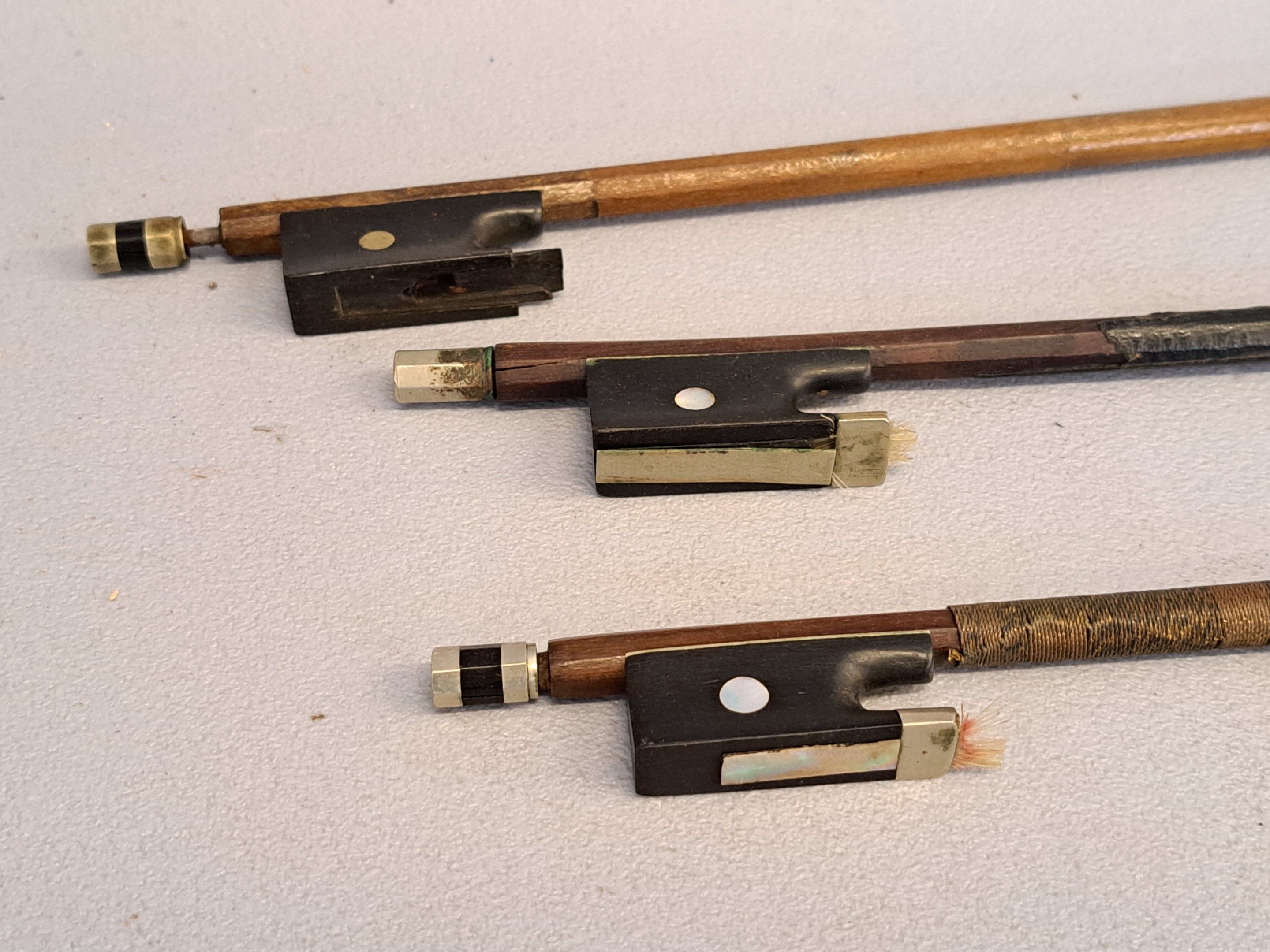 Three bows (accidents and missing parts). L. between 67 and 74 cm.