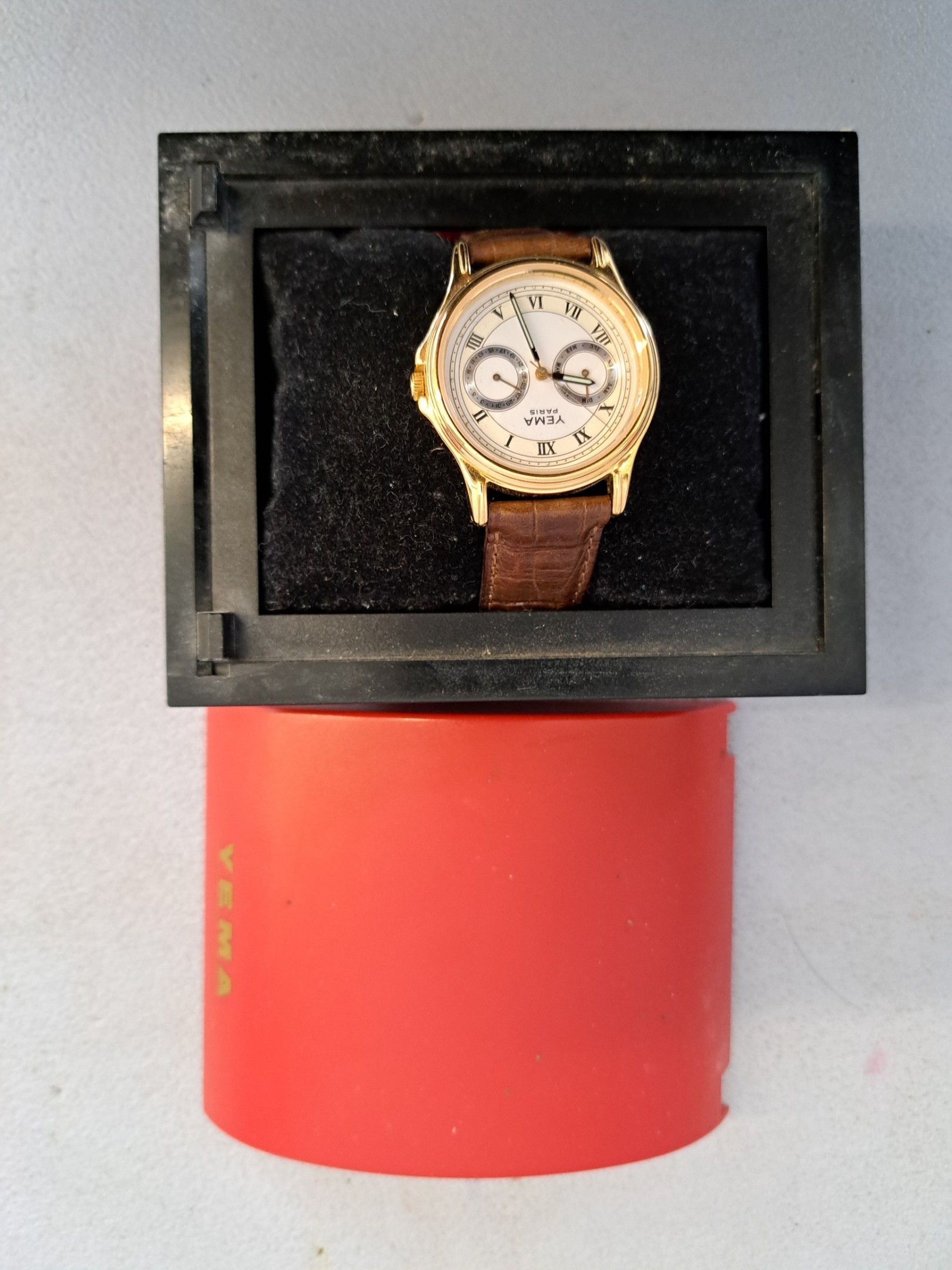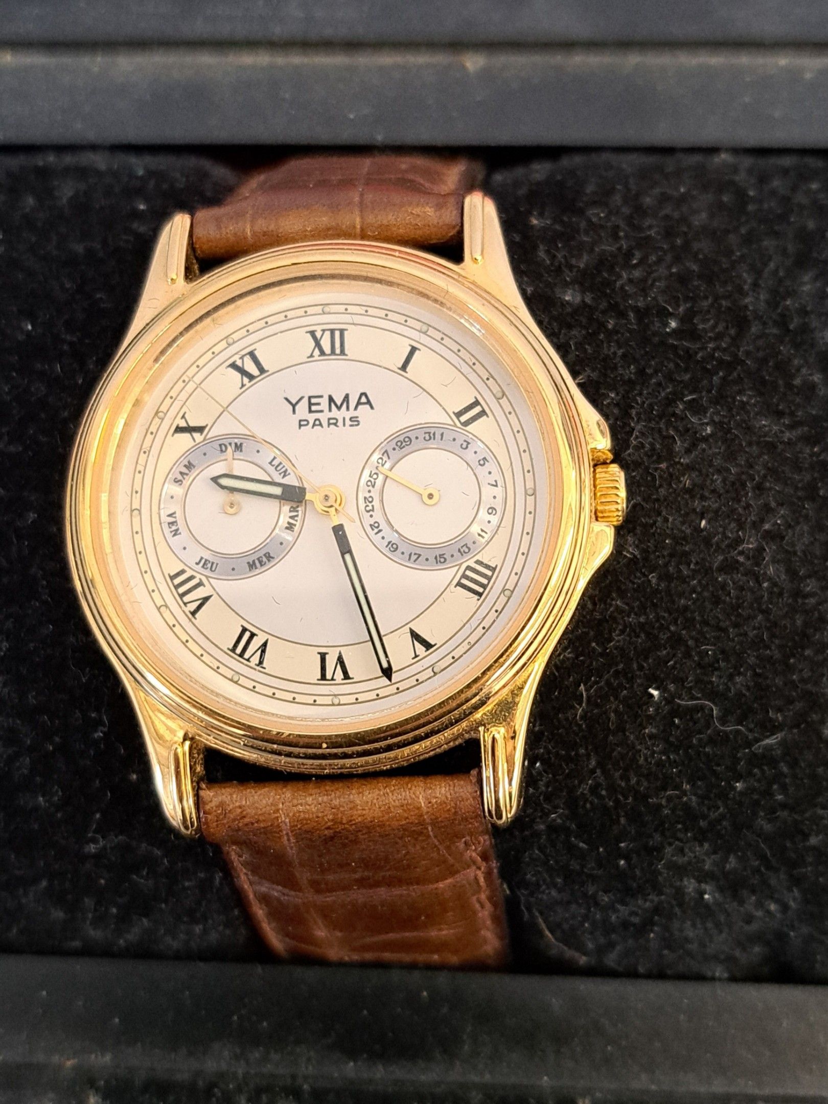Yema, Paris, gilt metal men's wristwatch, dial with date, qu…