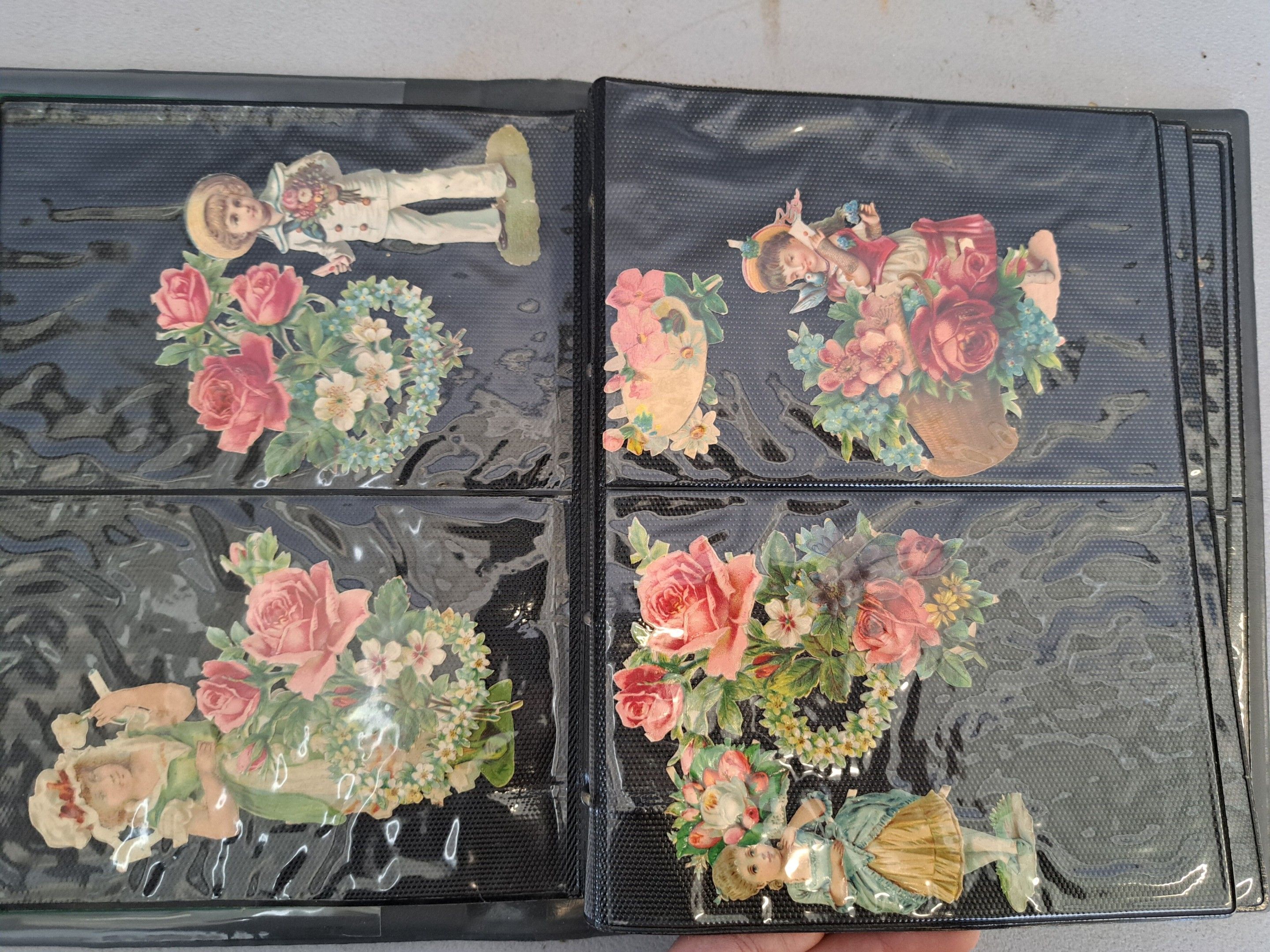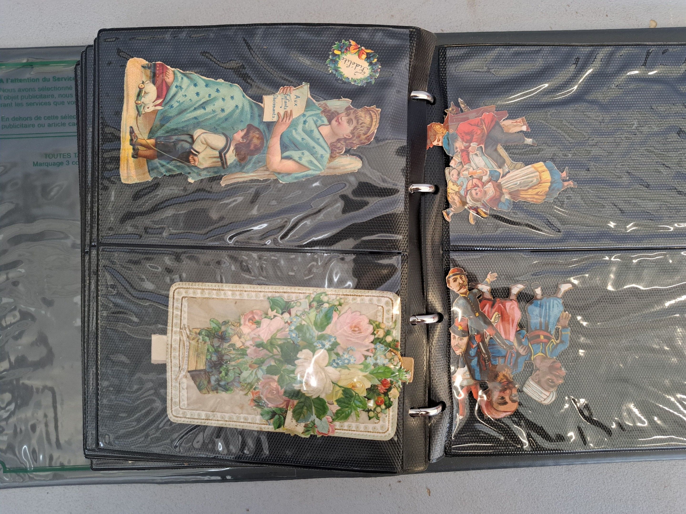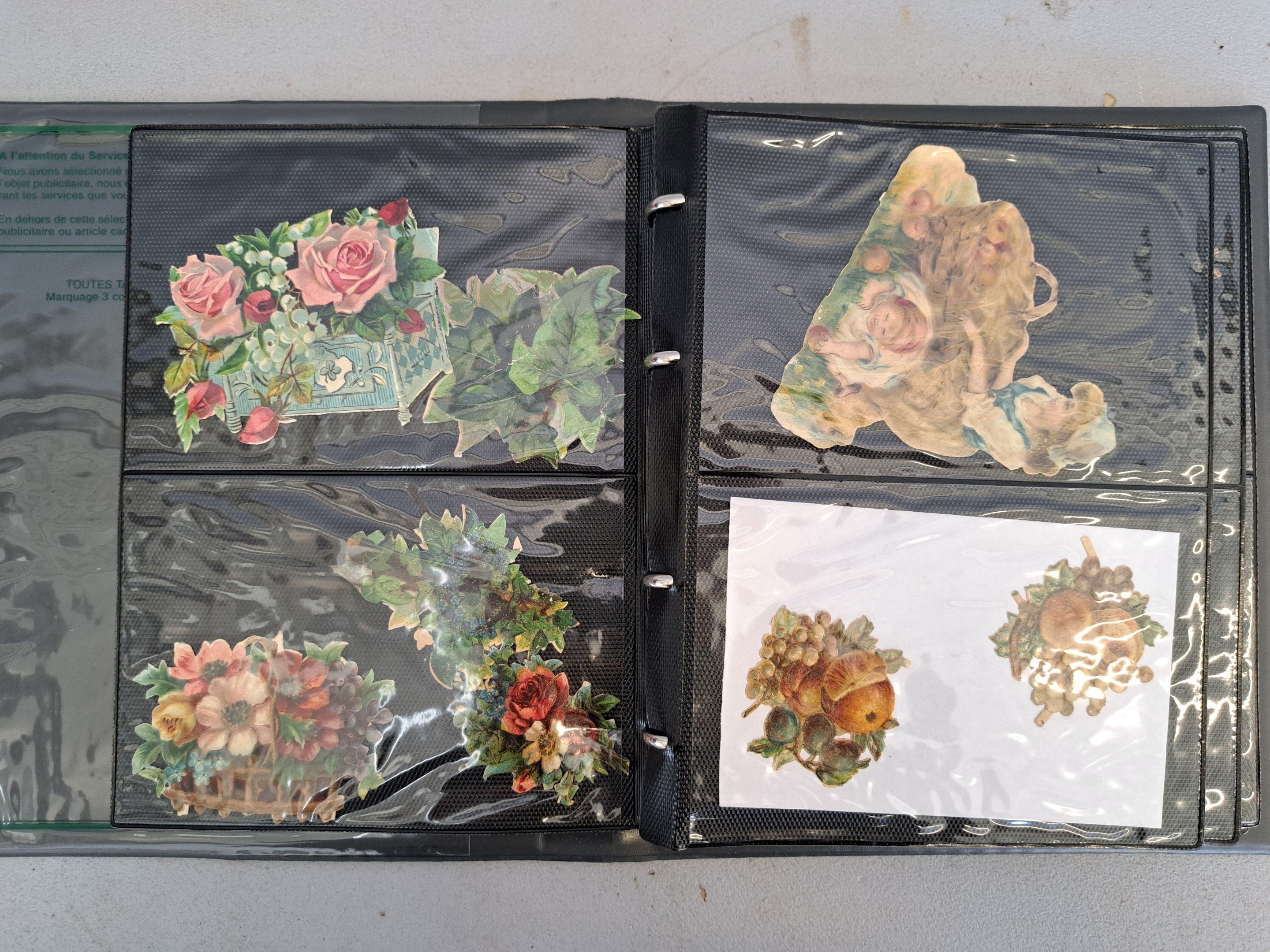 Small set of chromos and cut-outs. Late 19th - early 20th century. In a binder.
