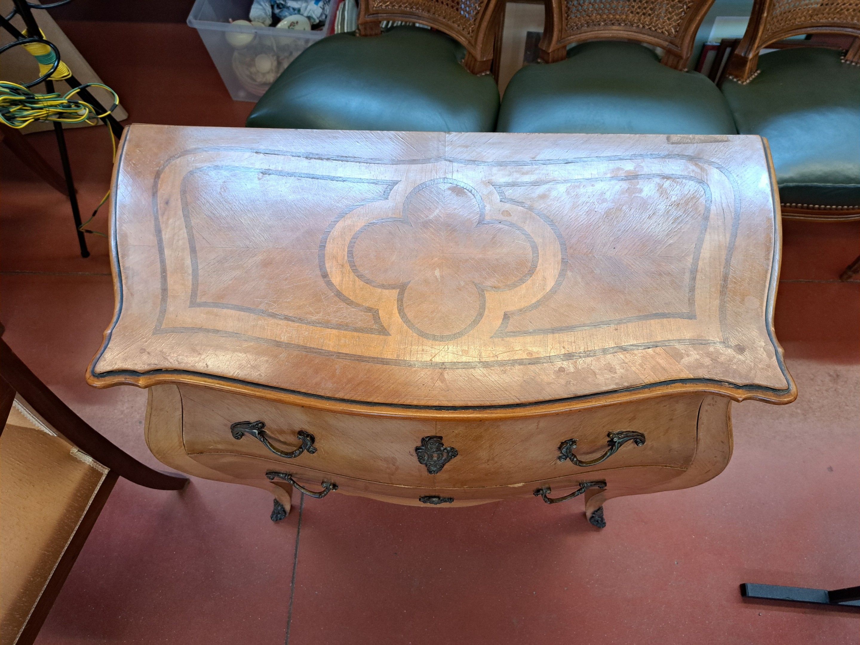 Small chest of drawers with two drawers and no crossbar in veneer (missing). Louis XV style.