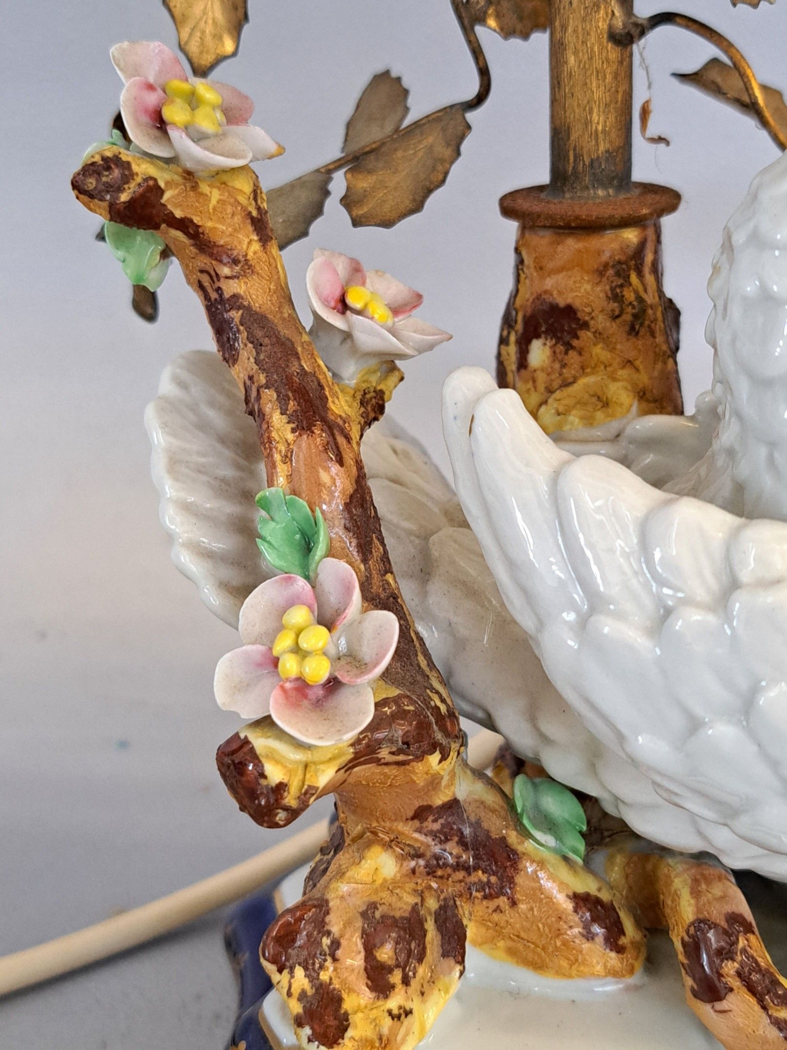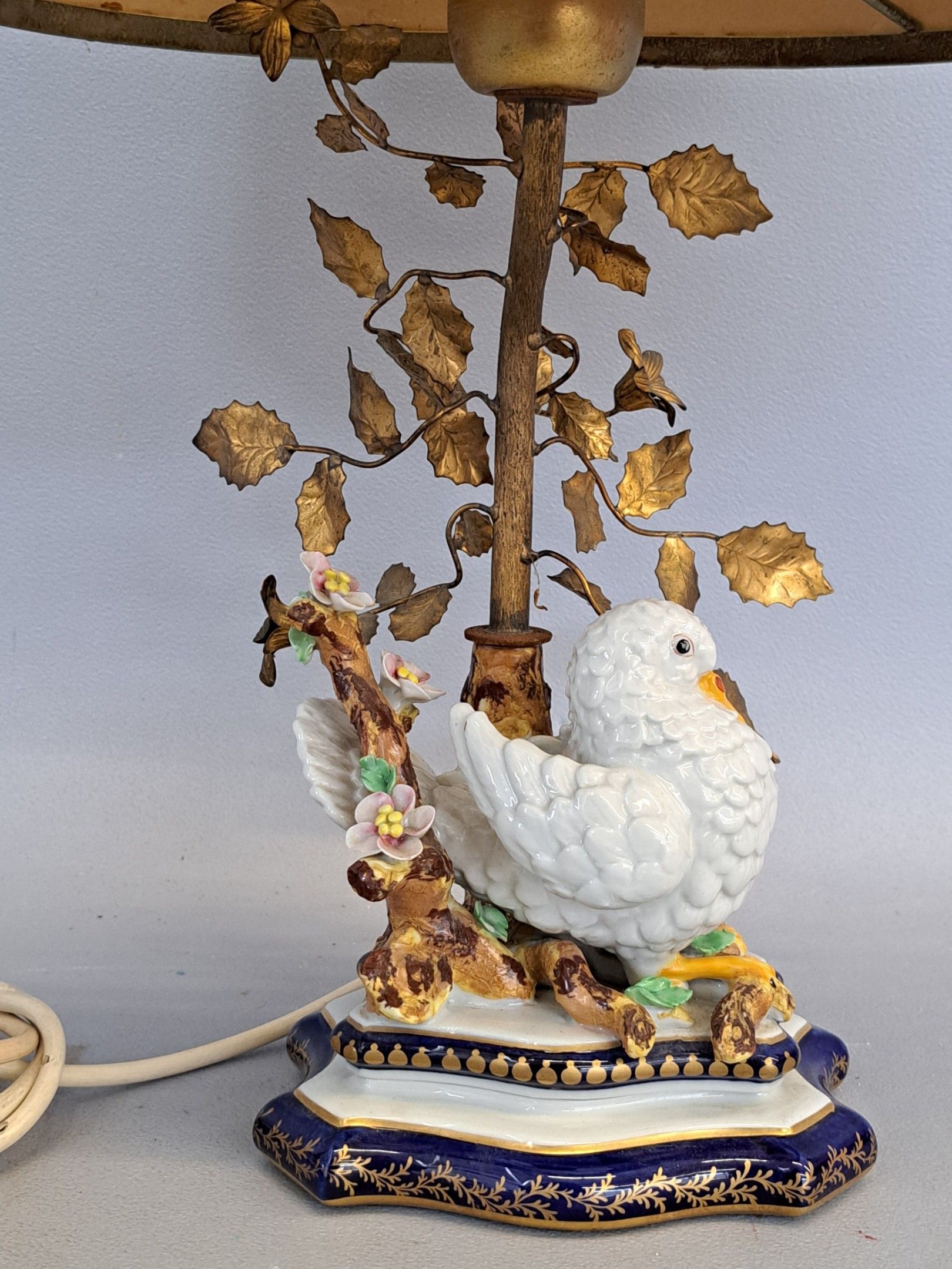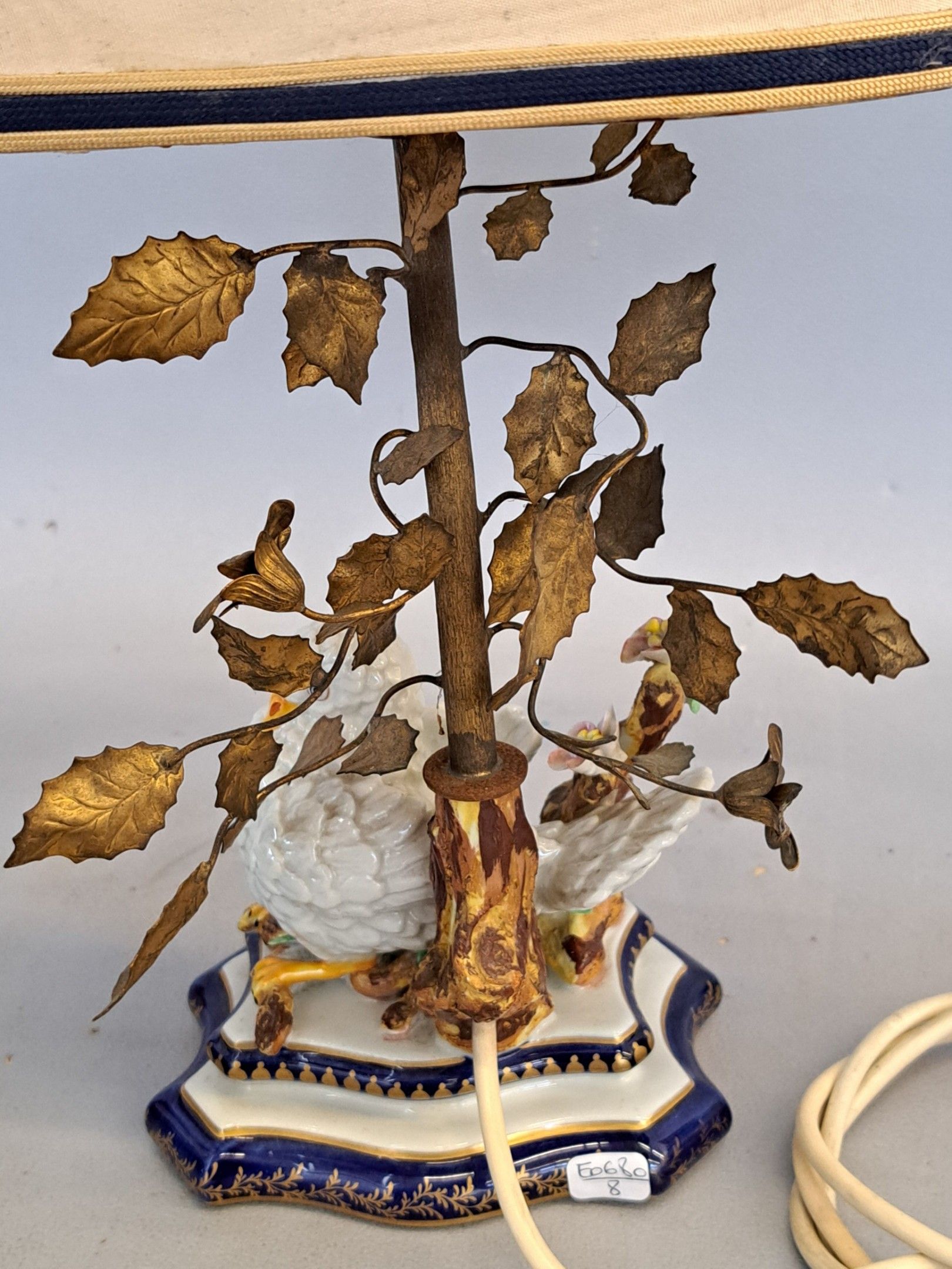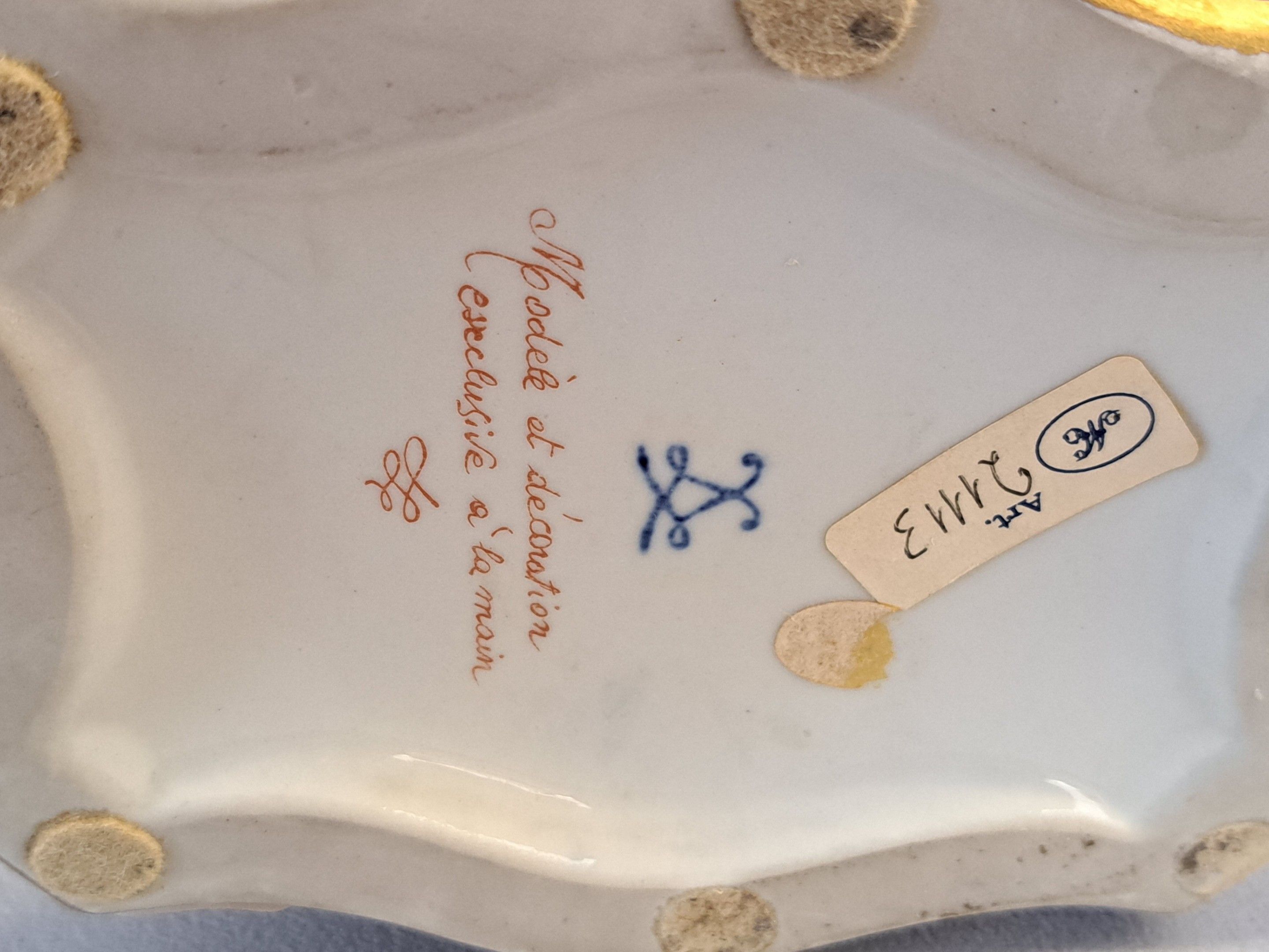 Porcelain subject with polychrome decoration, mounted as a lamp. Signed with a double interlaced L.