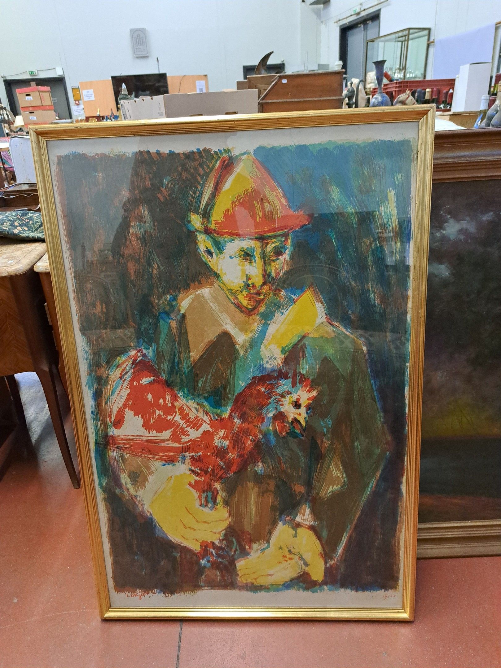 Bernard LORJOU (1908-1986) The harlequin with the cockerel