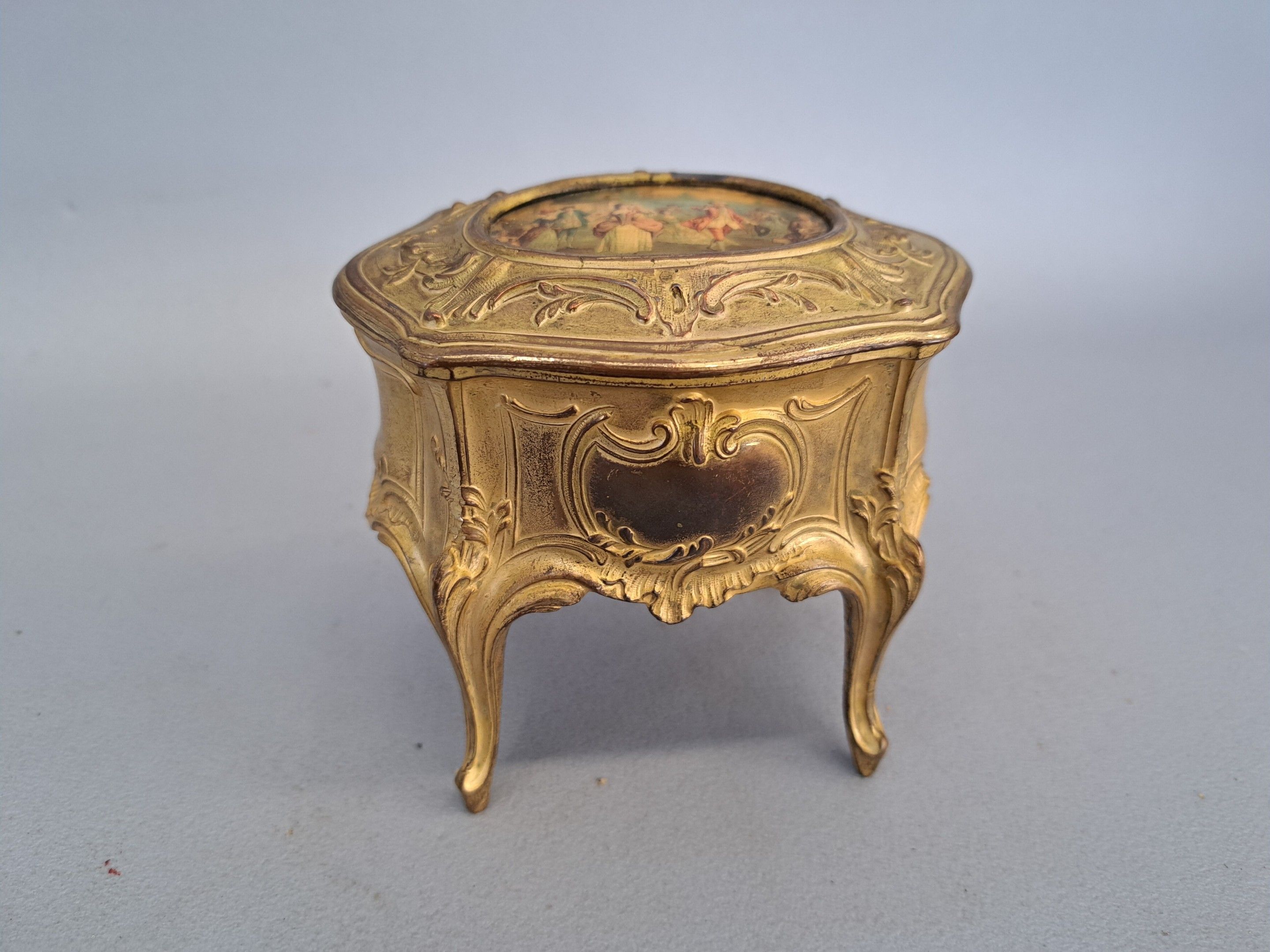 Gilt bronze jewellery box, on 4 curved legs, decorated with …
