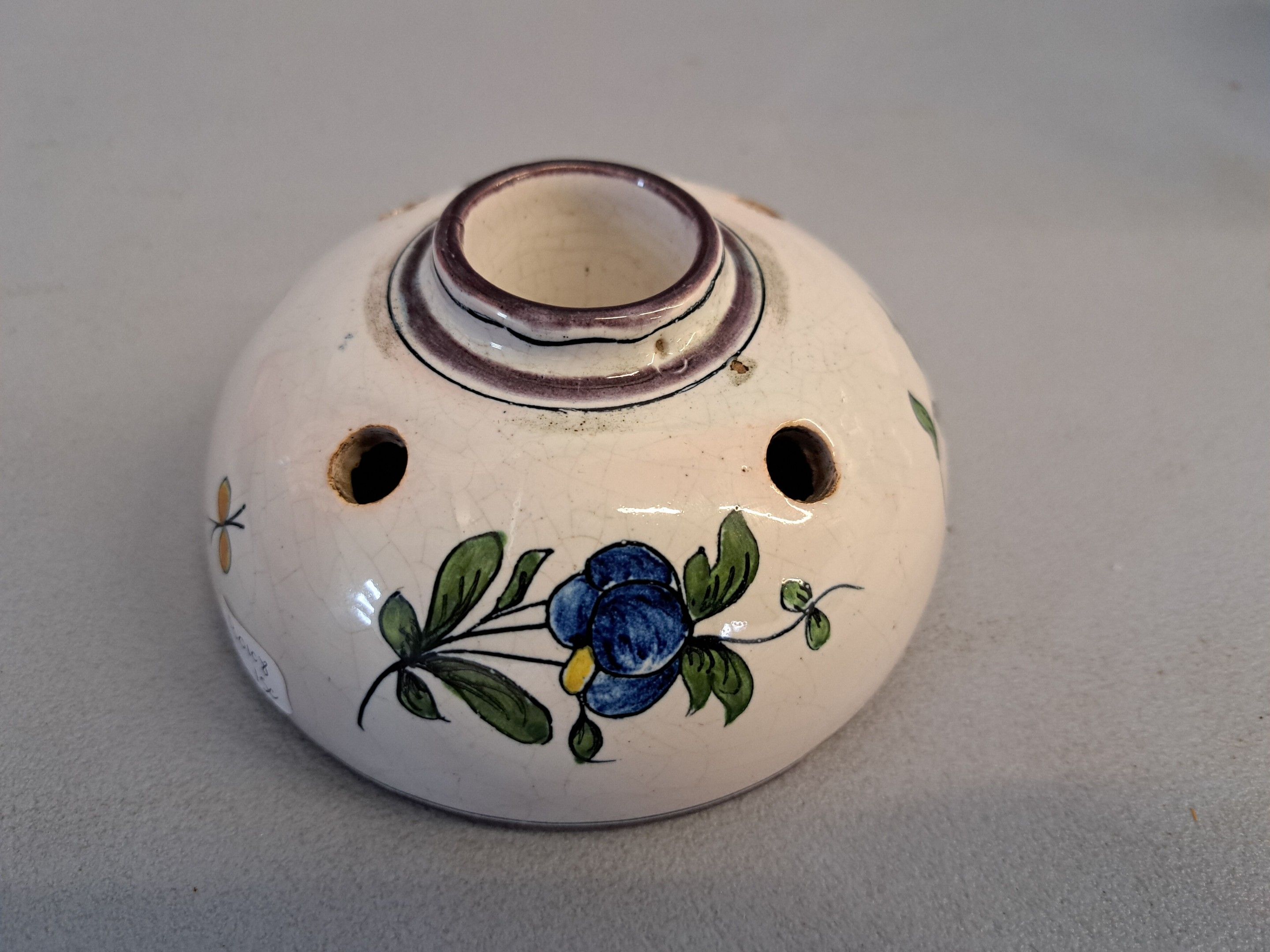 Round earthenware inkwell with floral decoration, D. 12 cm.