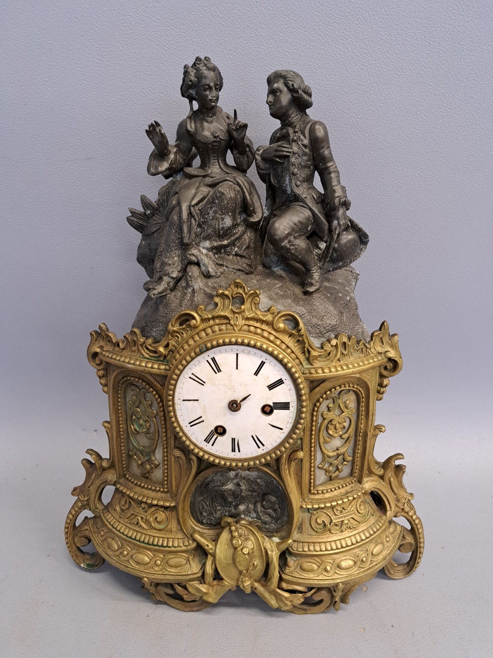 Regula clock decorated with a romantic scene, as is. Late 19th century. Height 45 cm.