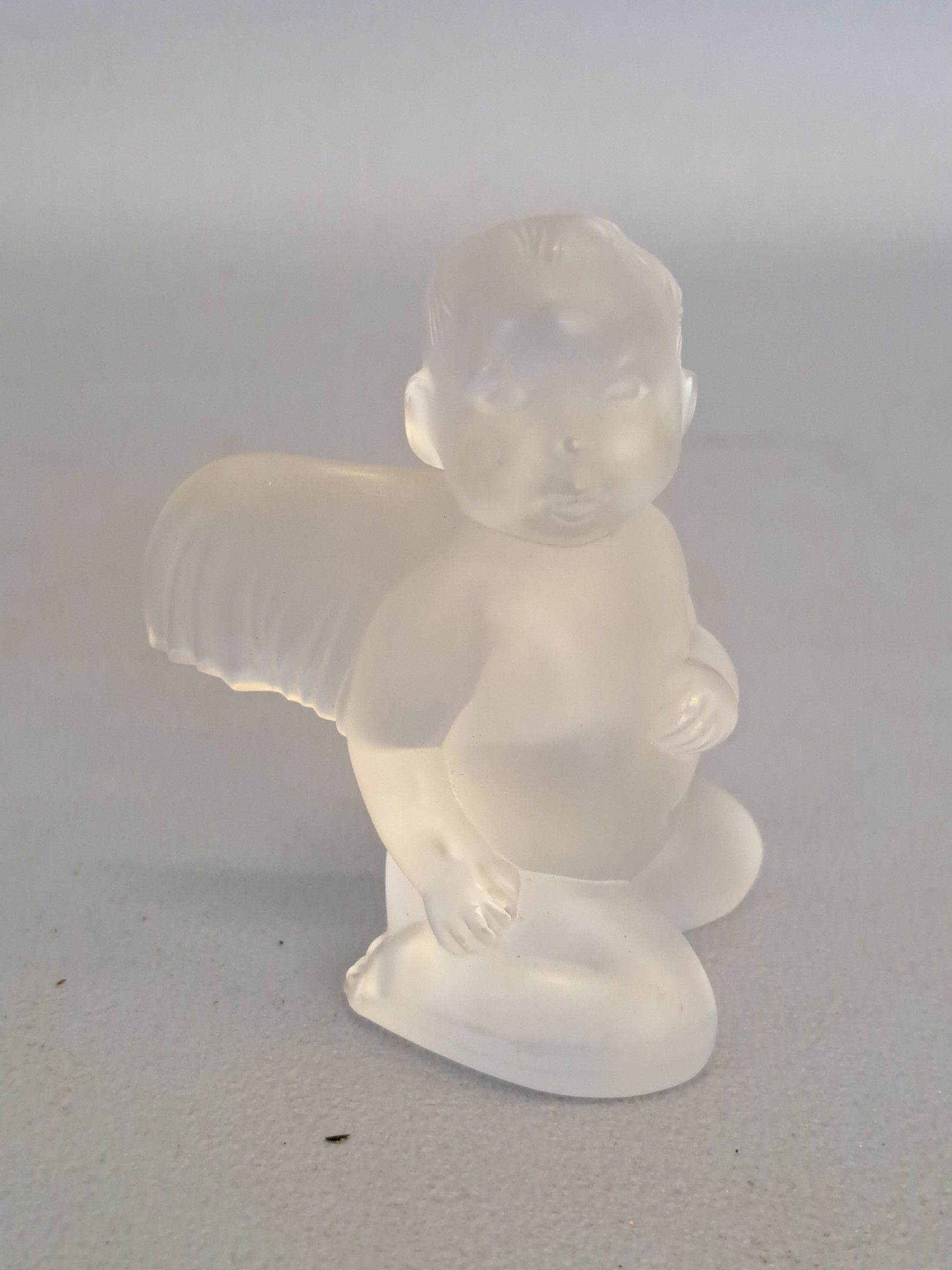Lalique France, cherub in frosted crystal, H. 8.5 cm.