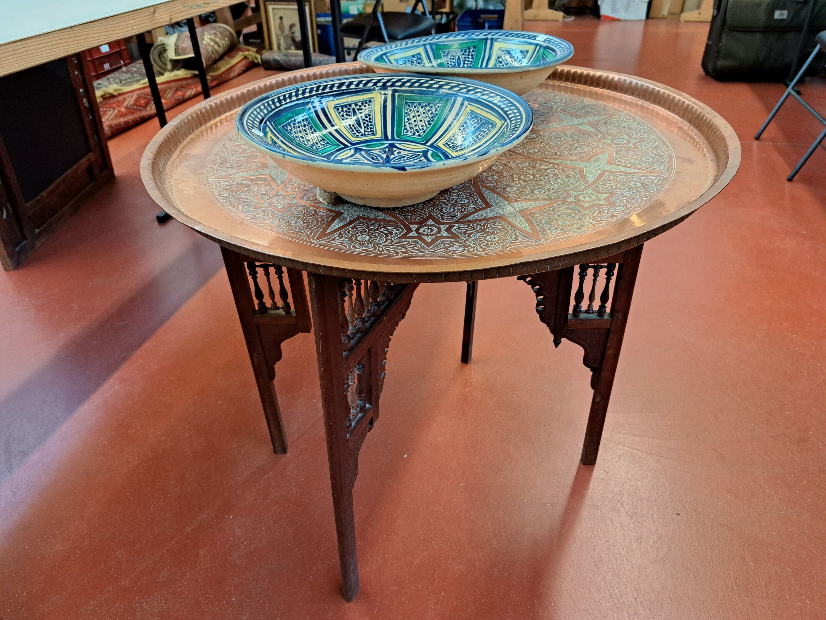 Morocco 20th century Large copper tray with wooden base (Dia…