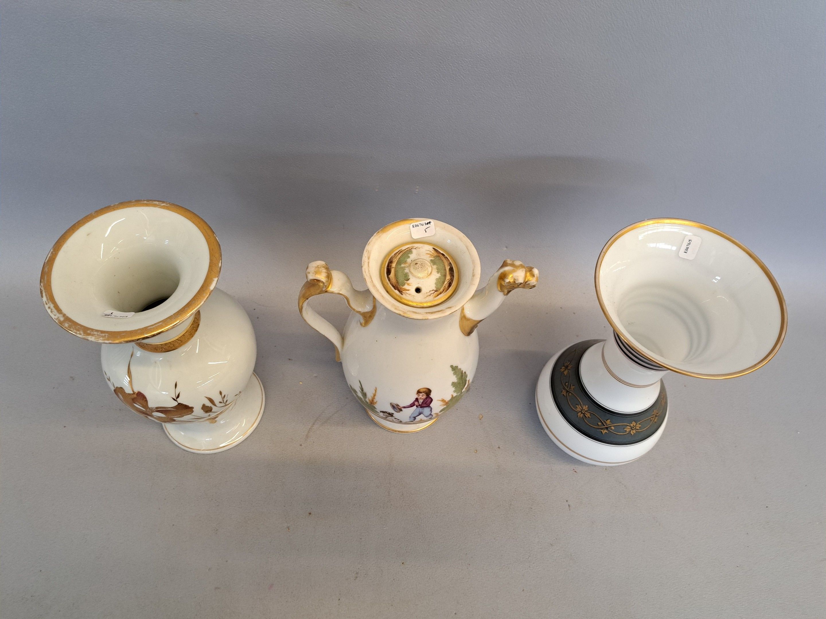 Paris porcelain coffee pot. A porcelain baluster vase and an…