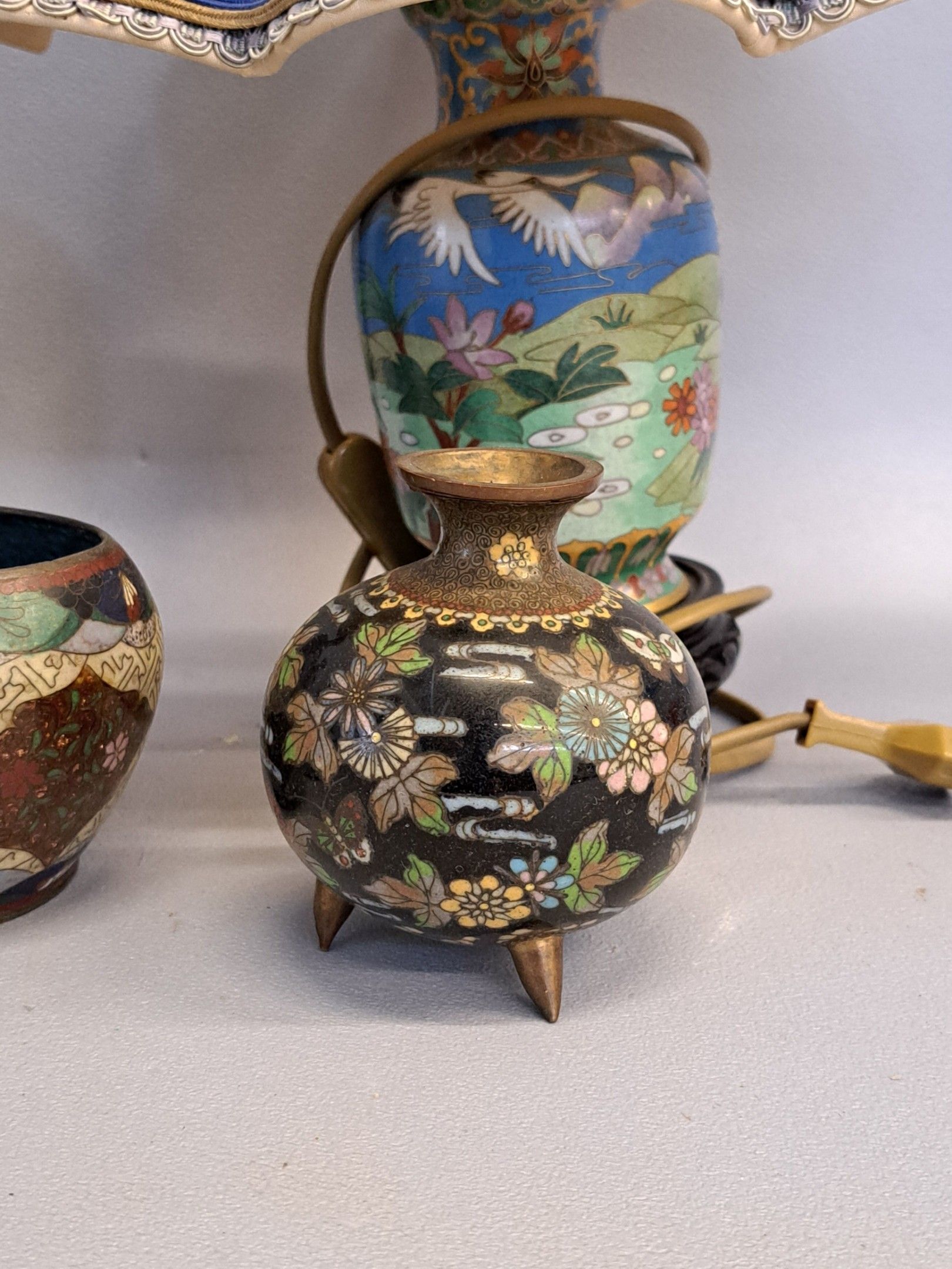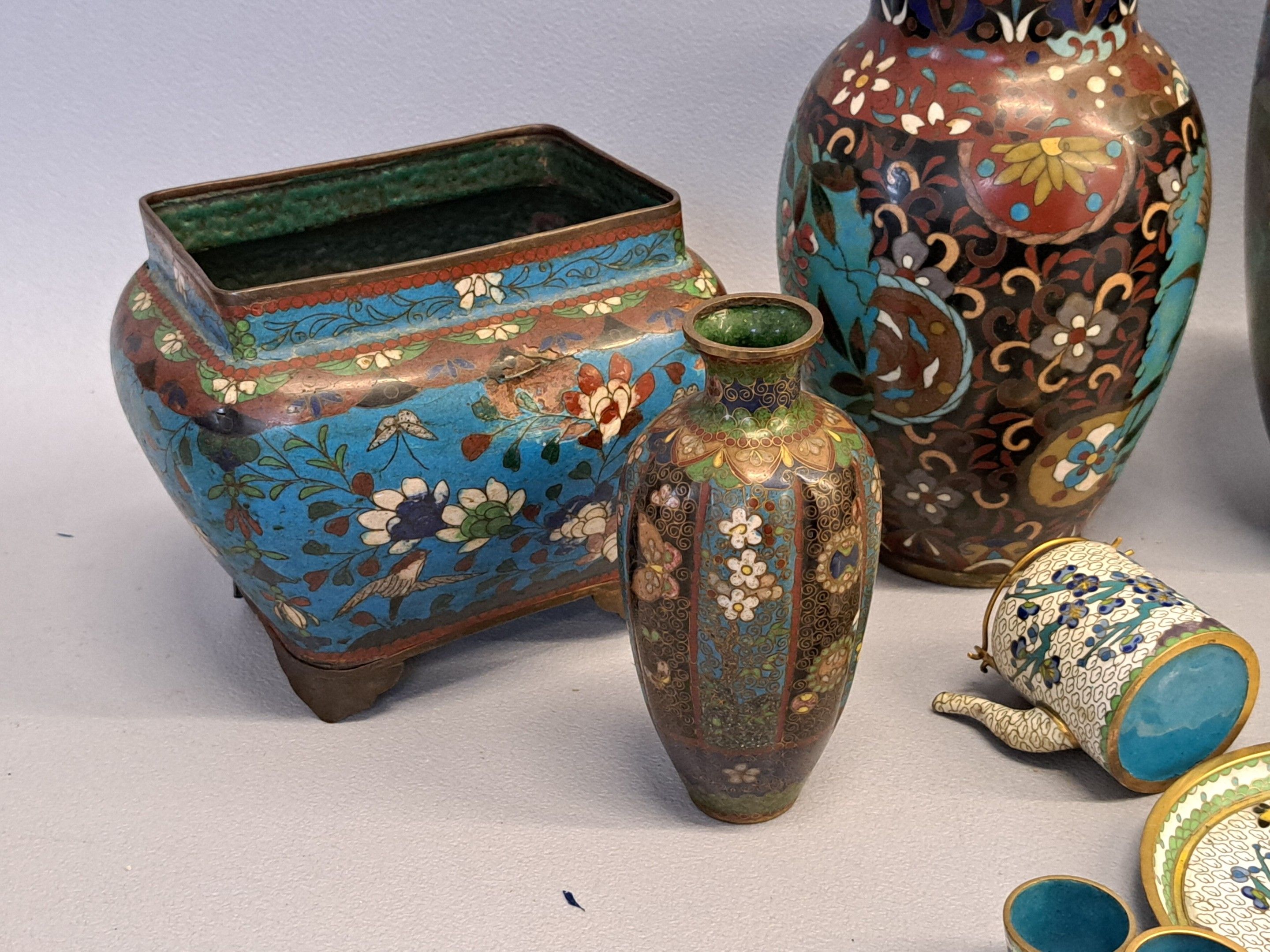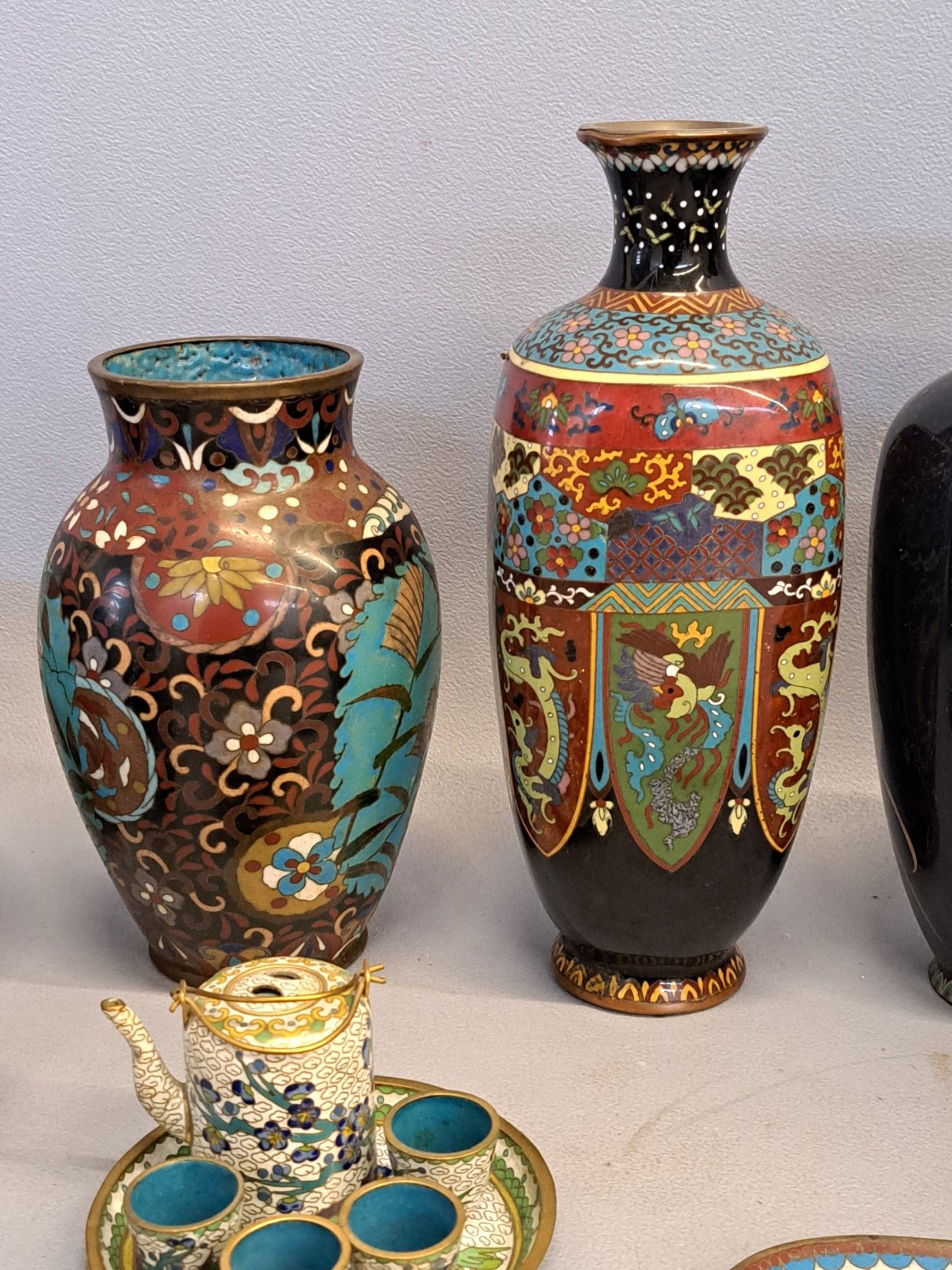 Set of cloisonné including vases, incense burner (knocks), dinette.