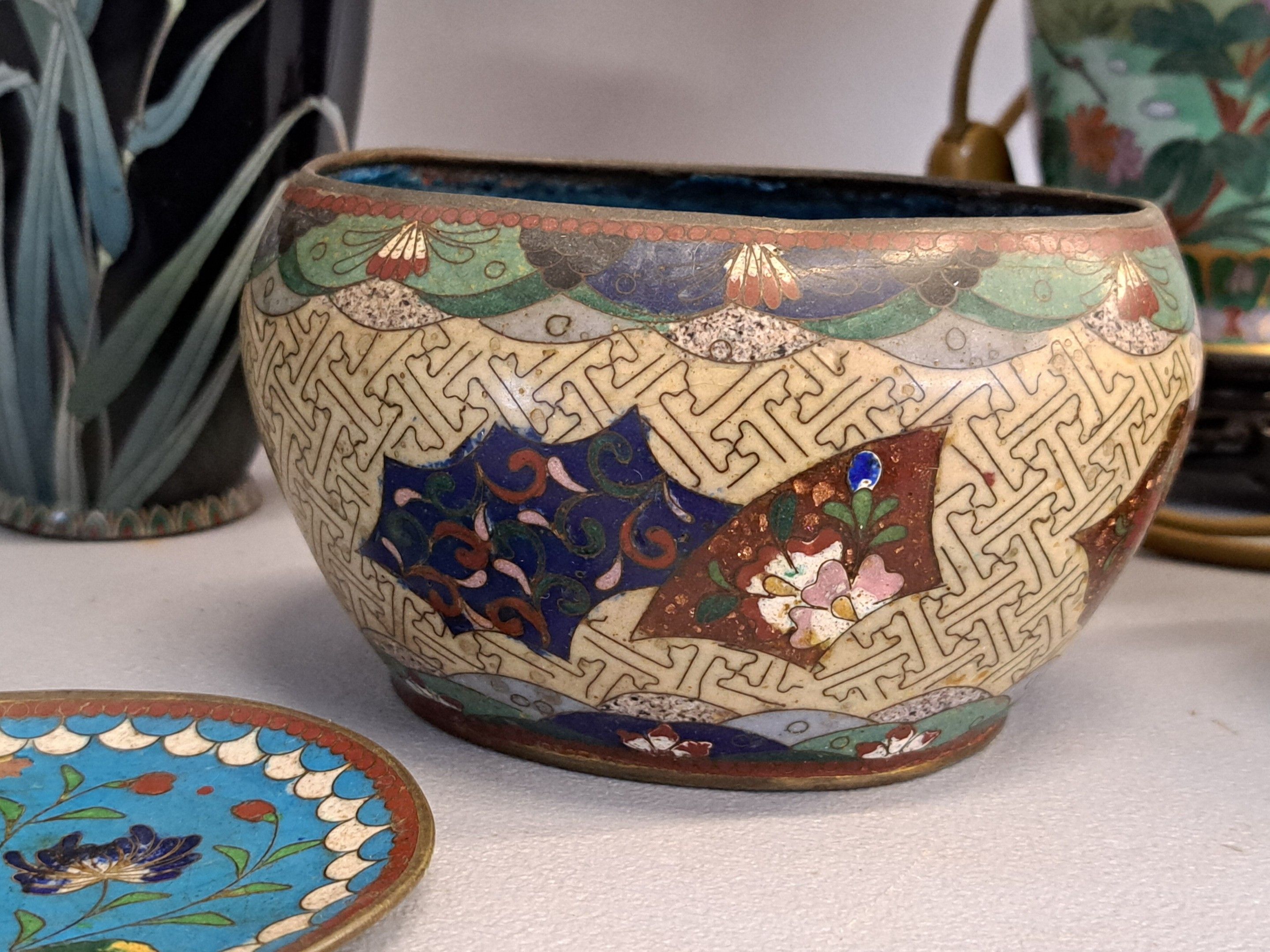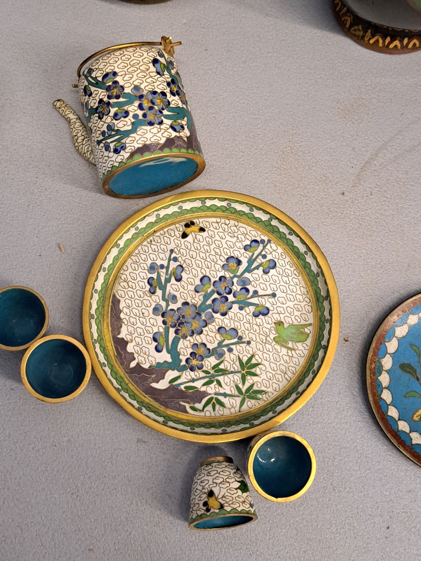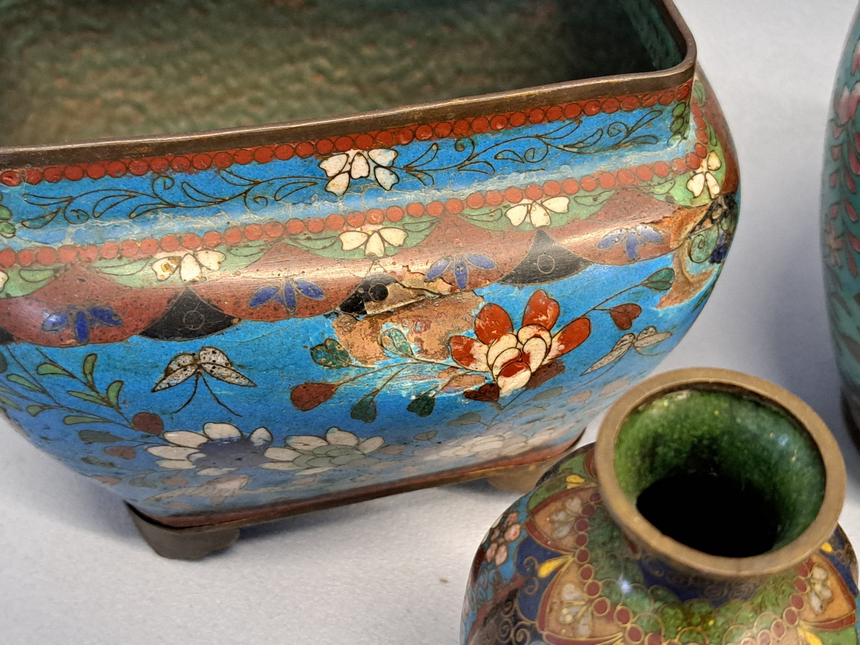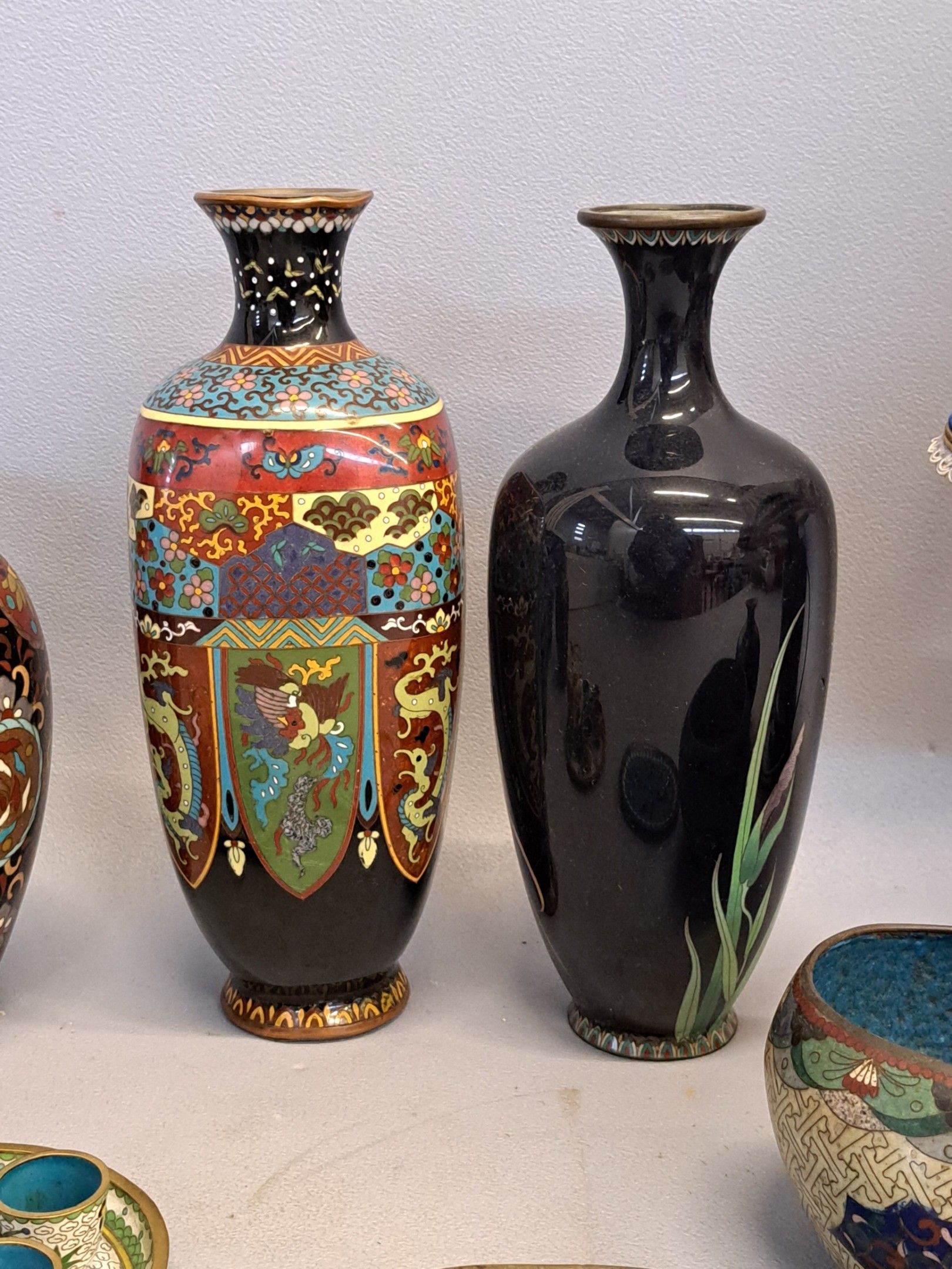 Set of cloisonné including vases, incense burner (knocks), dinette.