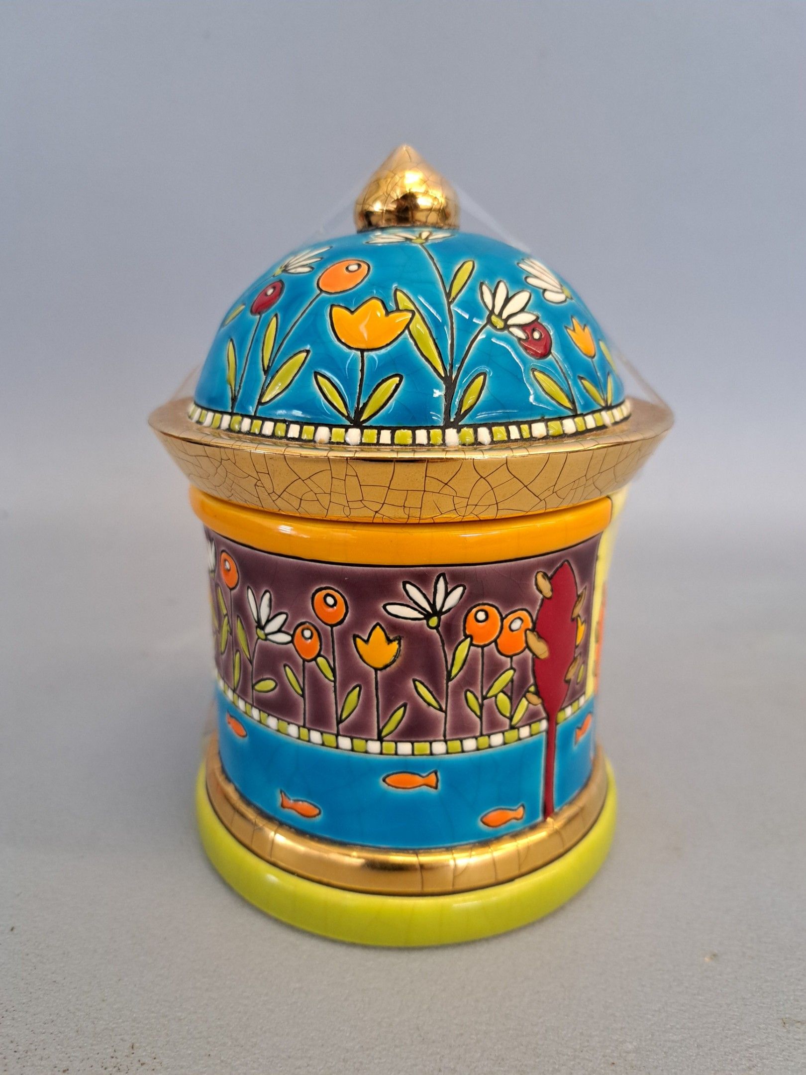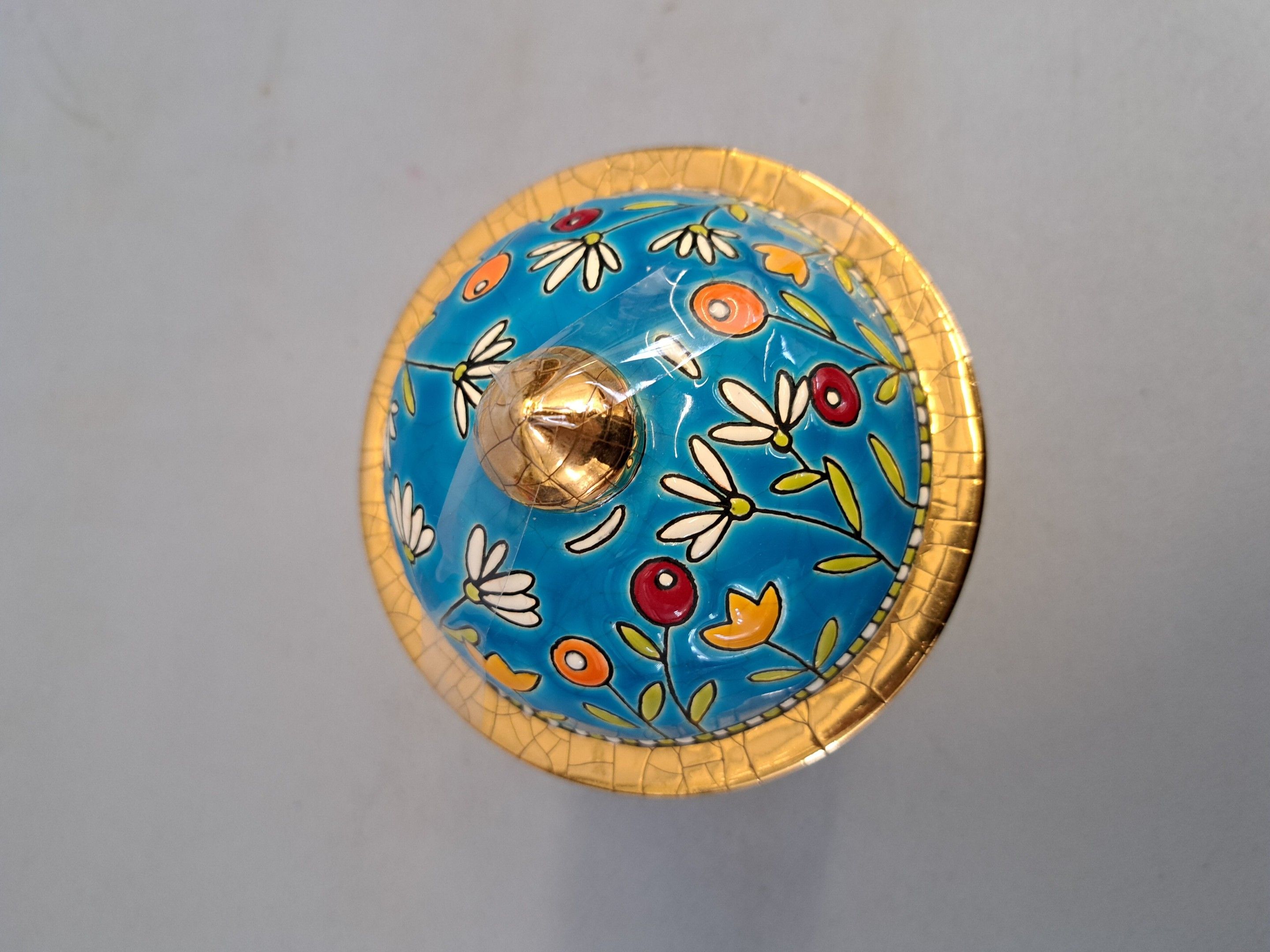 Sandra BREGIERAS for Longwy Kiosk box in enamel on a blue ba…