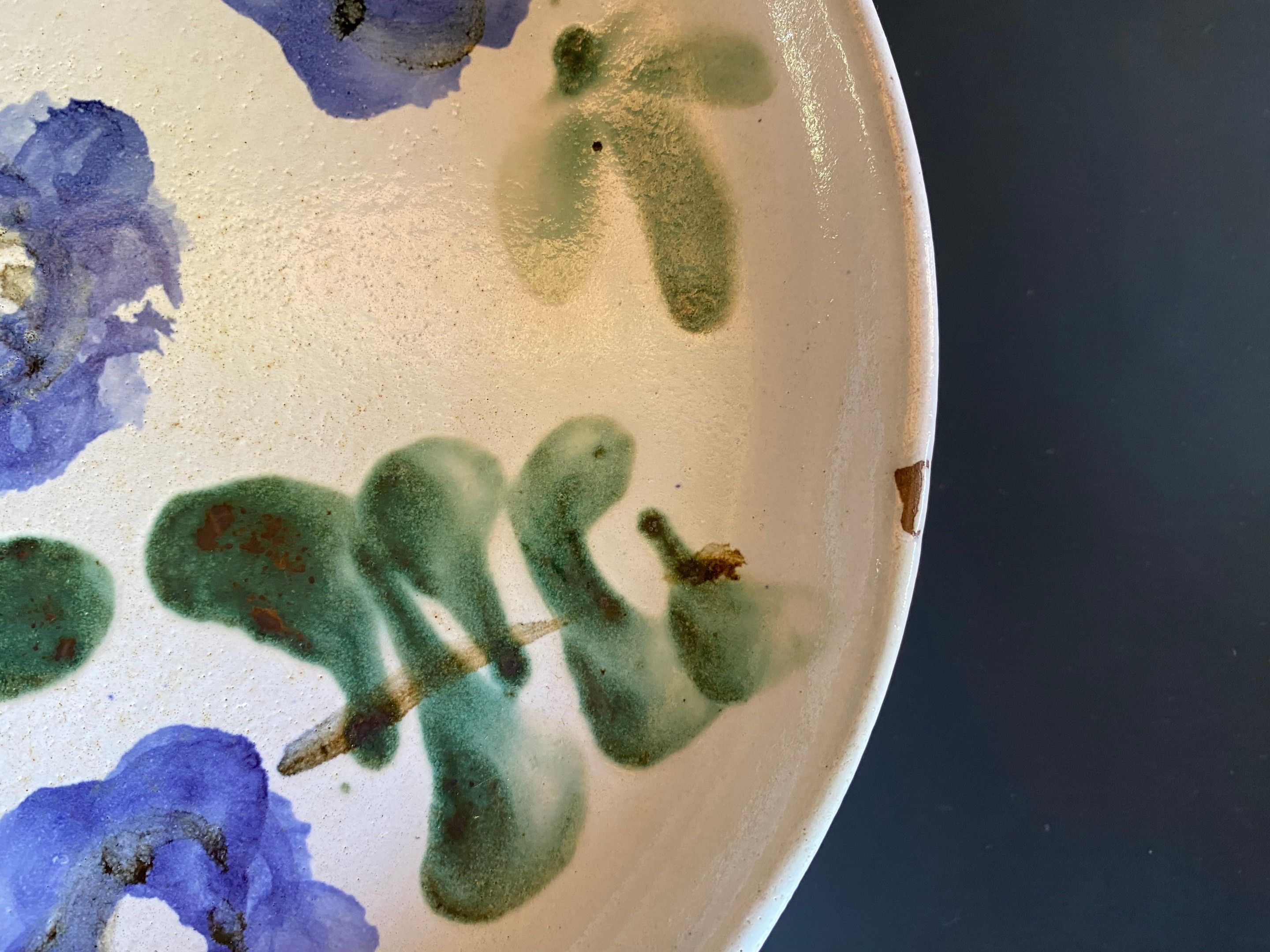 Thiry Vallauris set of 2 glazed terracotta dishes with floral motifs, diameter 31 cm, chips