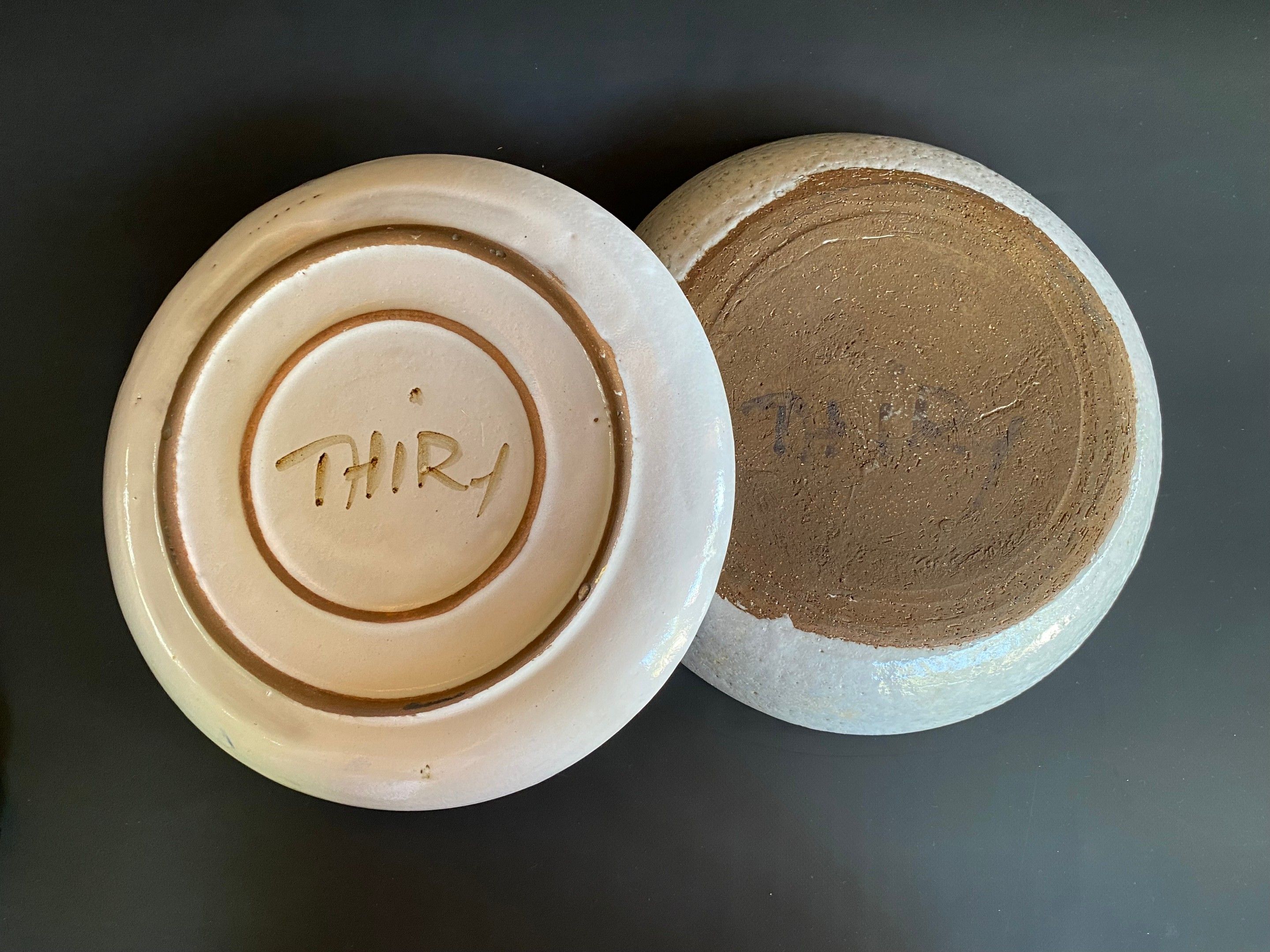 Thiry Vallauris set of 2 glazed terracotta dishes with flora…