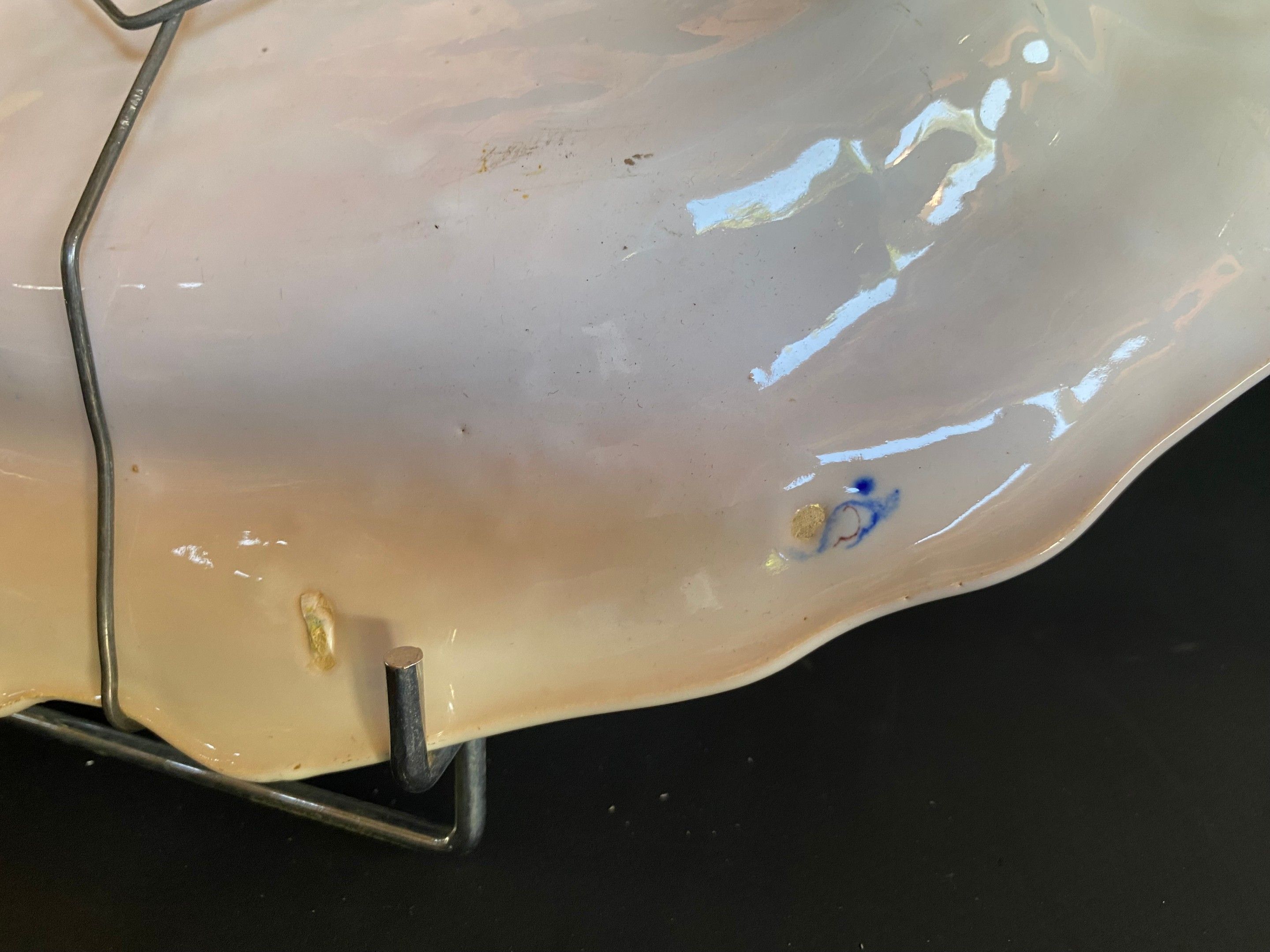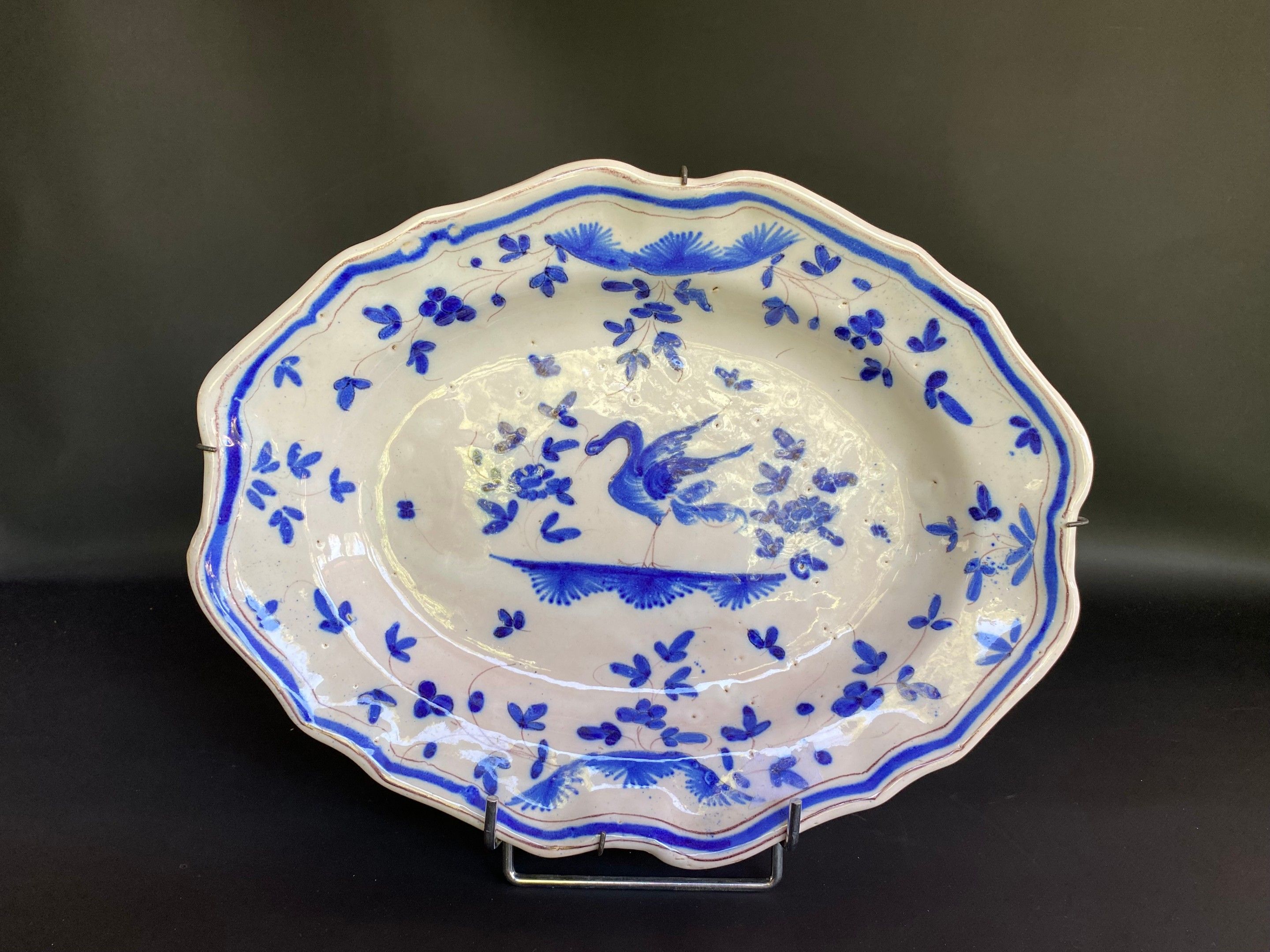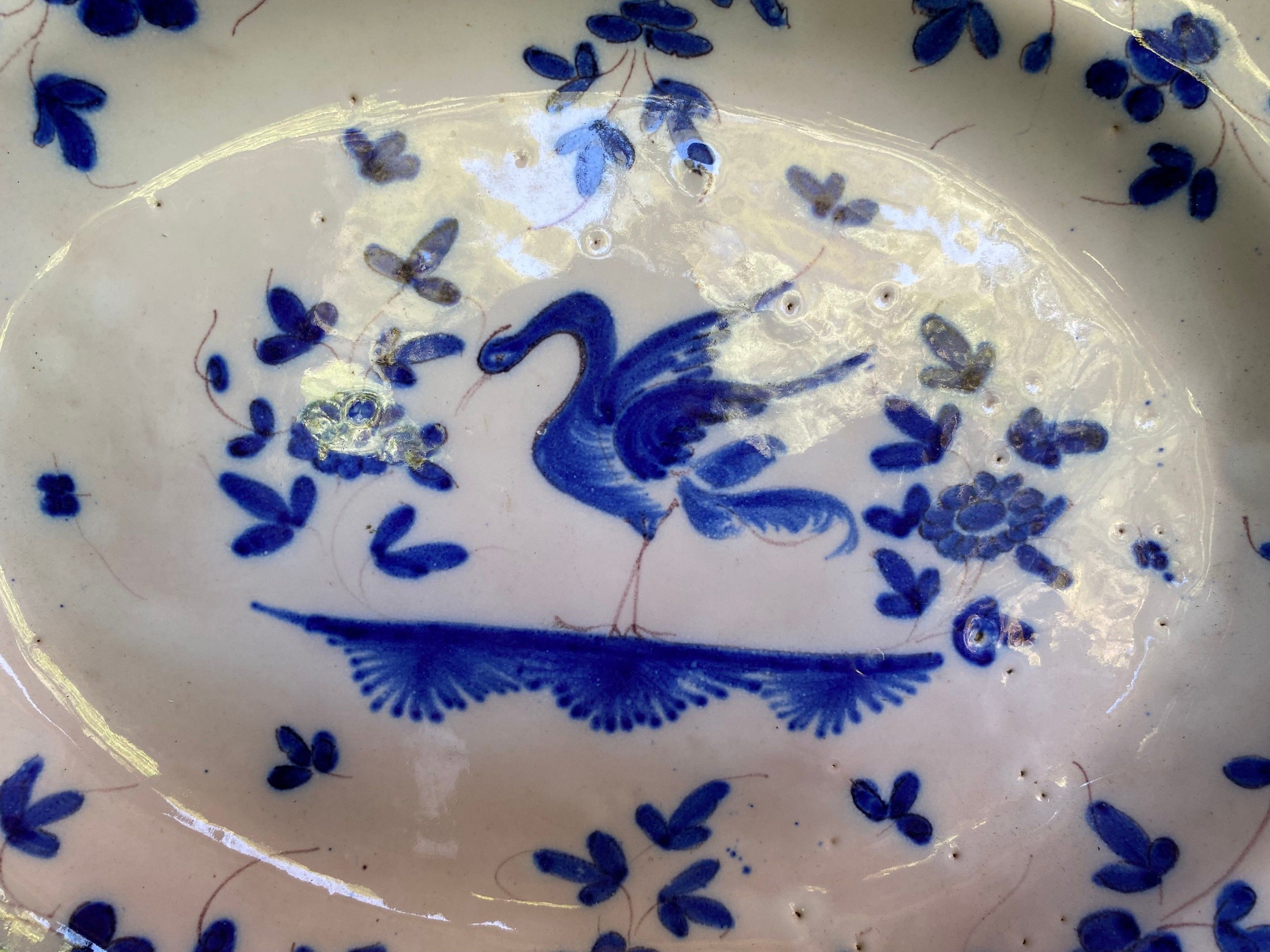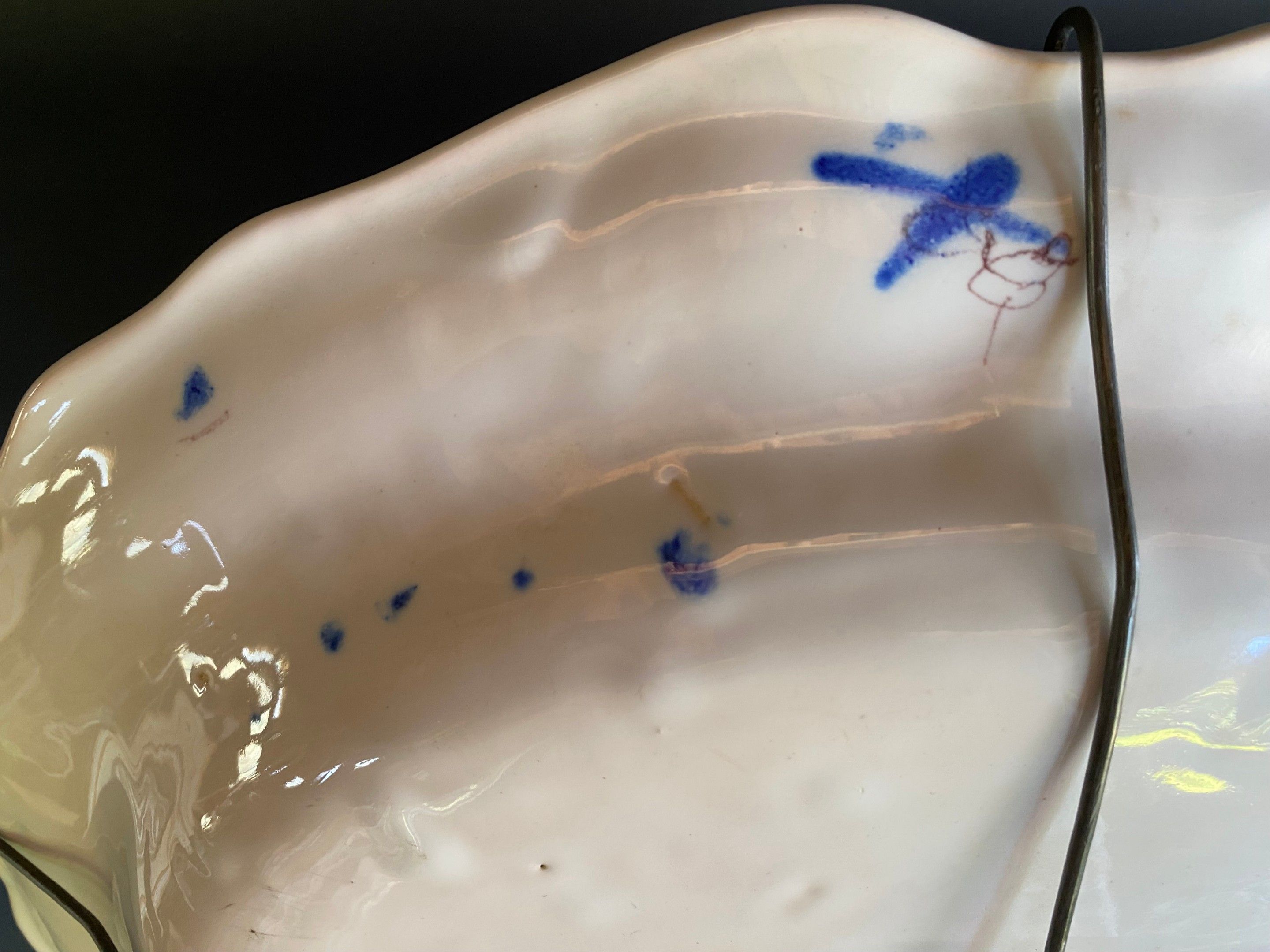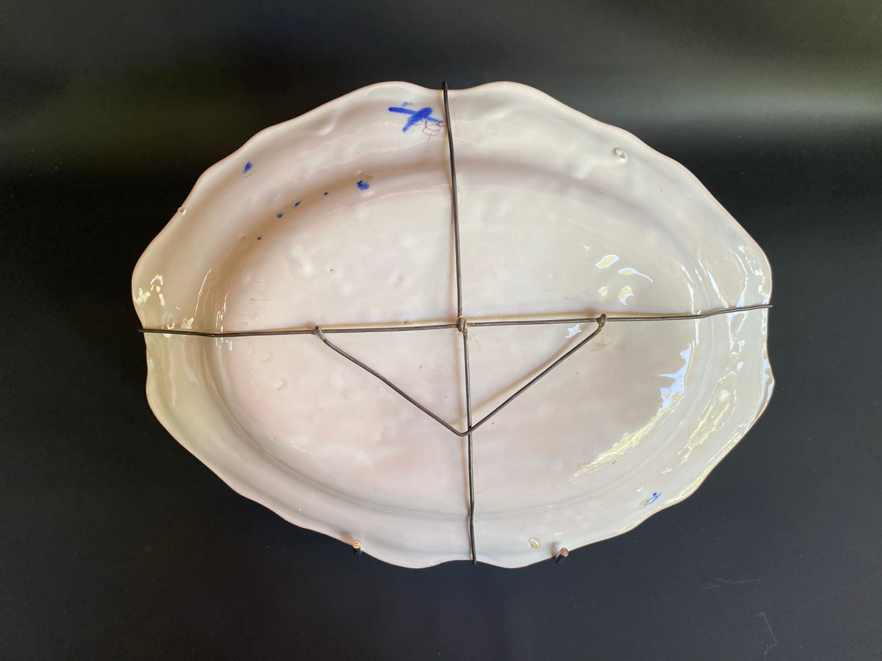Earthenware dish called "cul noir" decorated with flowering baskets ( 46 X 34 X 5 cm)