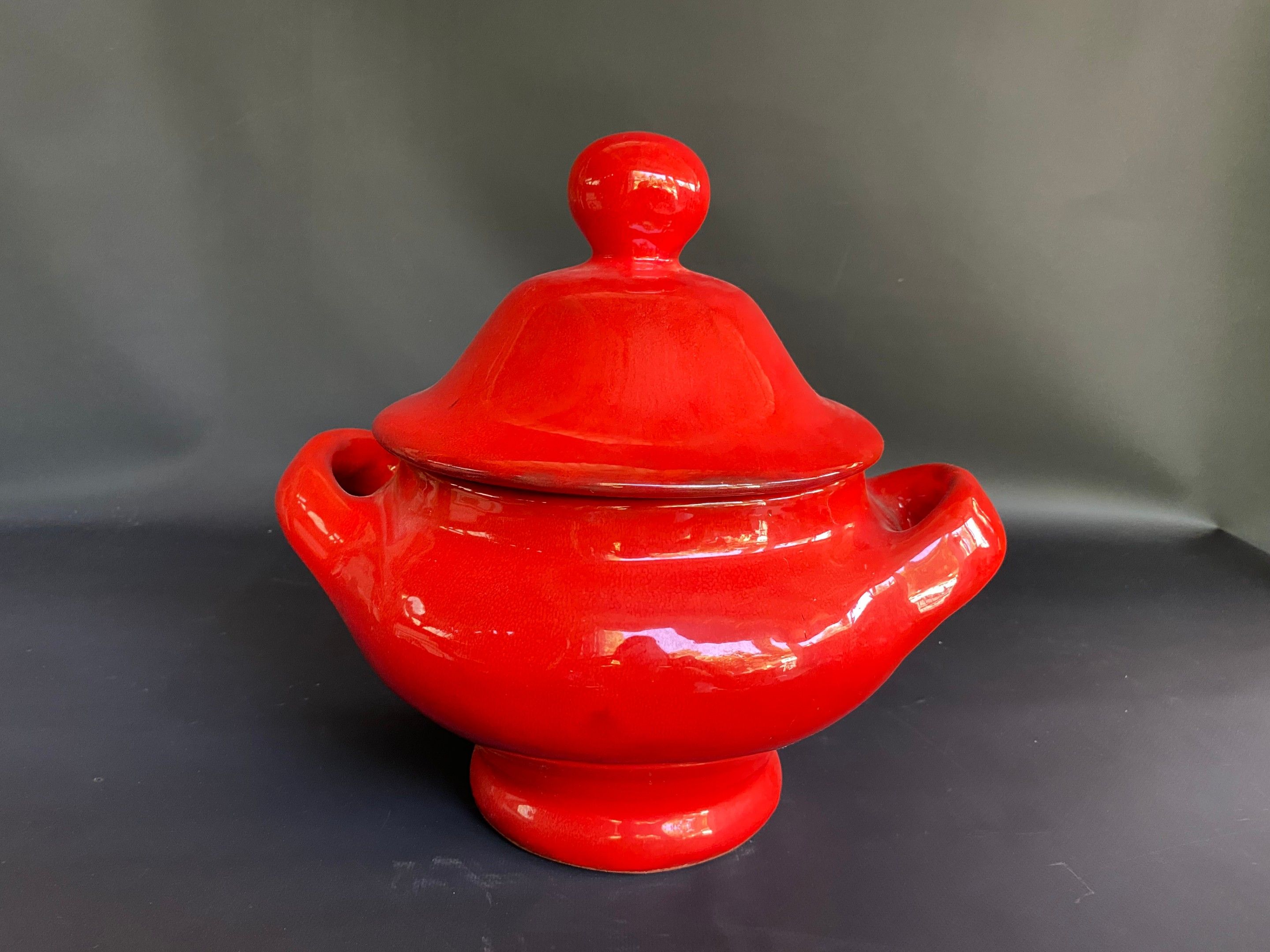 Large tureen in red glazed terracotta H 25 x 28 cm
