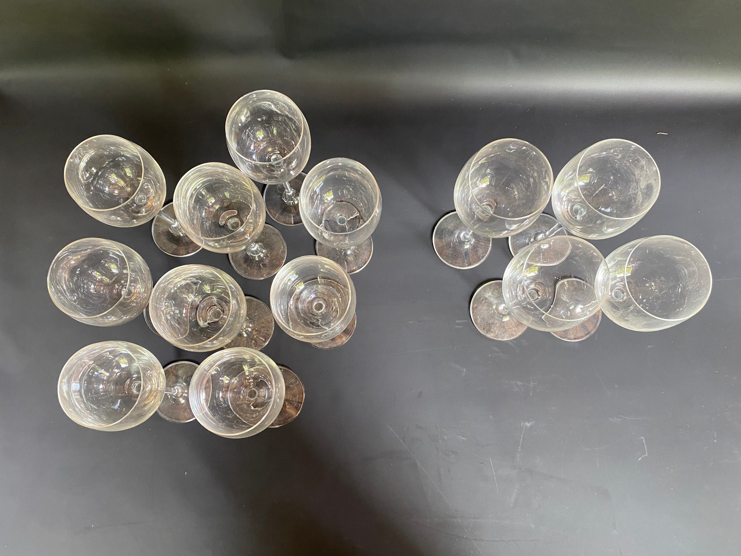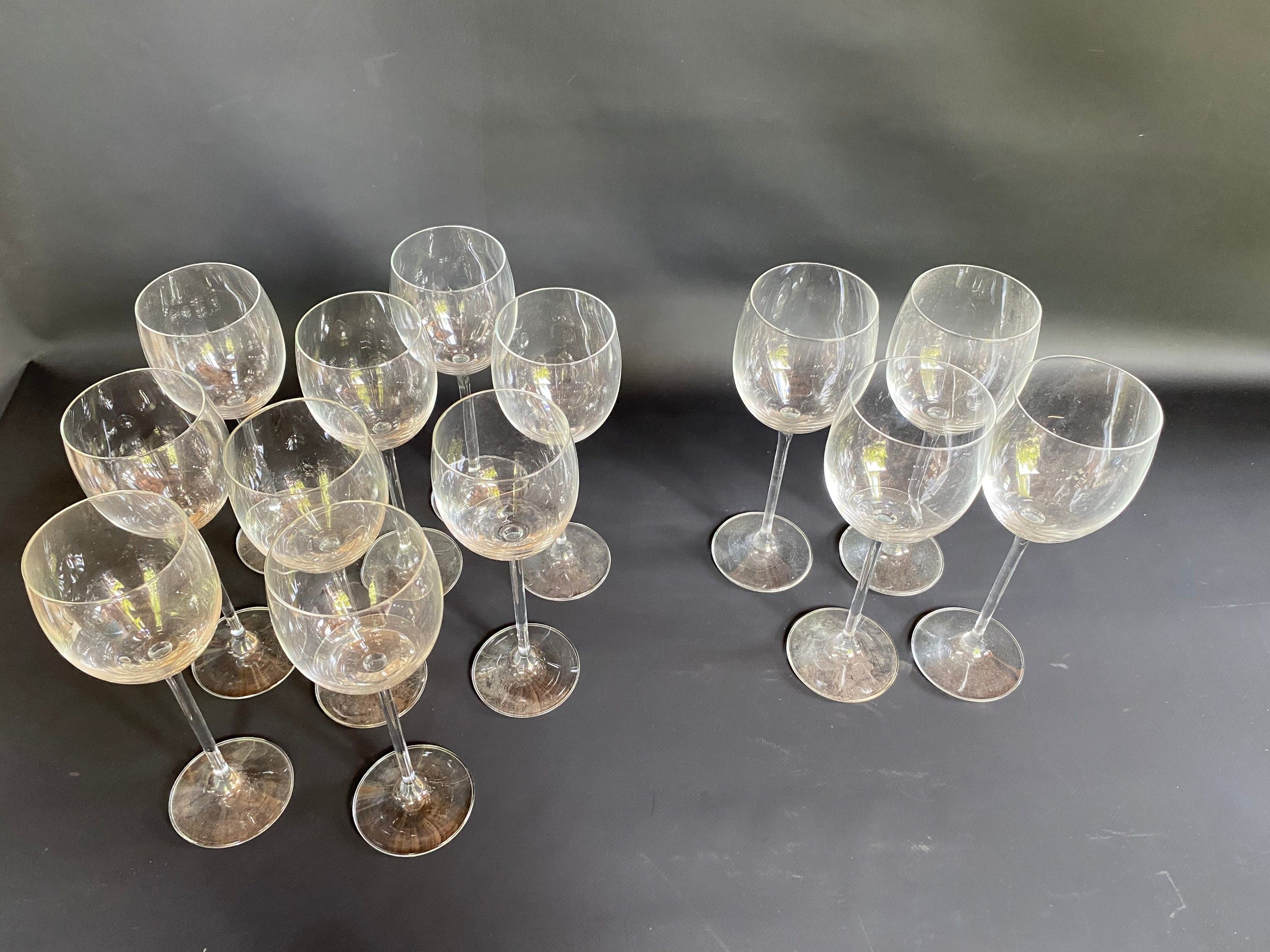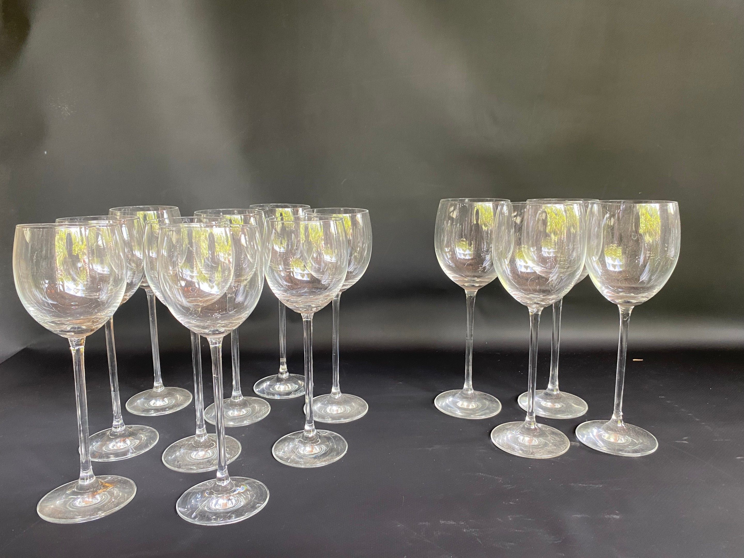 Set of 13 stemmed glasses ( 9 glasses H 21 cm ) and 4 glasses H 22 cm )