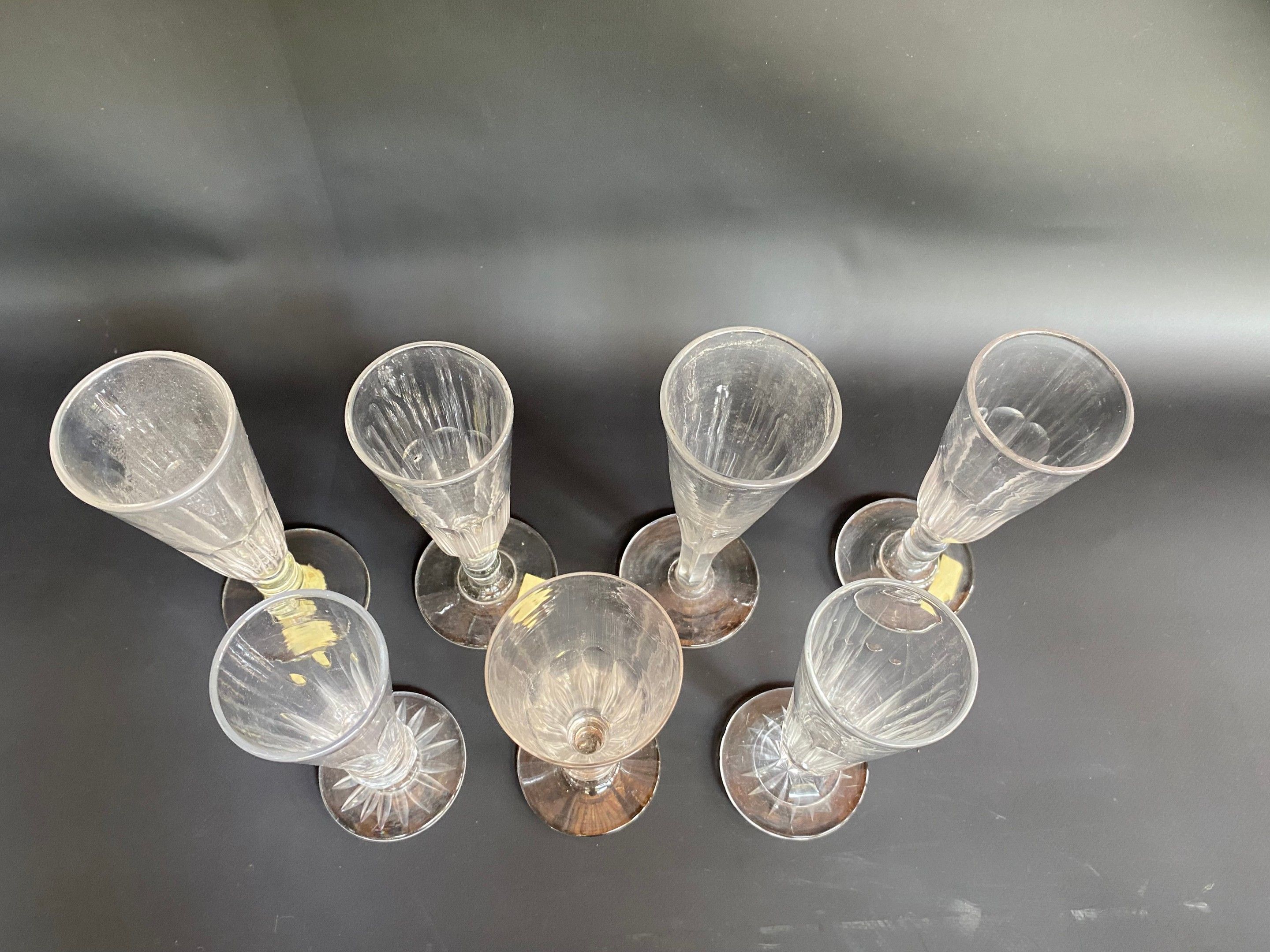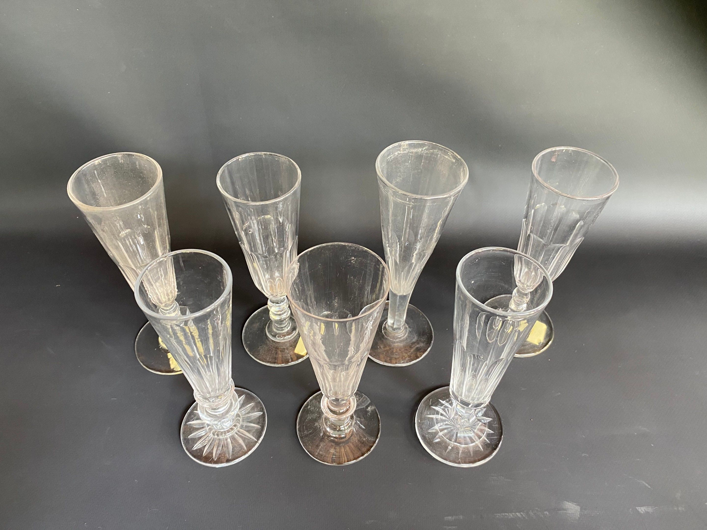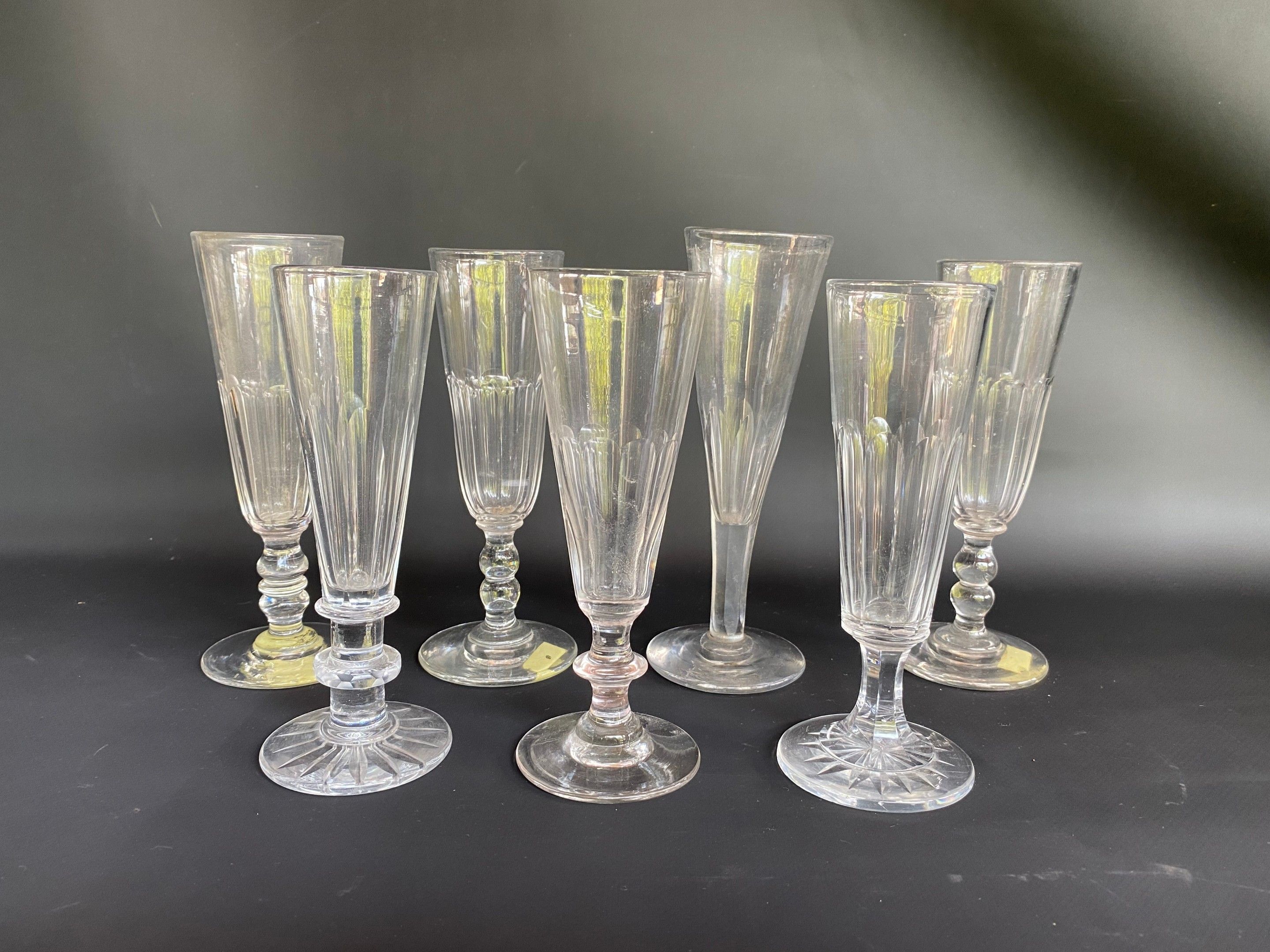Suite of 7 champagne flutes (4 in crystal) About 1900 , H fr…