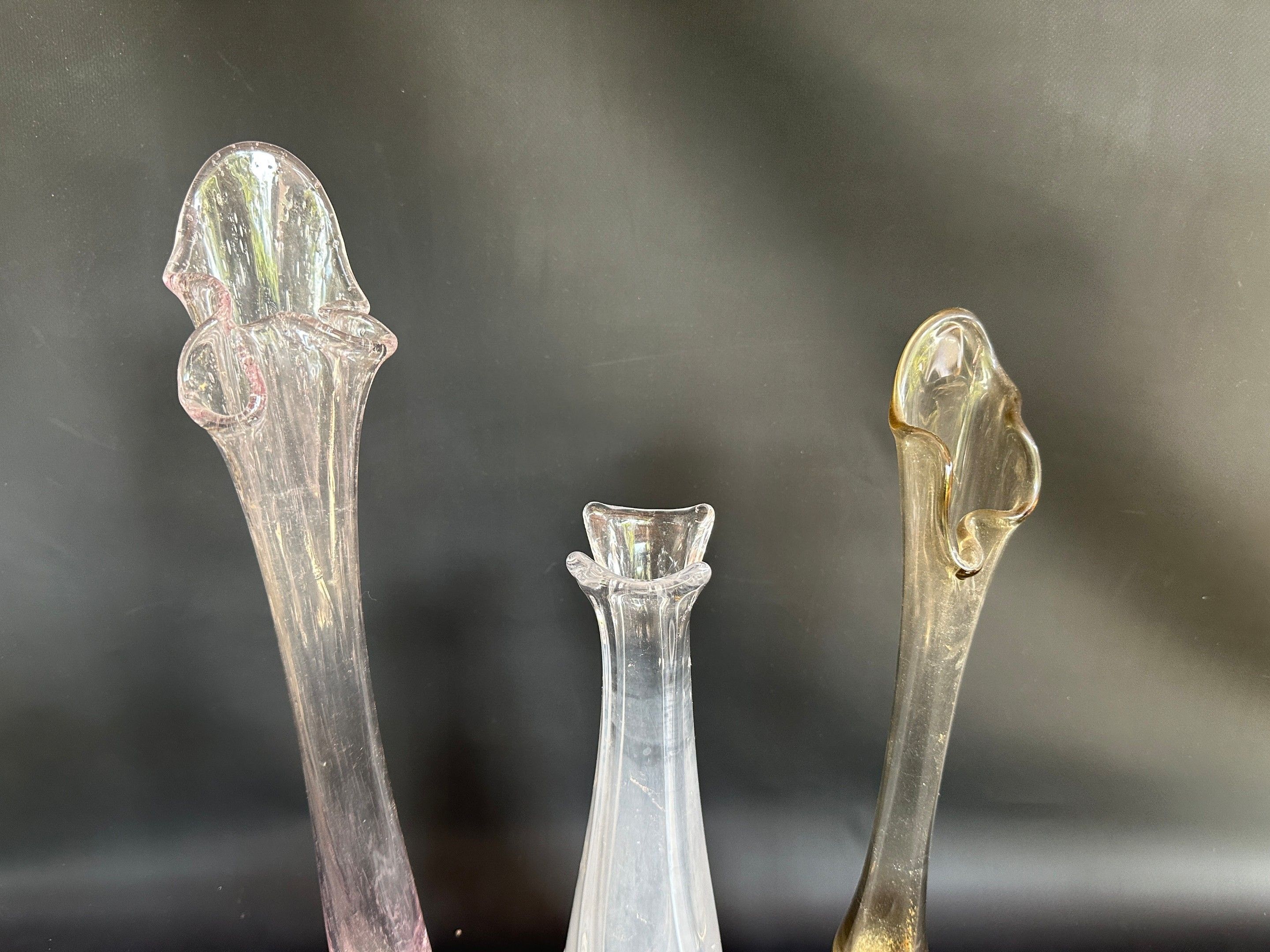 Set of 3 soliflores , one DAUM in crystal ( 32 cm ) and two Biot of 41 and 48cm )