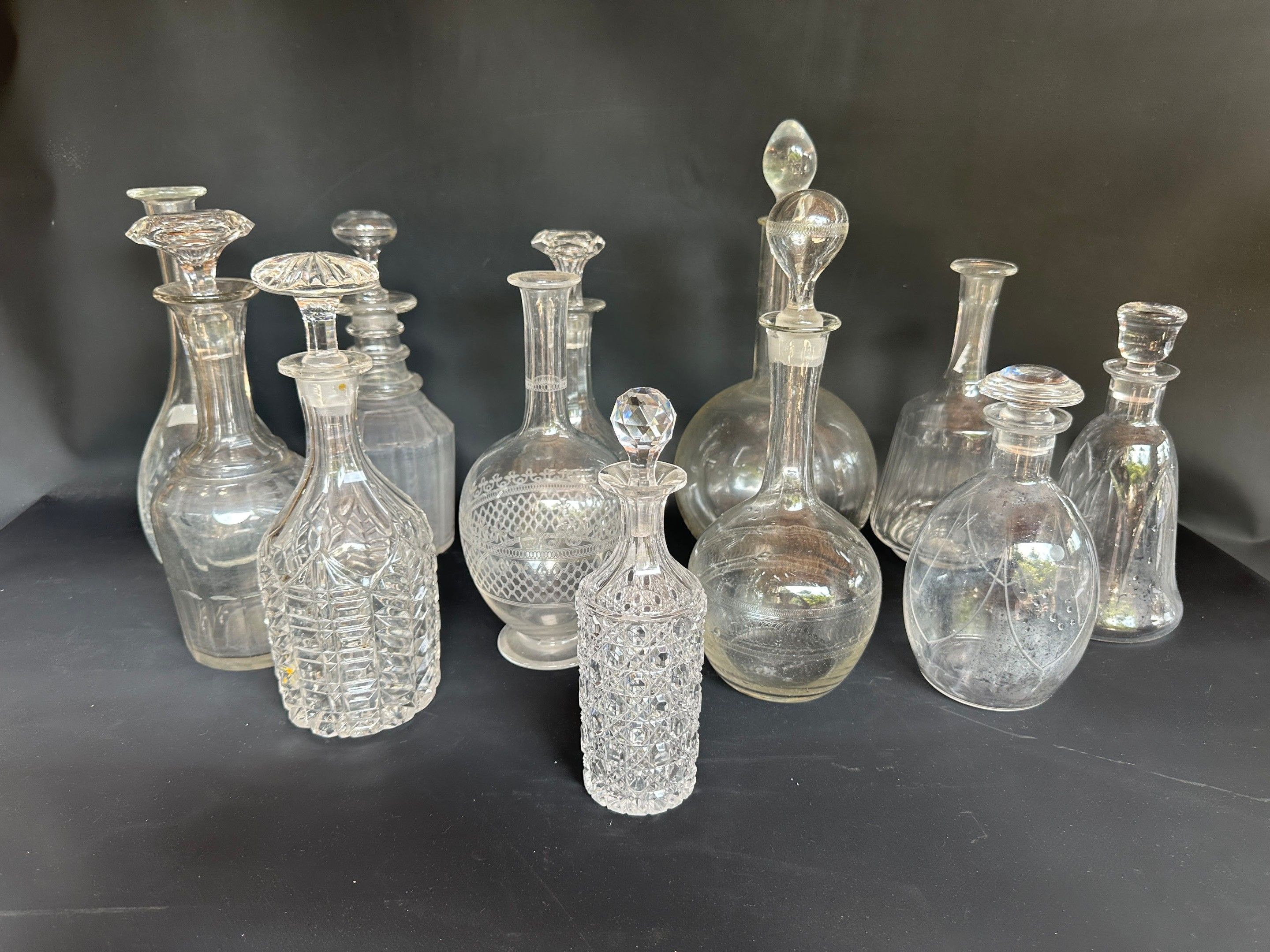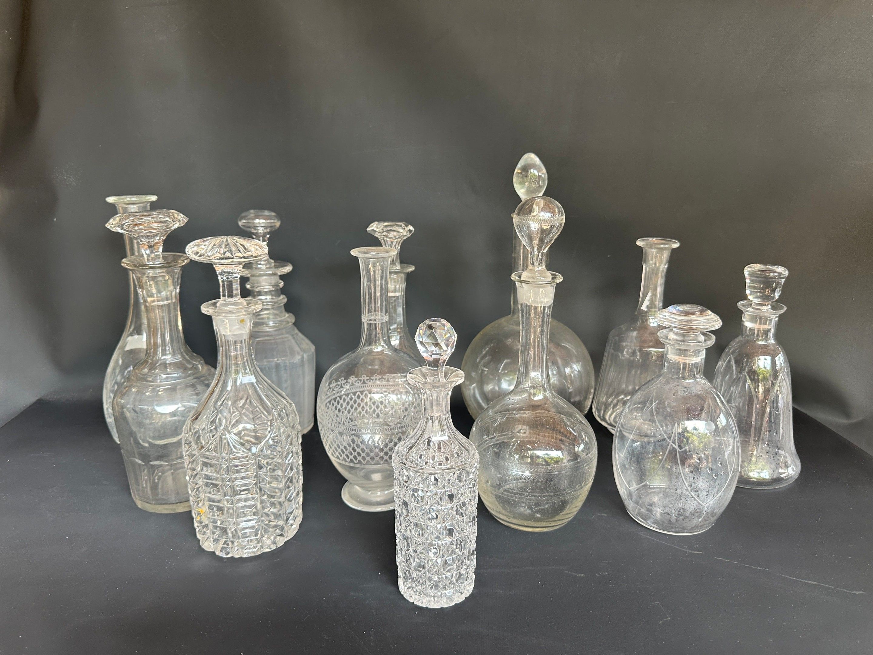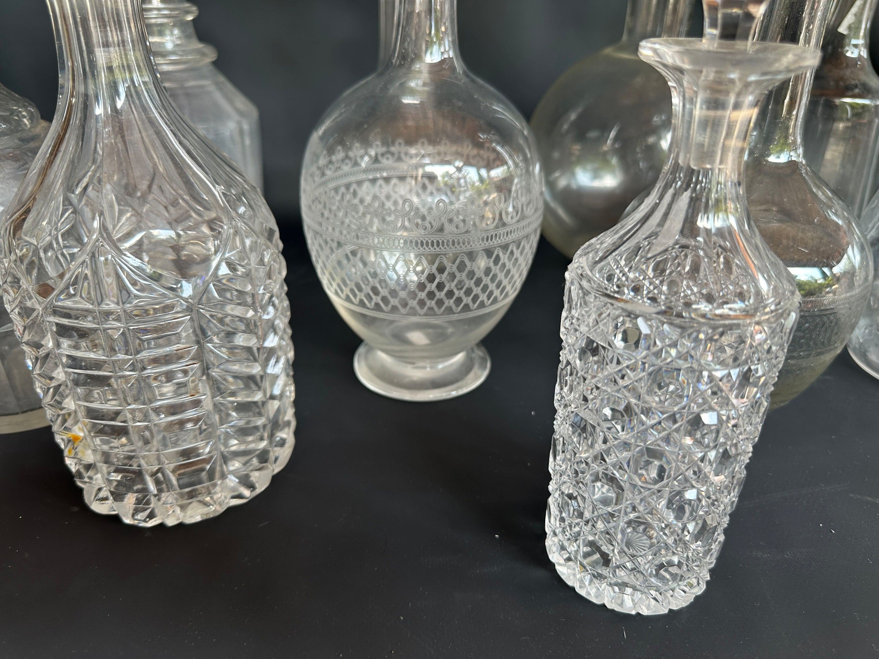 Important lot of crystal carafes and decanters and glasses missing 3 stoppers height from 21 to 34 cm