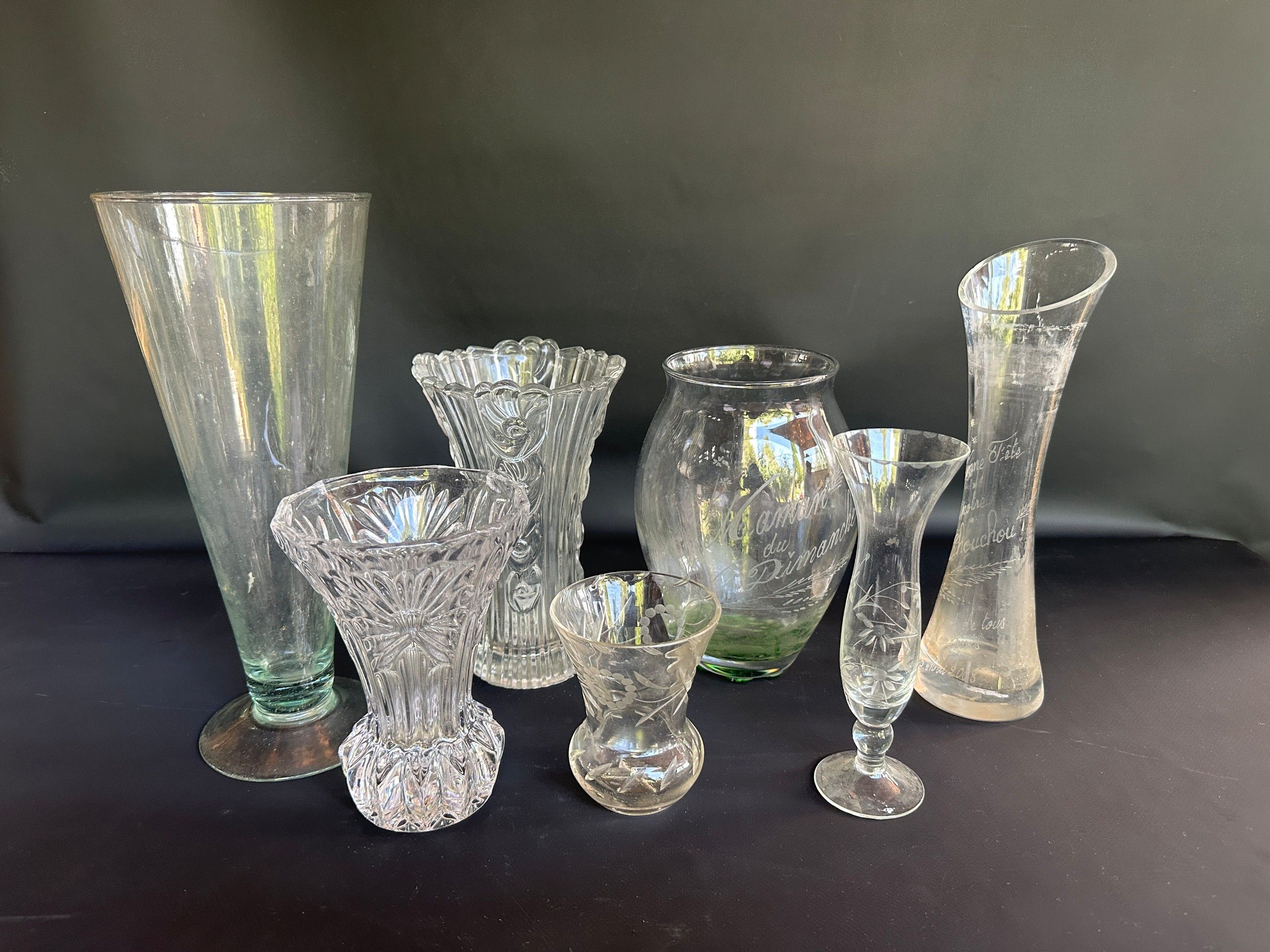 Lot comprising 7 glass and crystal vases including 2 soliflores from 10 to 28.50cm, as is