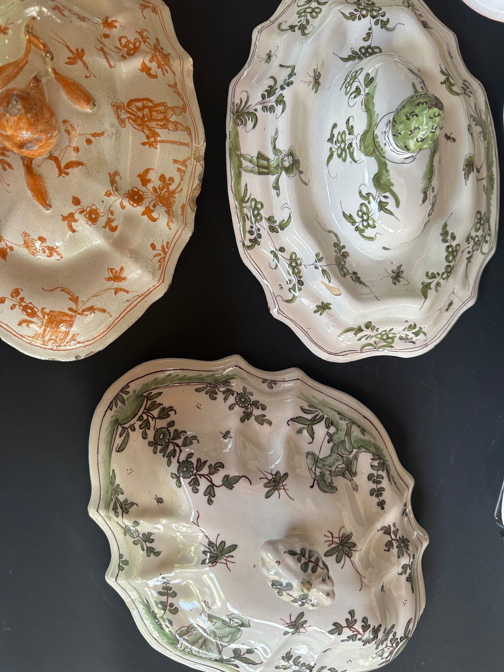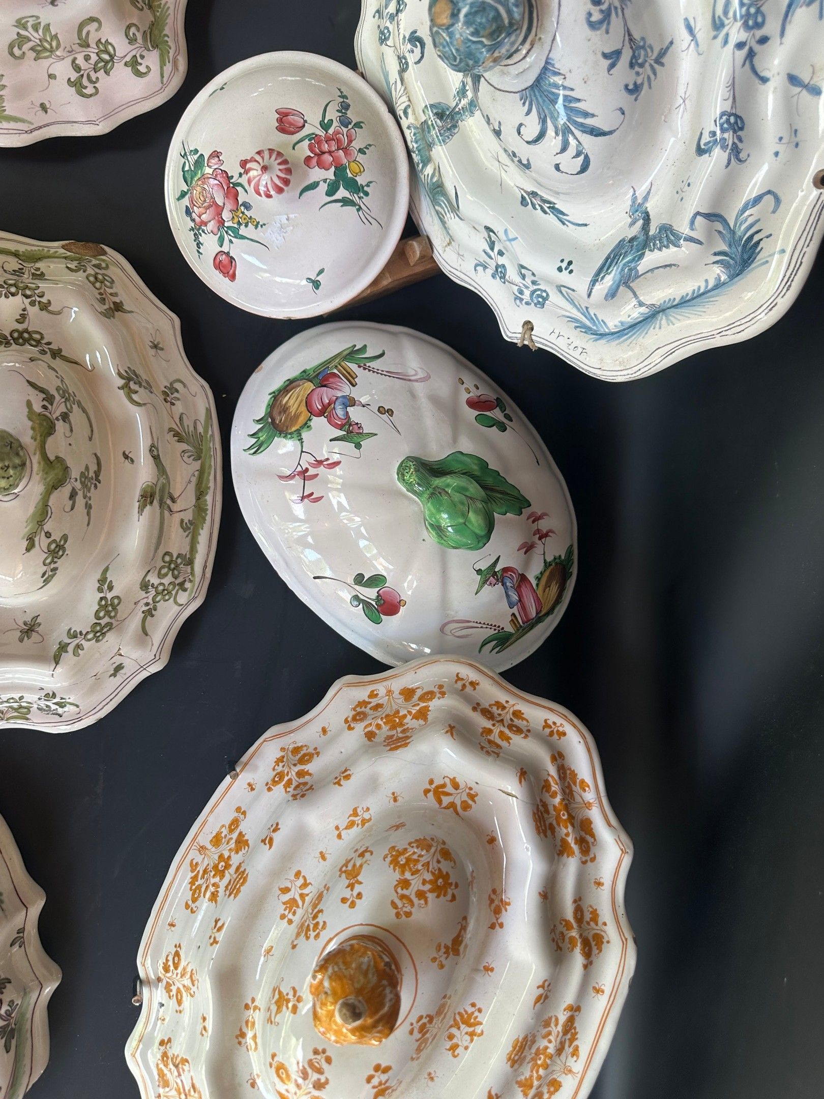 3353-15-14-4-5-25-17-26 , 8 earthenware tureen tops from the 18th and 19th centuries, damaged or missing