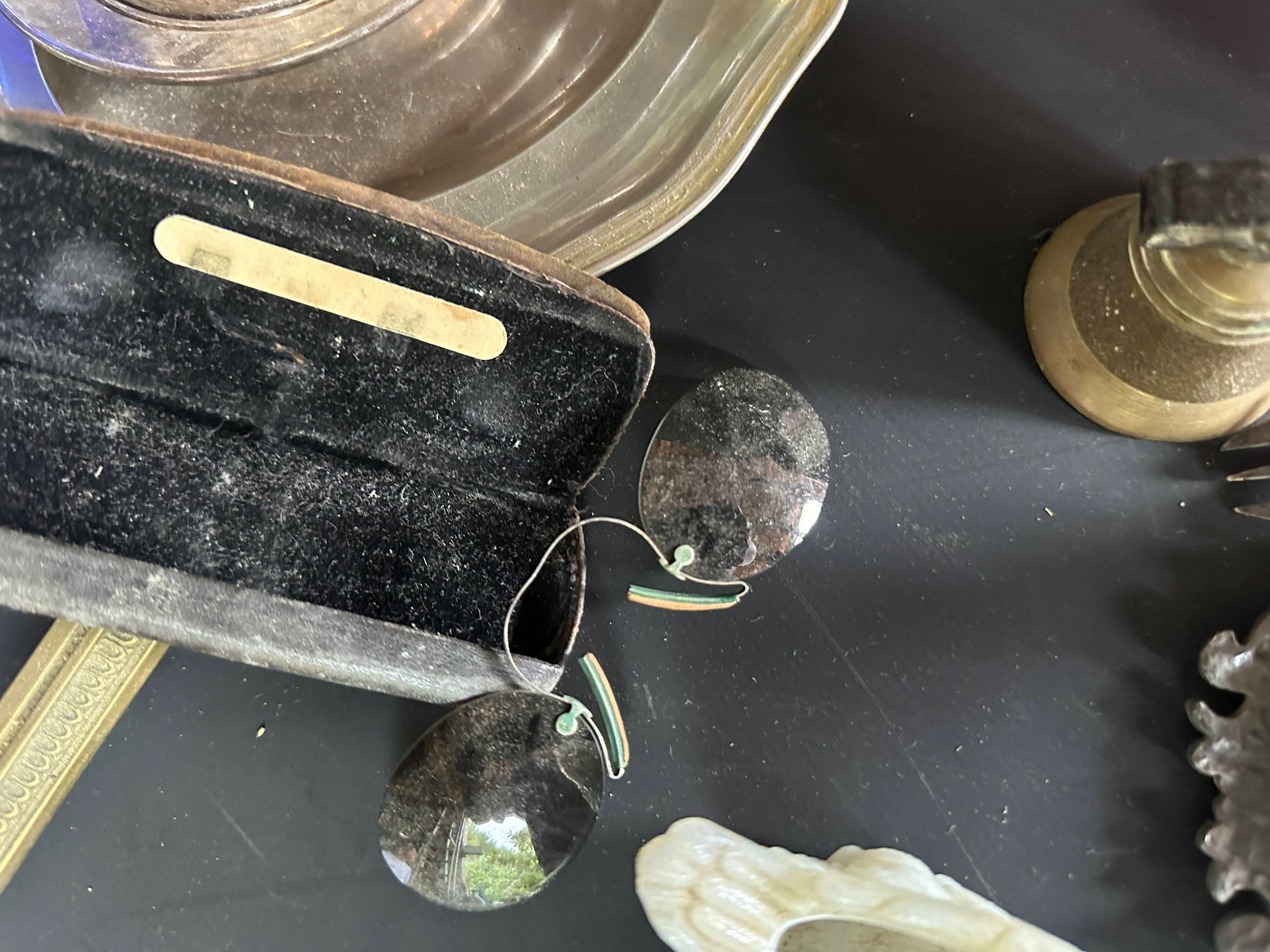 Lot including crucifix, vase, silver plated metal and brass hardware, opaline and Murano glass, glasses